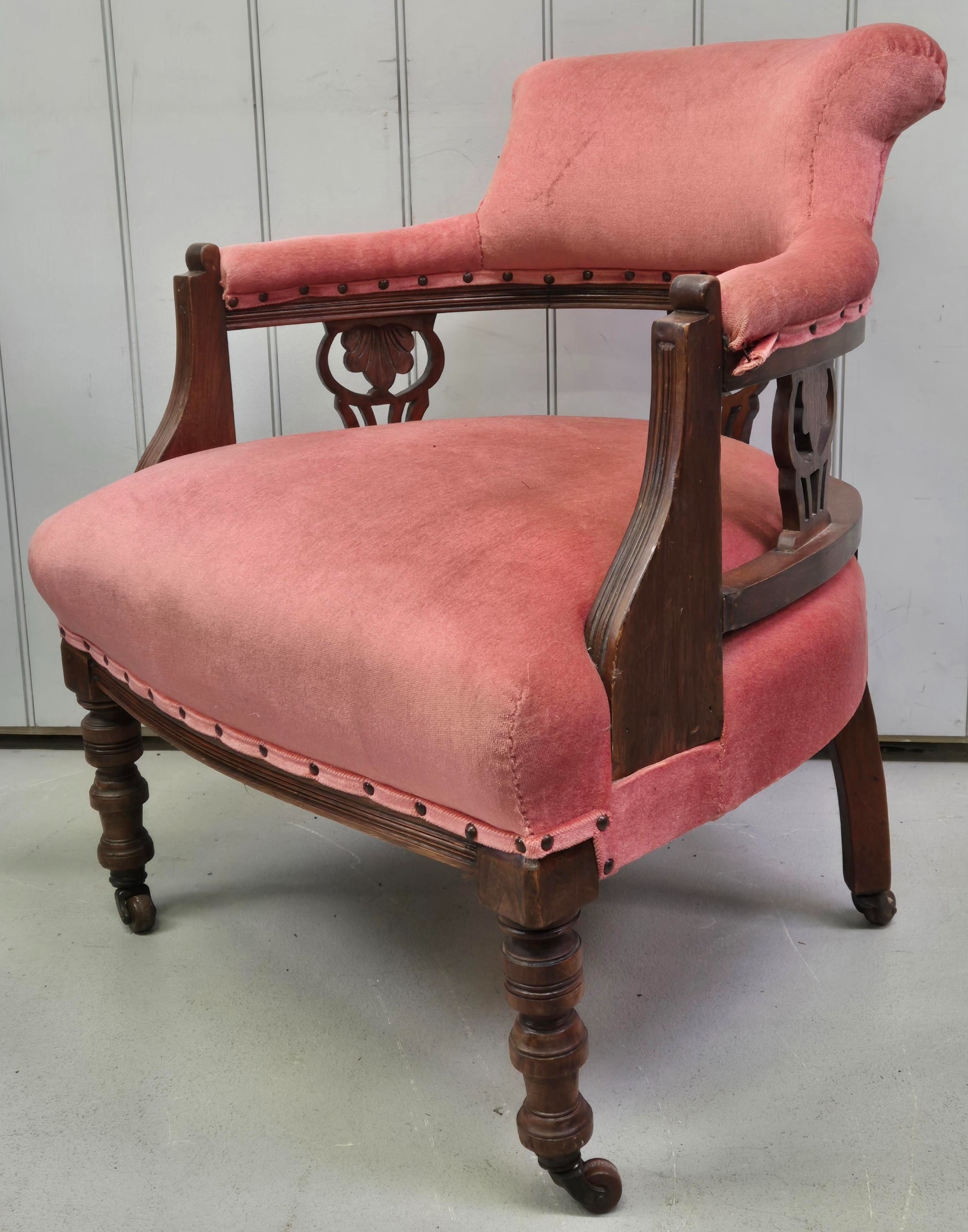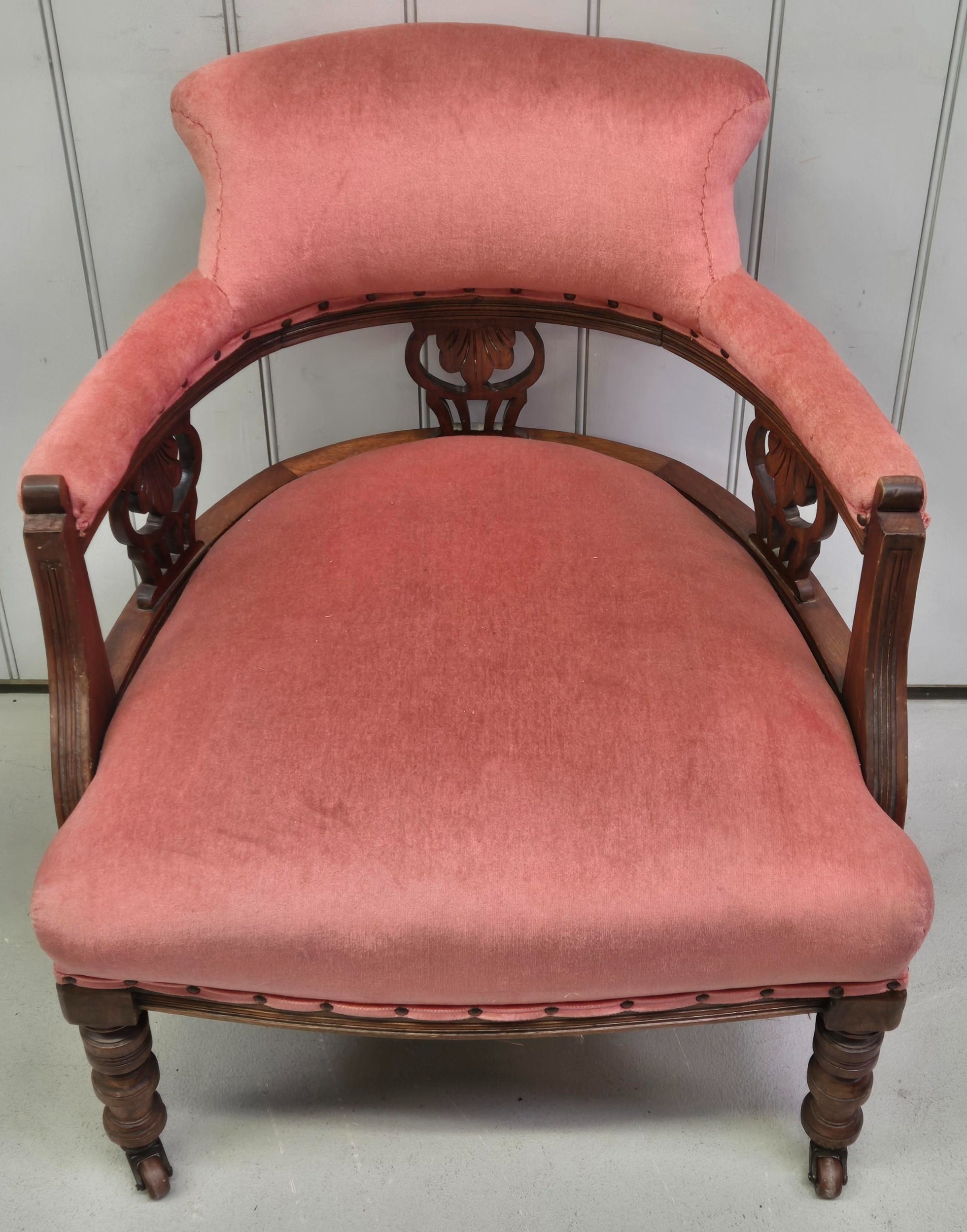 Victorian, upholstered tub armchair. Dimensions(cm) H77(45 to seat), W64, D61.