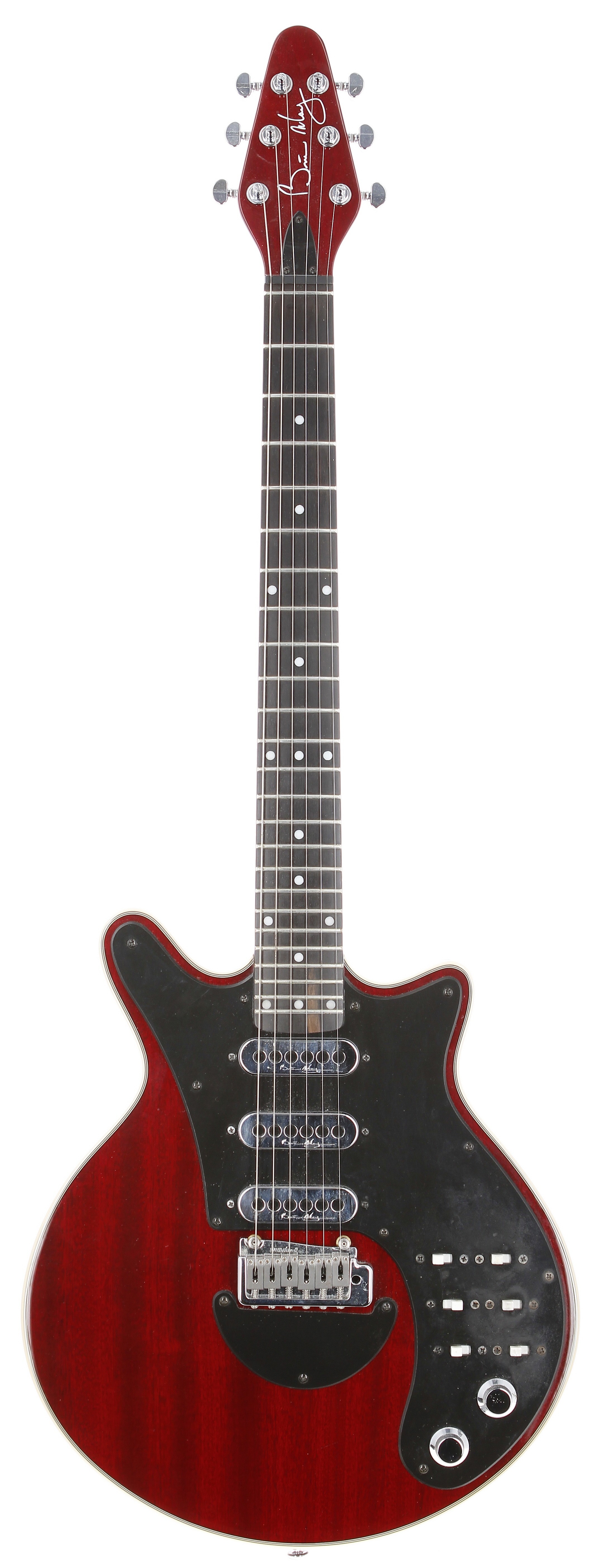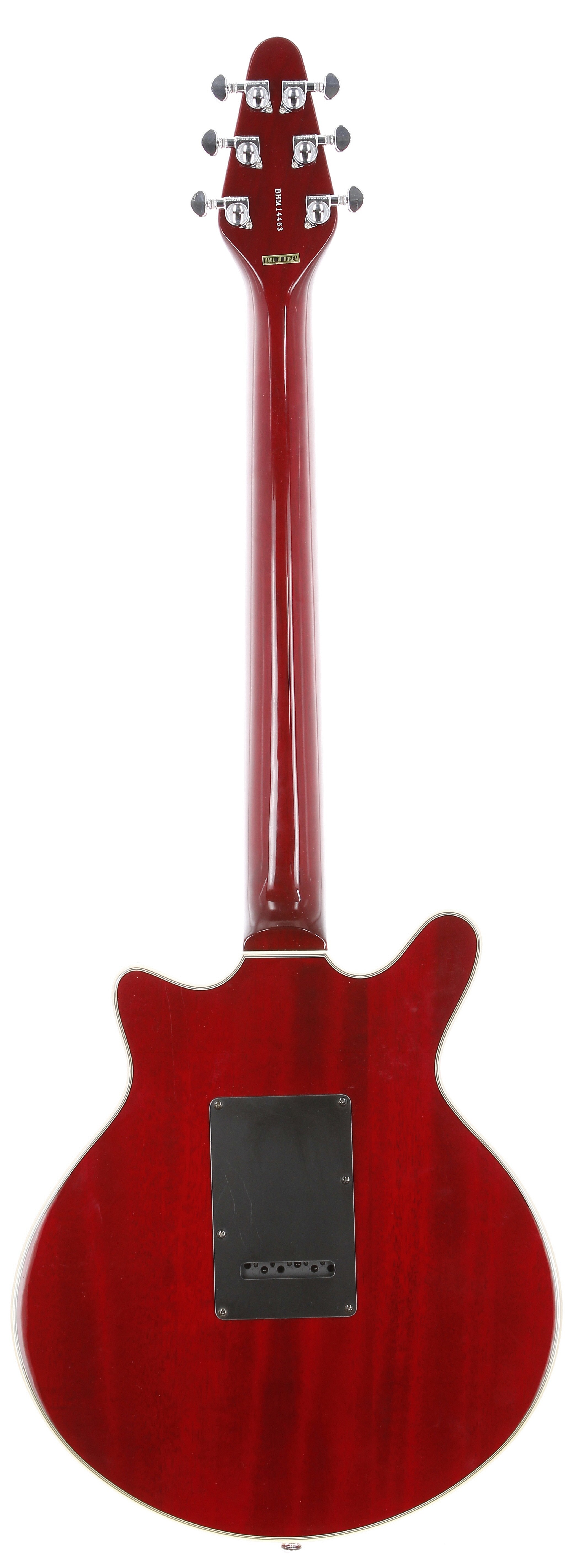 Brian May Guitars Red Special electric guitar, made in Korea; Body: cherry red finish, strap button installed to treble horn; Neck: good; Fretboard: ebony; Frets: good; Electrics: in need of attention; Case: original gig bag; Weight: 3.45kg; Overall condition: good