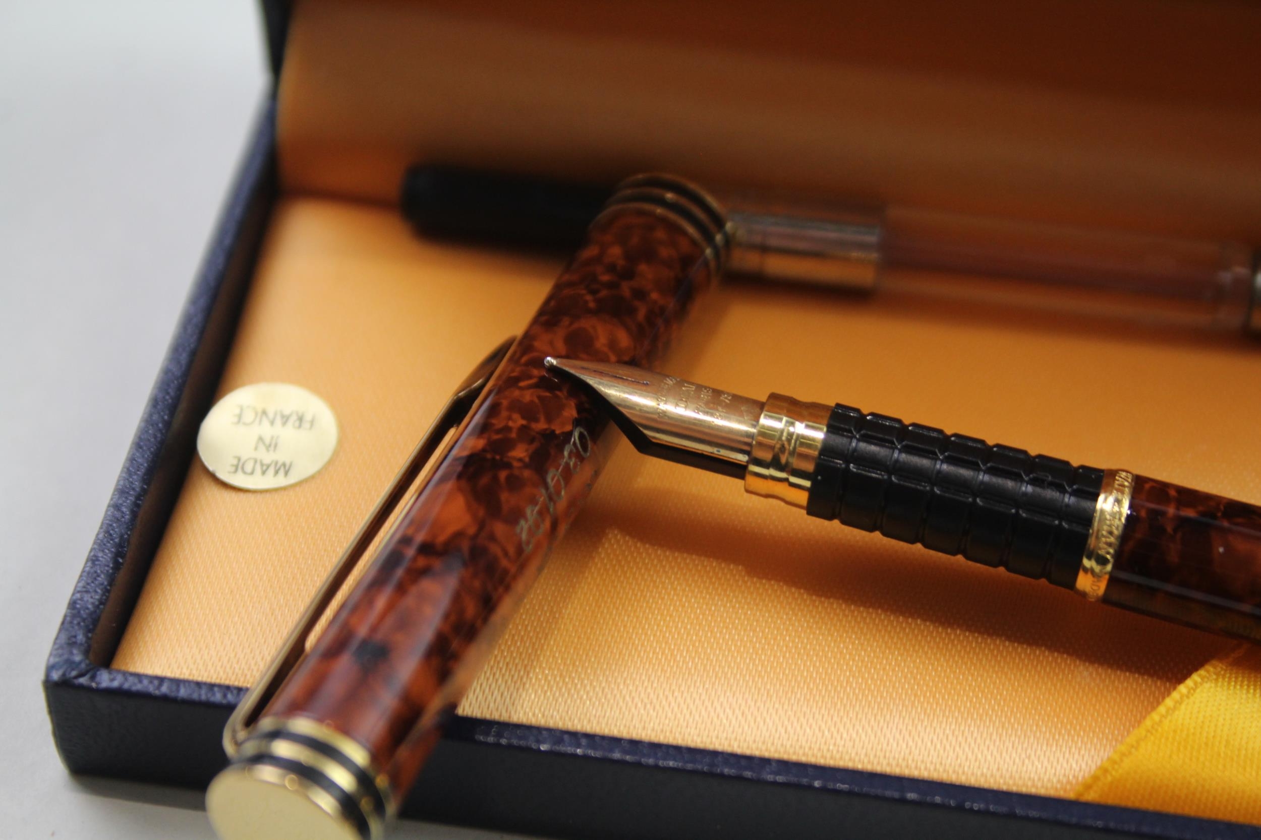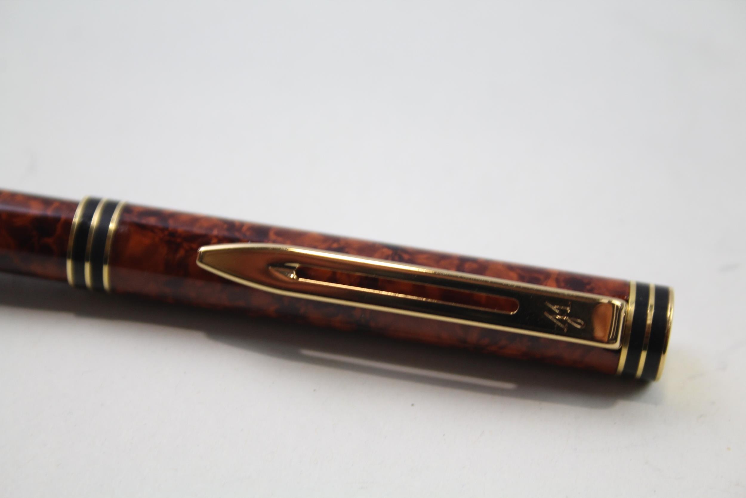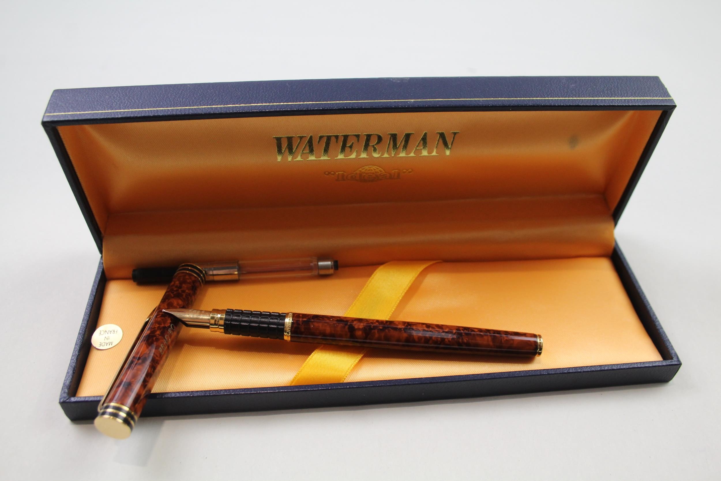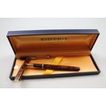 Vintage WATERMAN Ideal Brown Lacquer Fountain Pen w/ 18ct Gold Nib WRITING Boxed