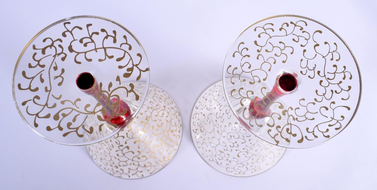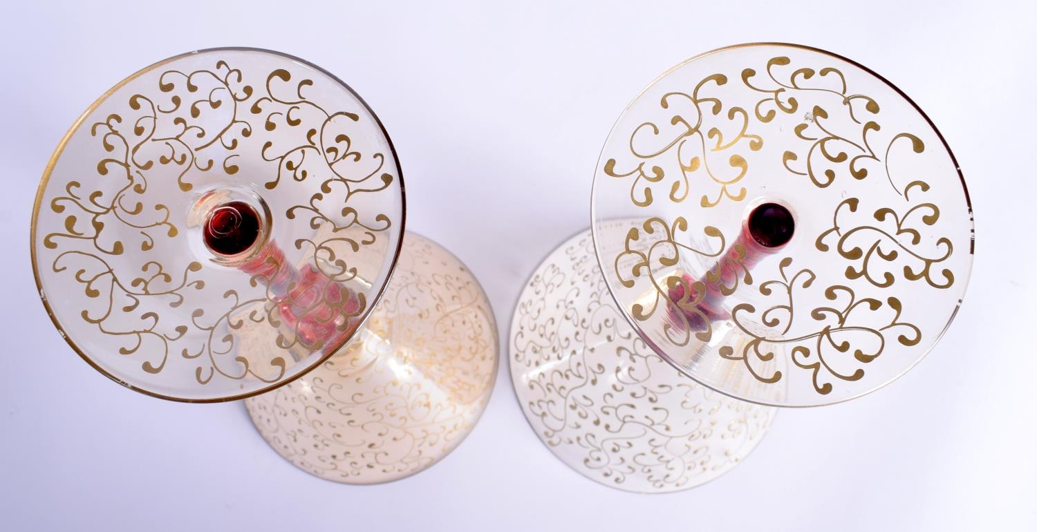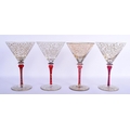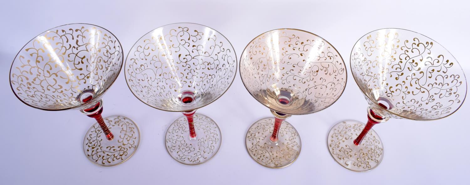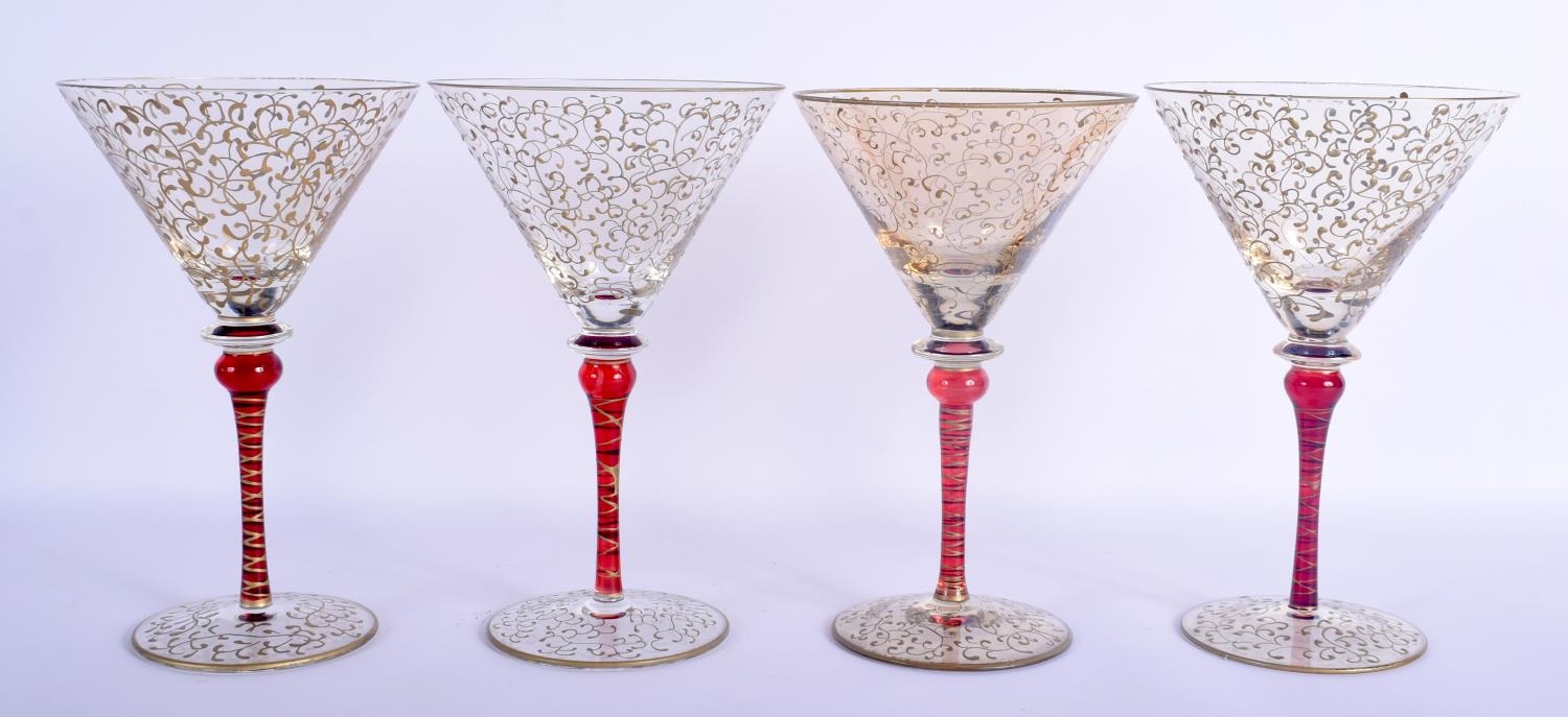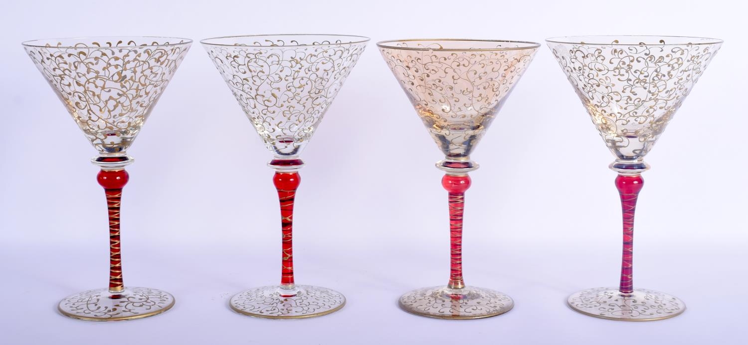 A STYLISH SET OF FOUR VINTAGE MURANO VENETIAN GLASSES overlaid with trailing vines and foliage. 19 cm high. (4)