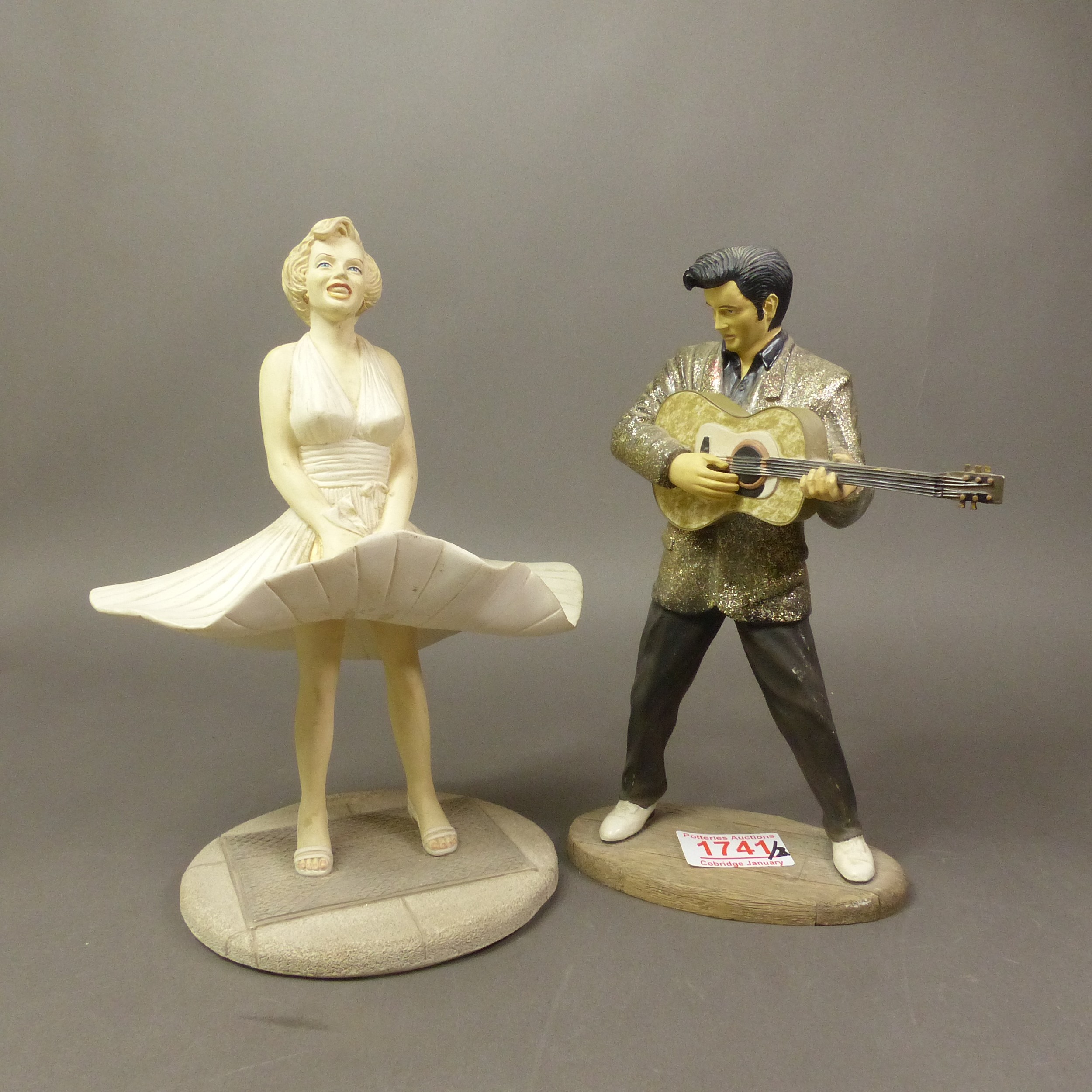 The Leonardo Collection resin figurines of Elvis and Marilyn. (H: 24cm) (2)