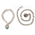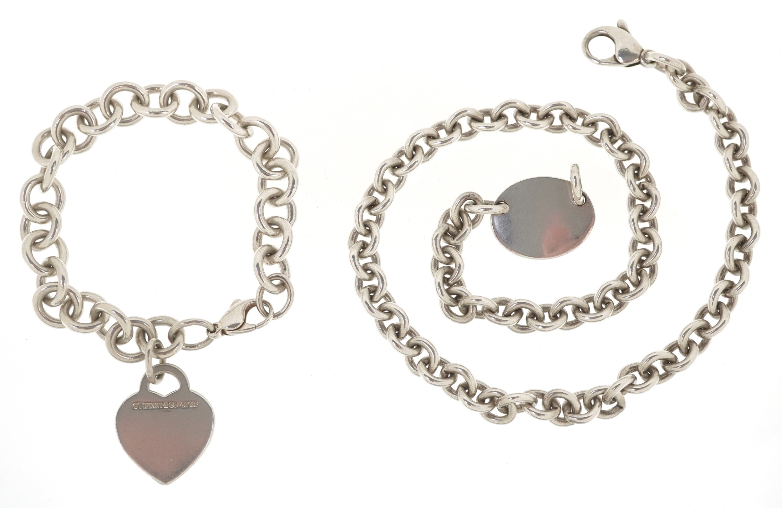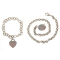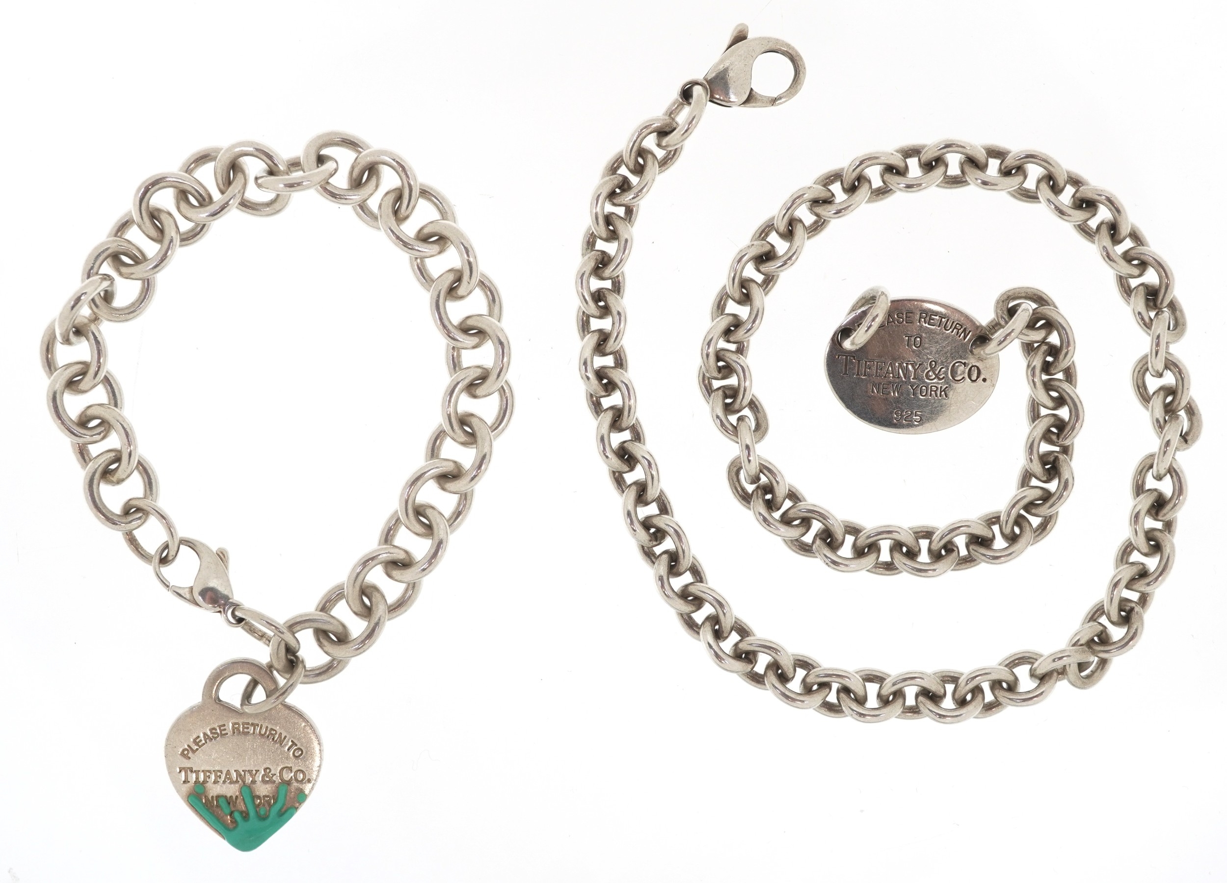 Tiffany & Co., a Return to Tiffany silver bracelet with blue enamel splash finish and Return to Tiffany necklace, the necklace 40cm in length, total 86.0g.