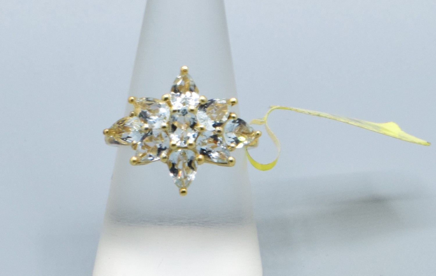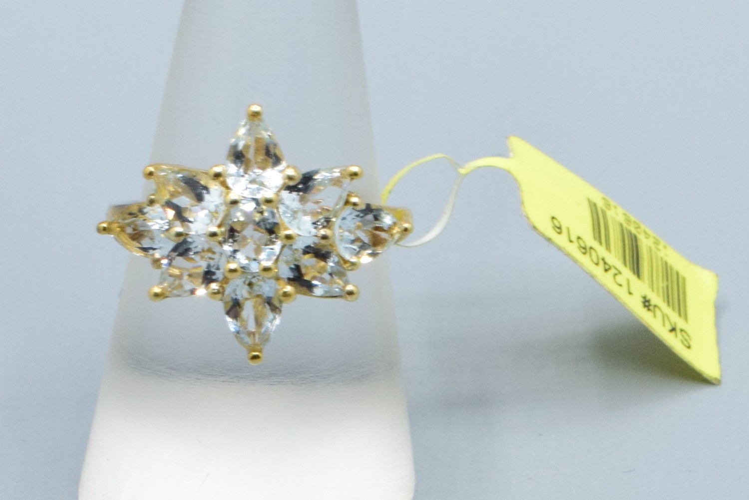 New with Tag 925 silver/gold ladies starburst gem set statement ring the head is 22x17mm size P