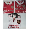 3 signed retro Manchester United shirts and a Manchester United print signed by Ryan Giggs; signed shirts include 89-99 home shirt signed by Andy Cole; a 98-99 away shirt signed by Paul Scholes and the famous Camp Nou Champions League Final shirt signed by Ryan all with certificates of authenticity (Non game day)