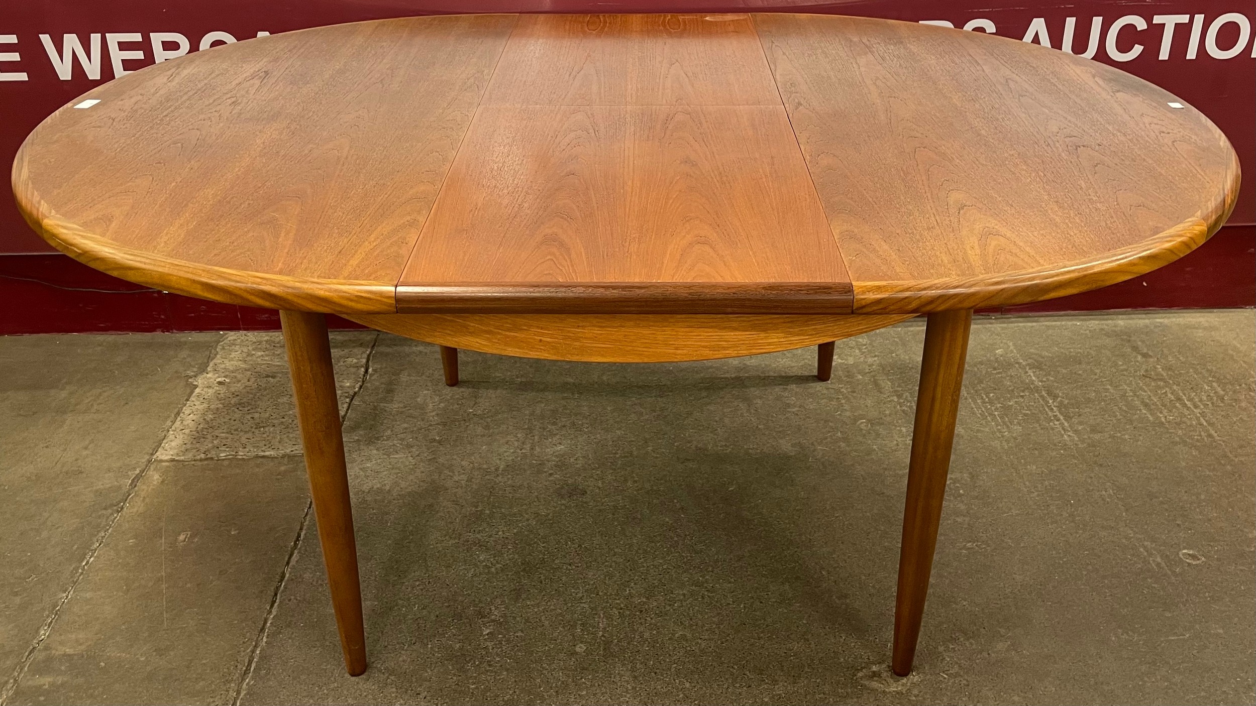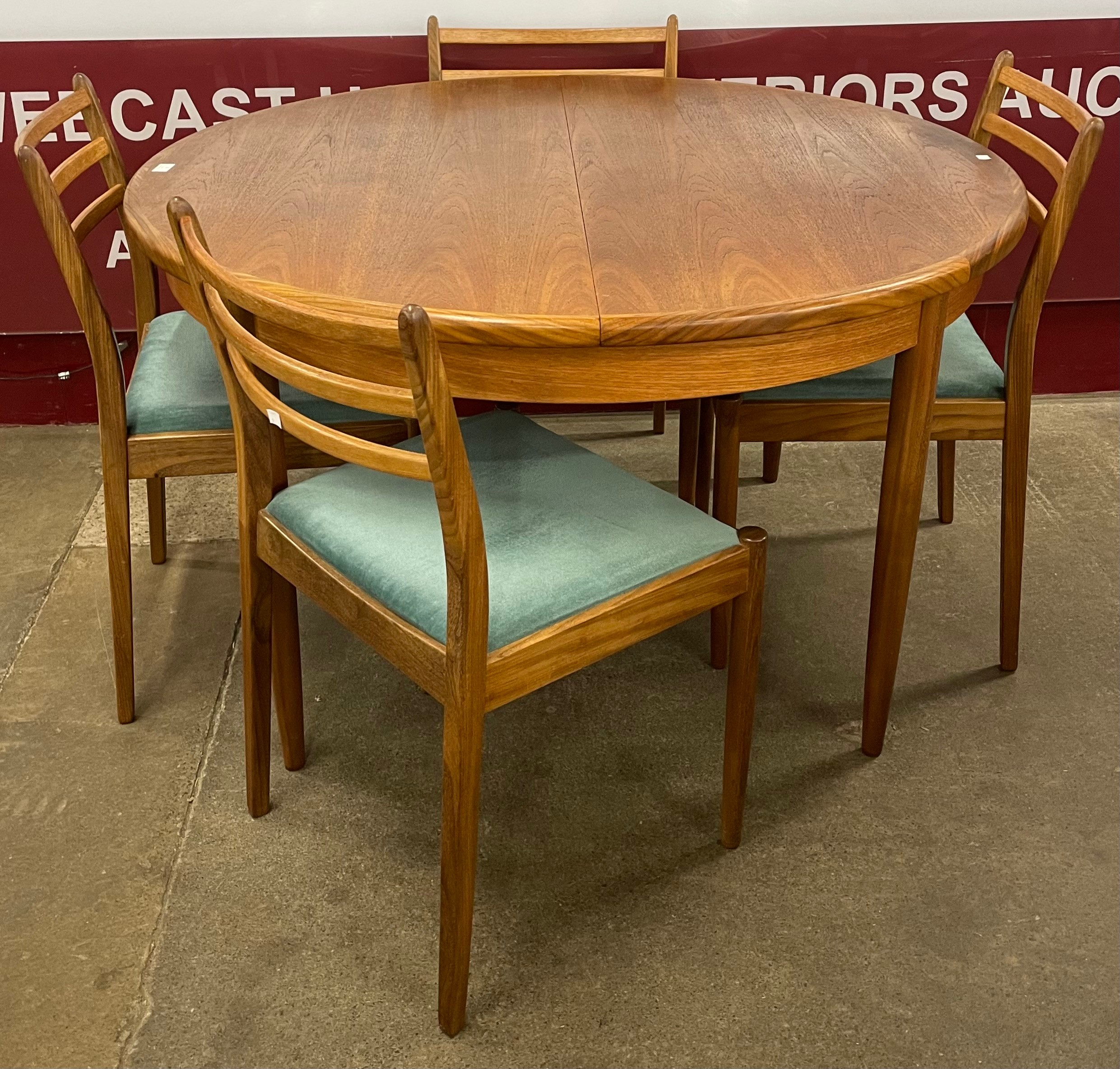 A G-Plan Fresco teak circular extending dining table and four chairs