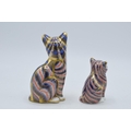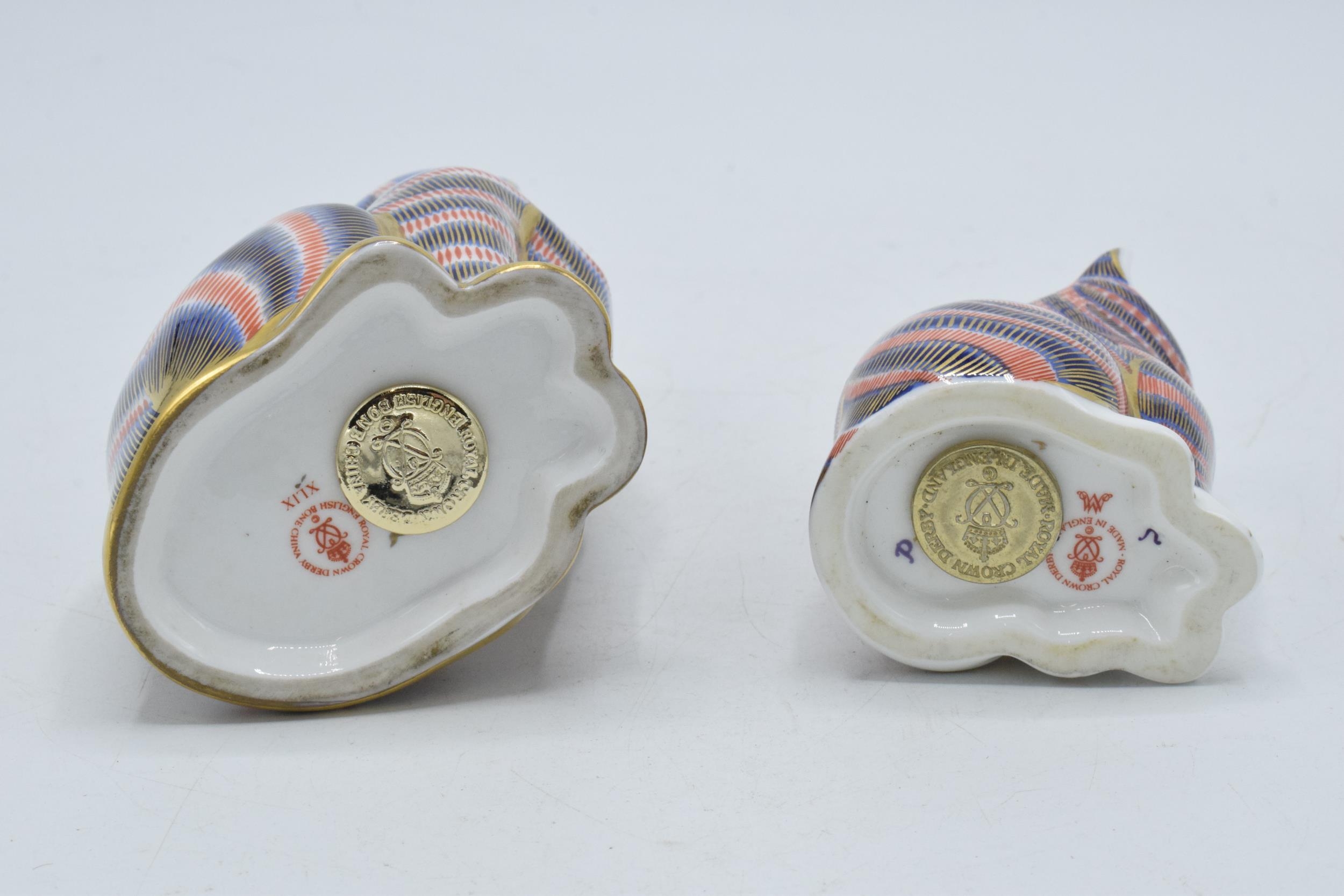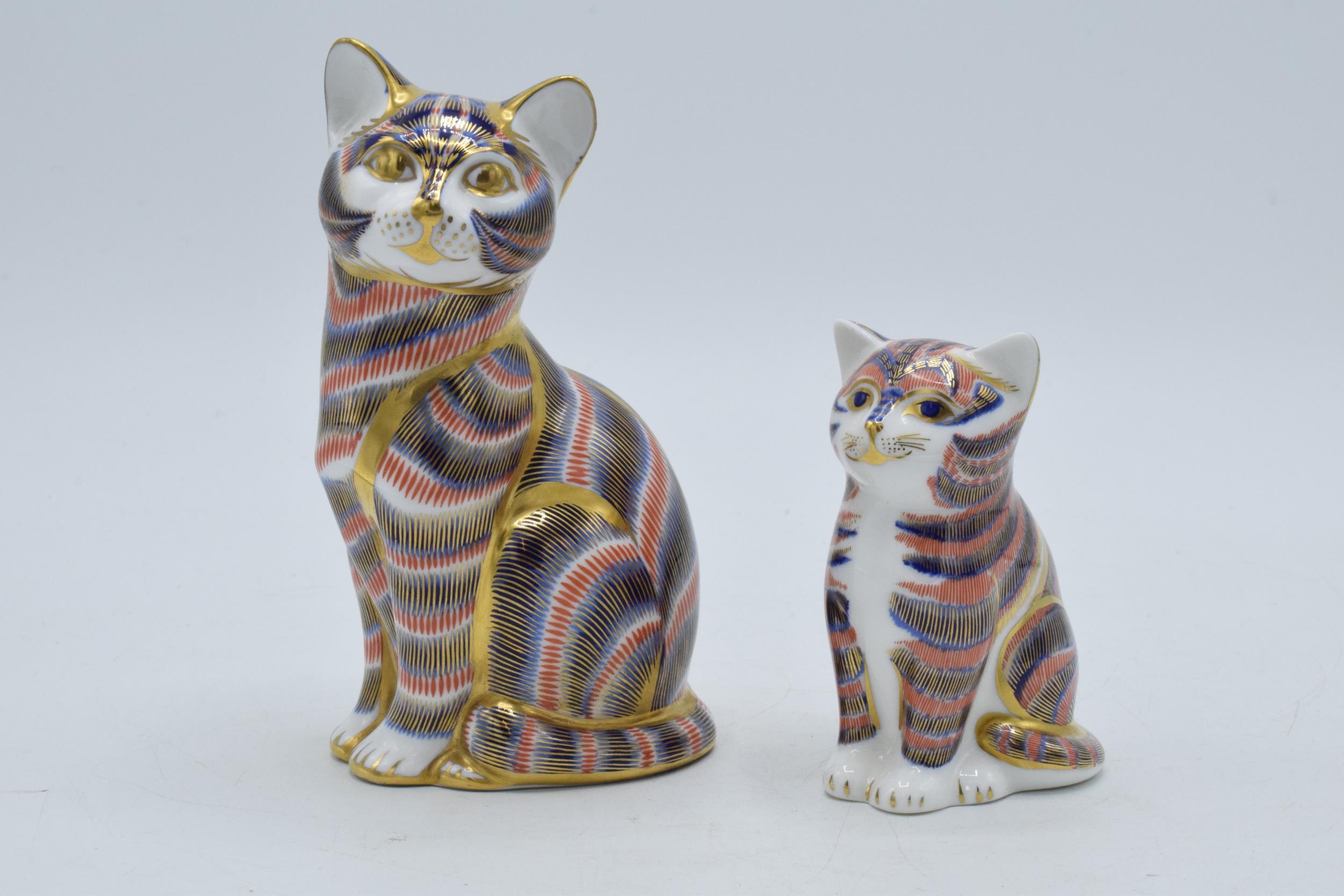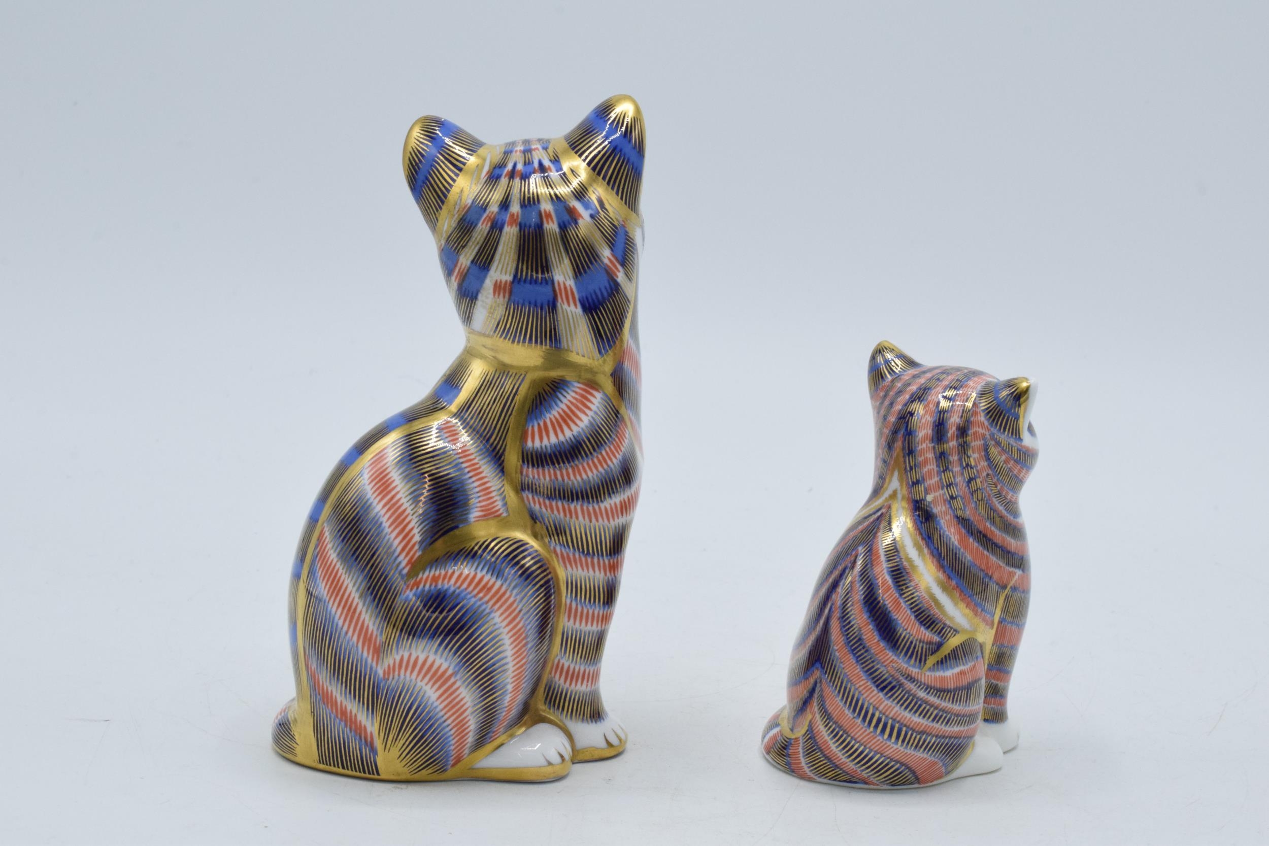 Royal Crown Derby paperweight in the form of a Cat and Kitten, in the Imari palate, with gold stoppers (2).