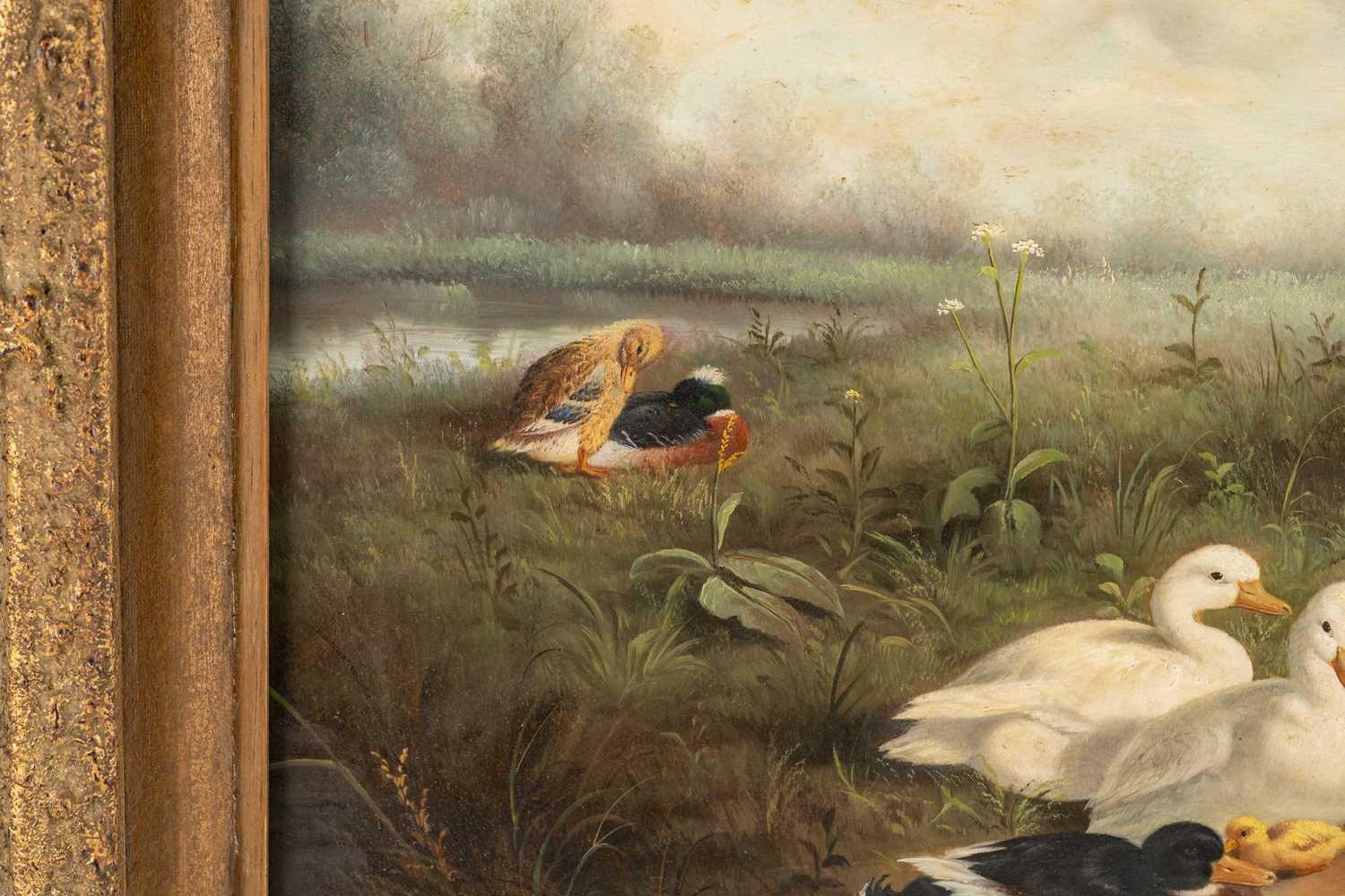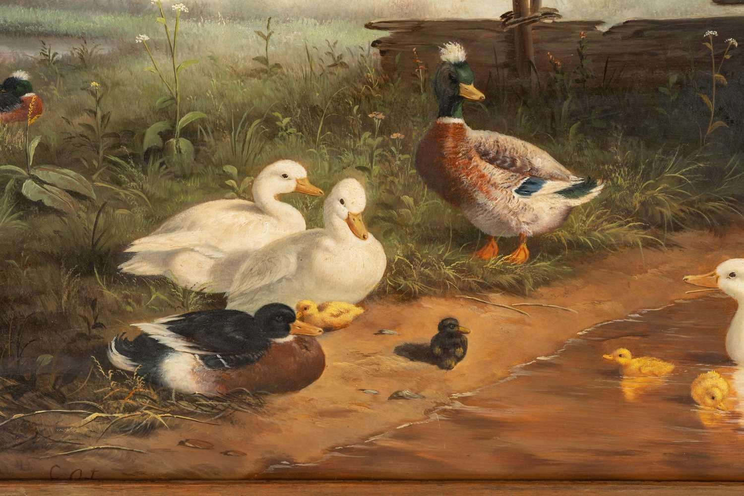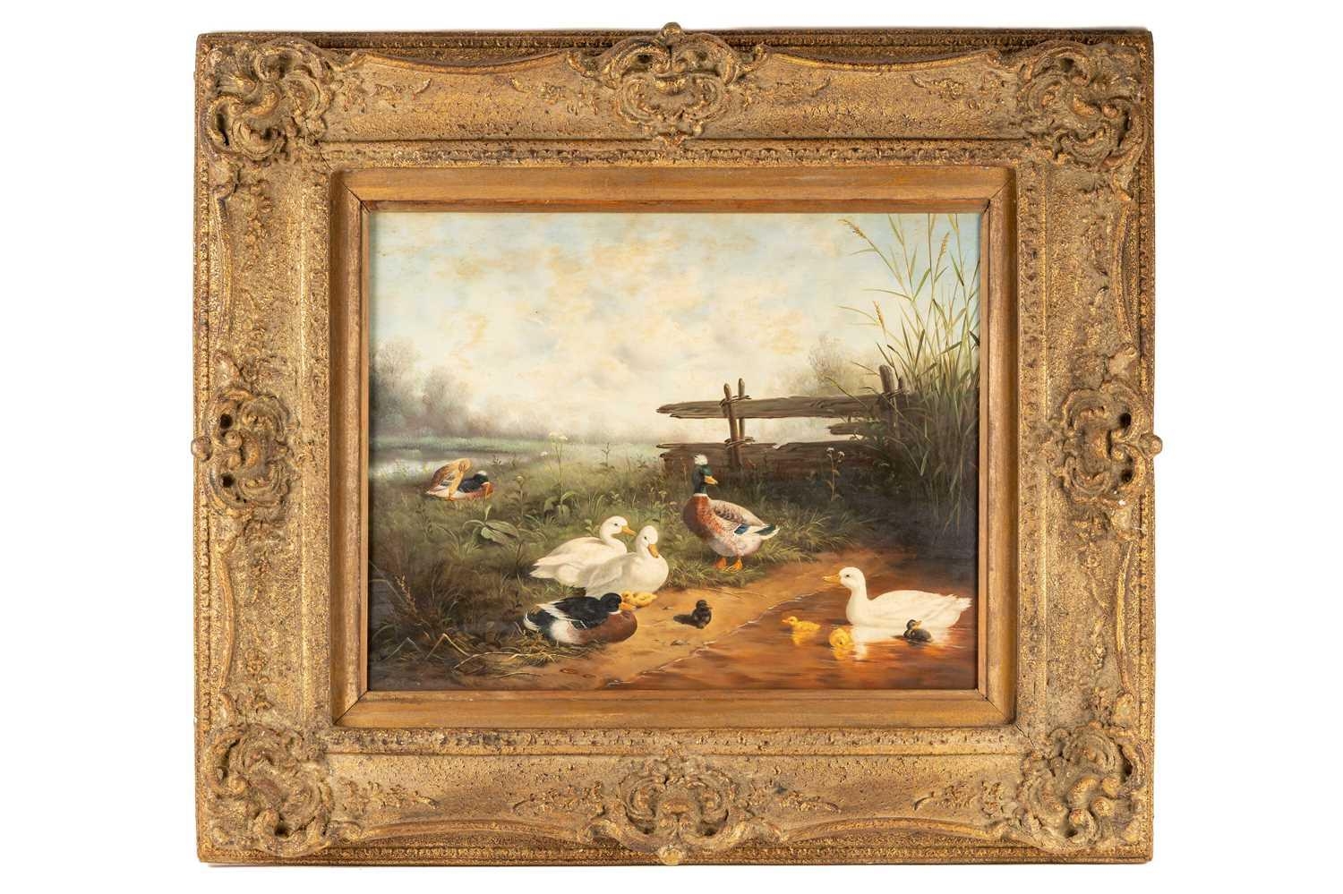 After Constant Artz (1870 - 1951), Ducks at a pond, bears signature C. Artz, oil on board, 38 x 48 cm, later framed