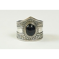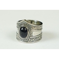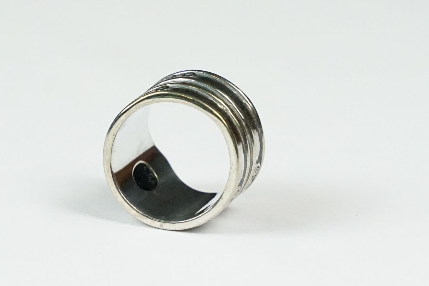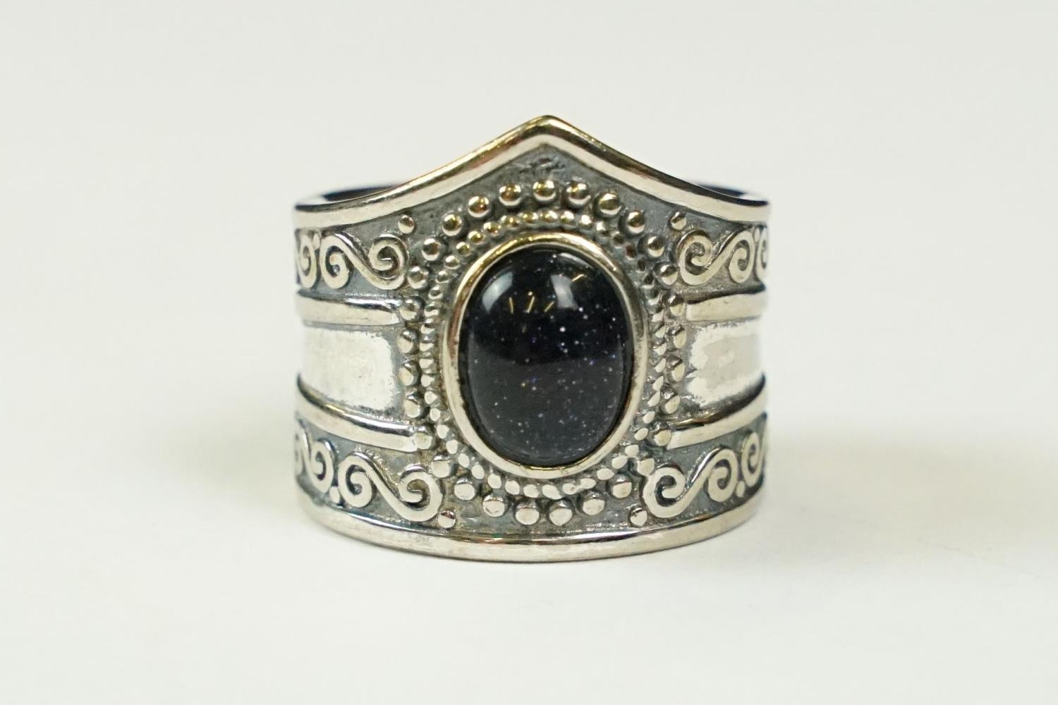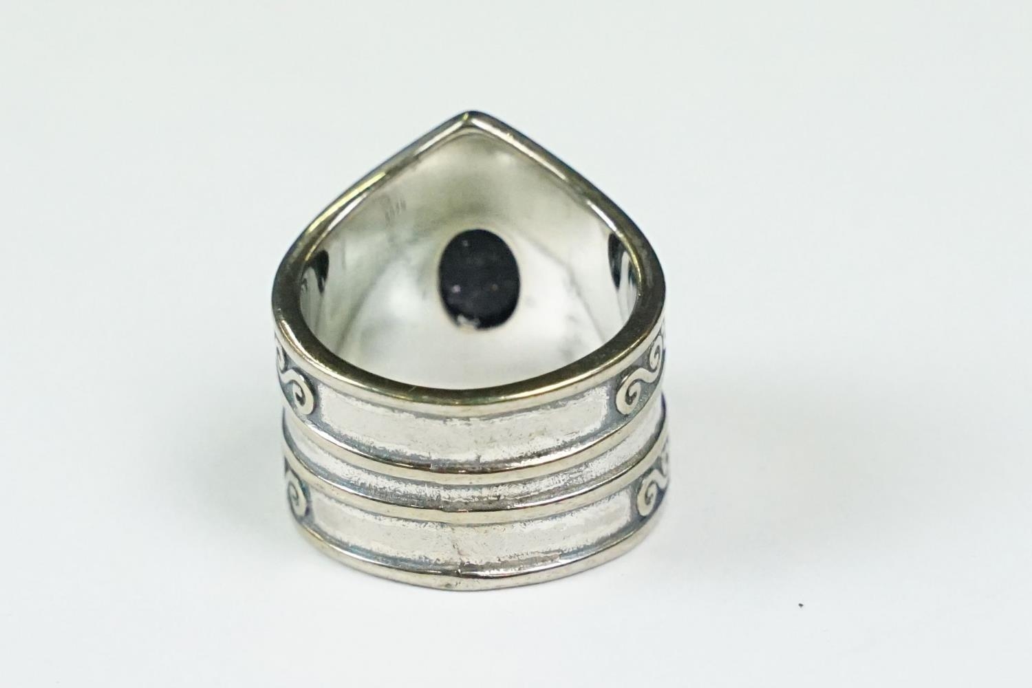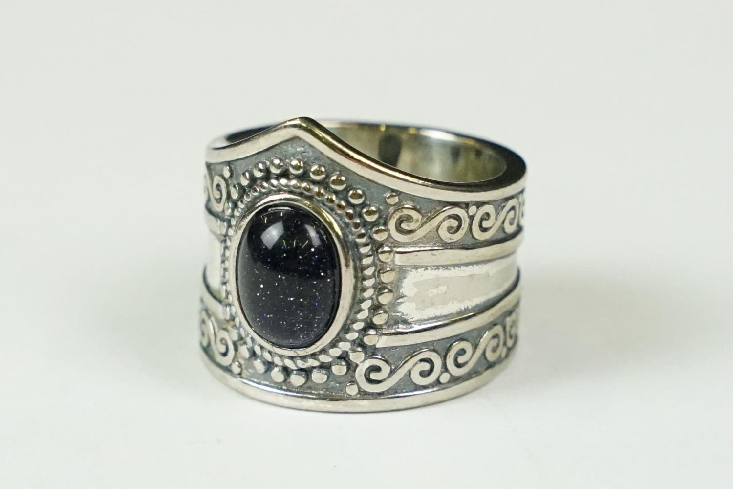 A contemporary 925 sterling silver ring with central cabochon, marked 925 to the verso.