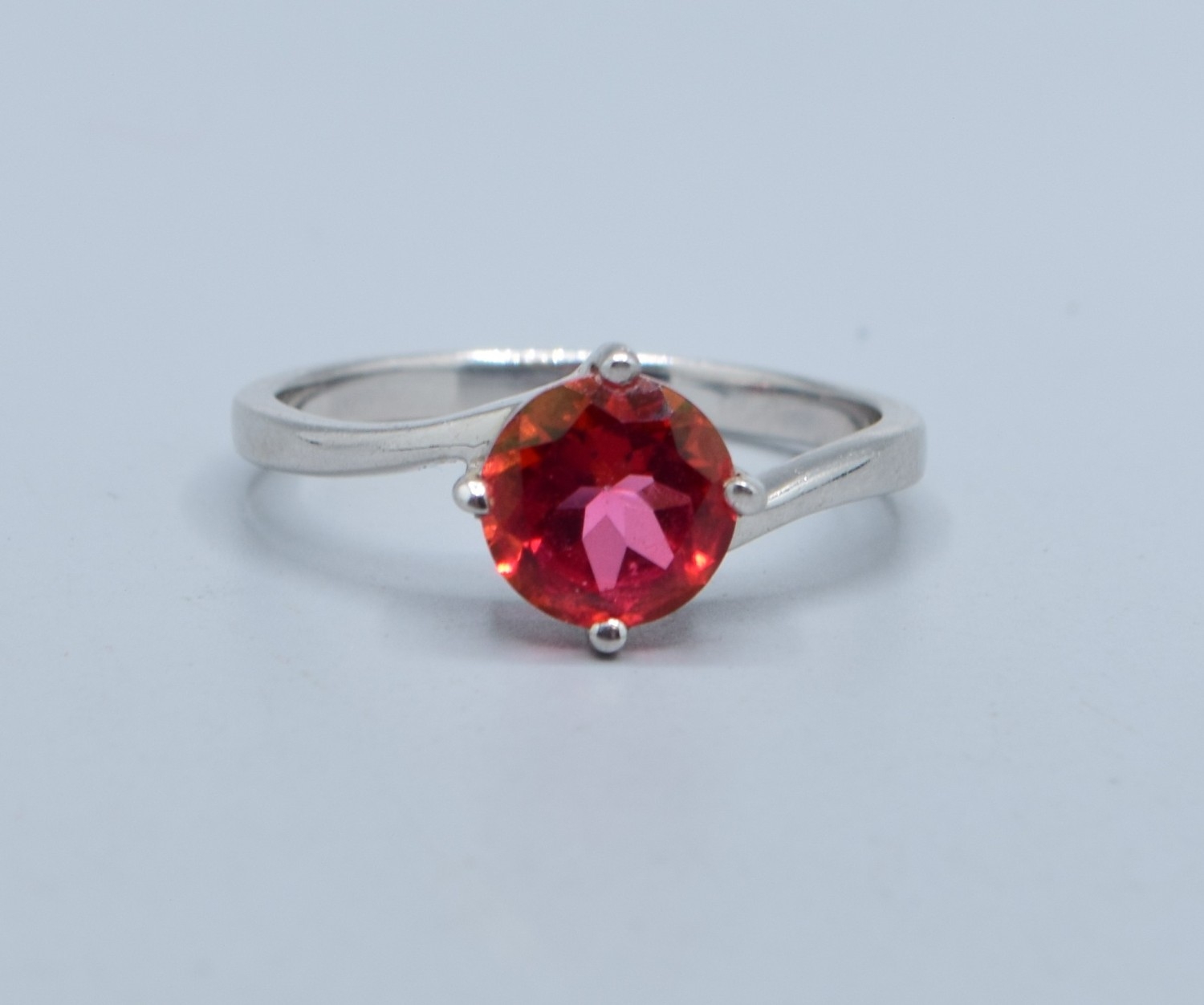 925 silver enhanced Ruby solitaire dress ring in a twist design size T