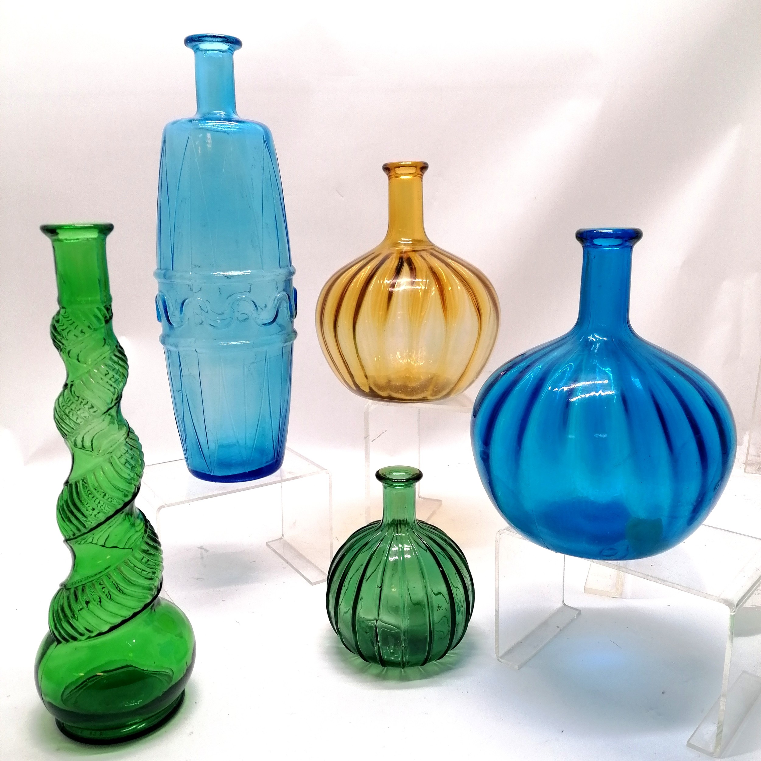 5 x vintage Empoli onion decanters / apothecary jars etc - tallest 35cm