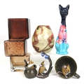 Mixed lot - Mtarfa glass egg vase Old Tupton Ware cat figurine mouse ornaments and amber glass vase