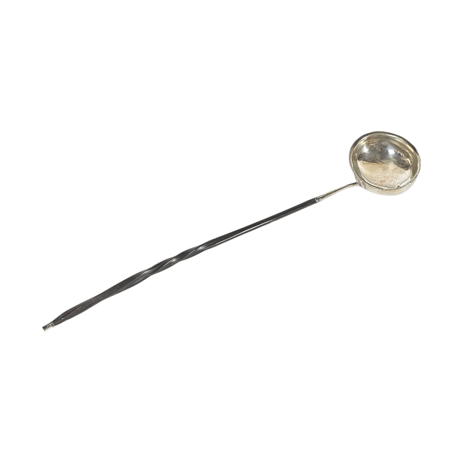 A 19TH CENTURY WHITE METAL AND WHALE BONE PUNCH LADLE