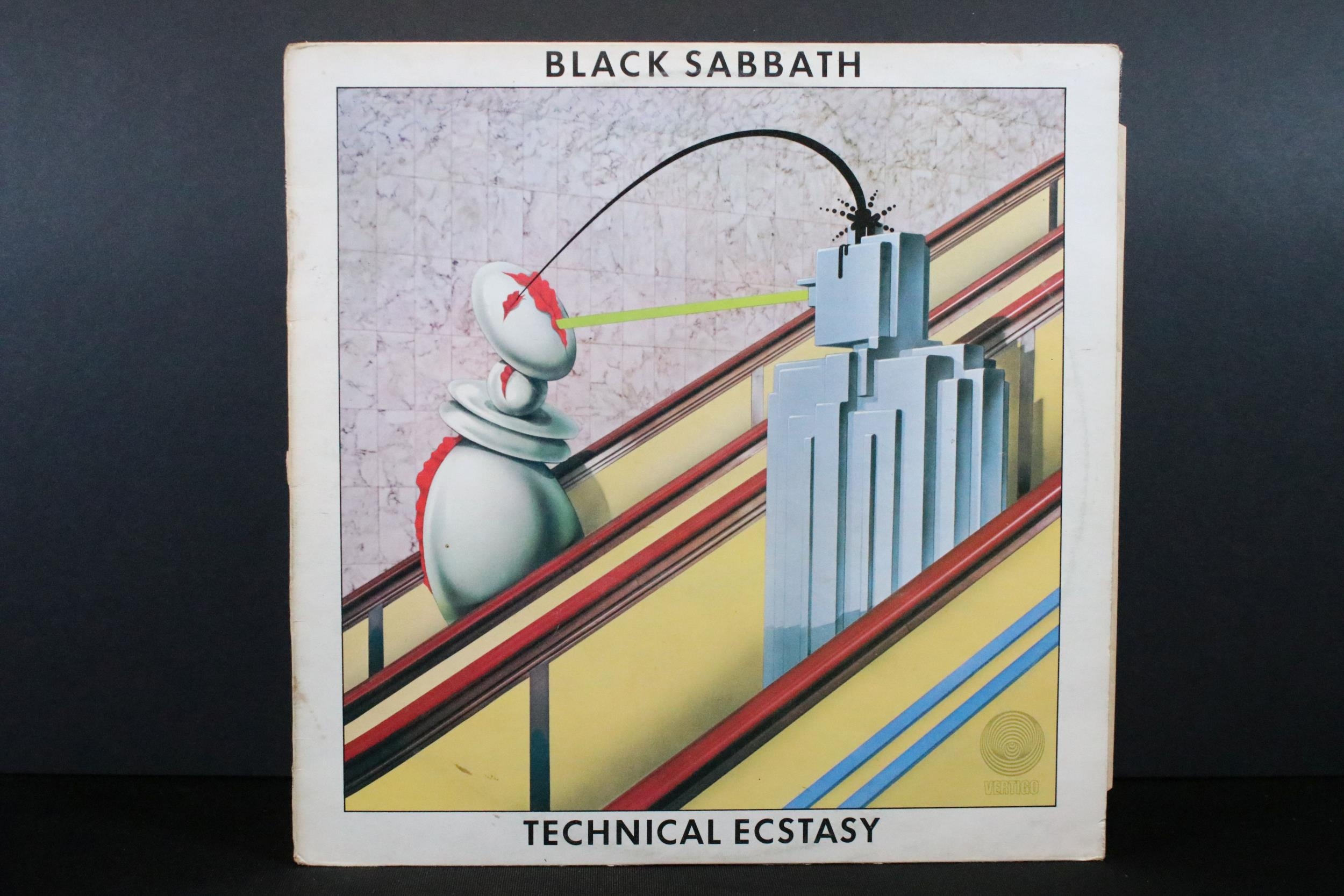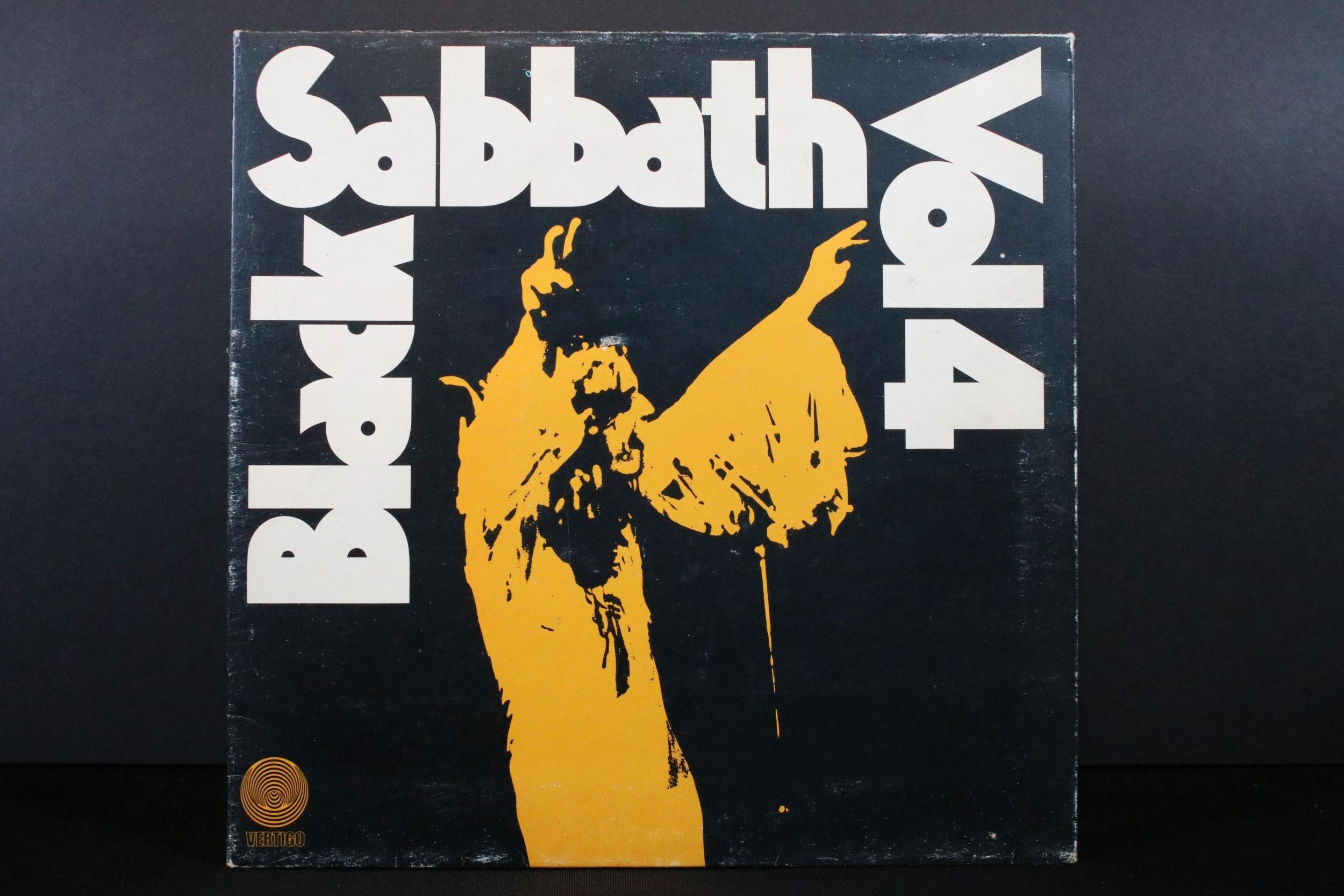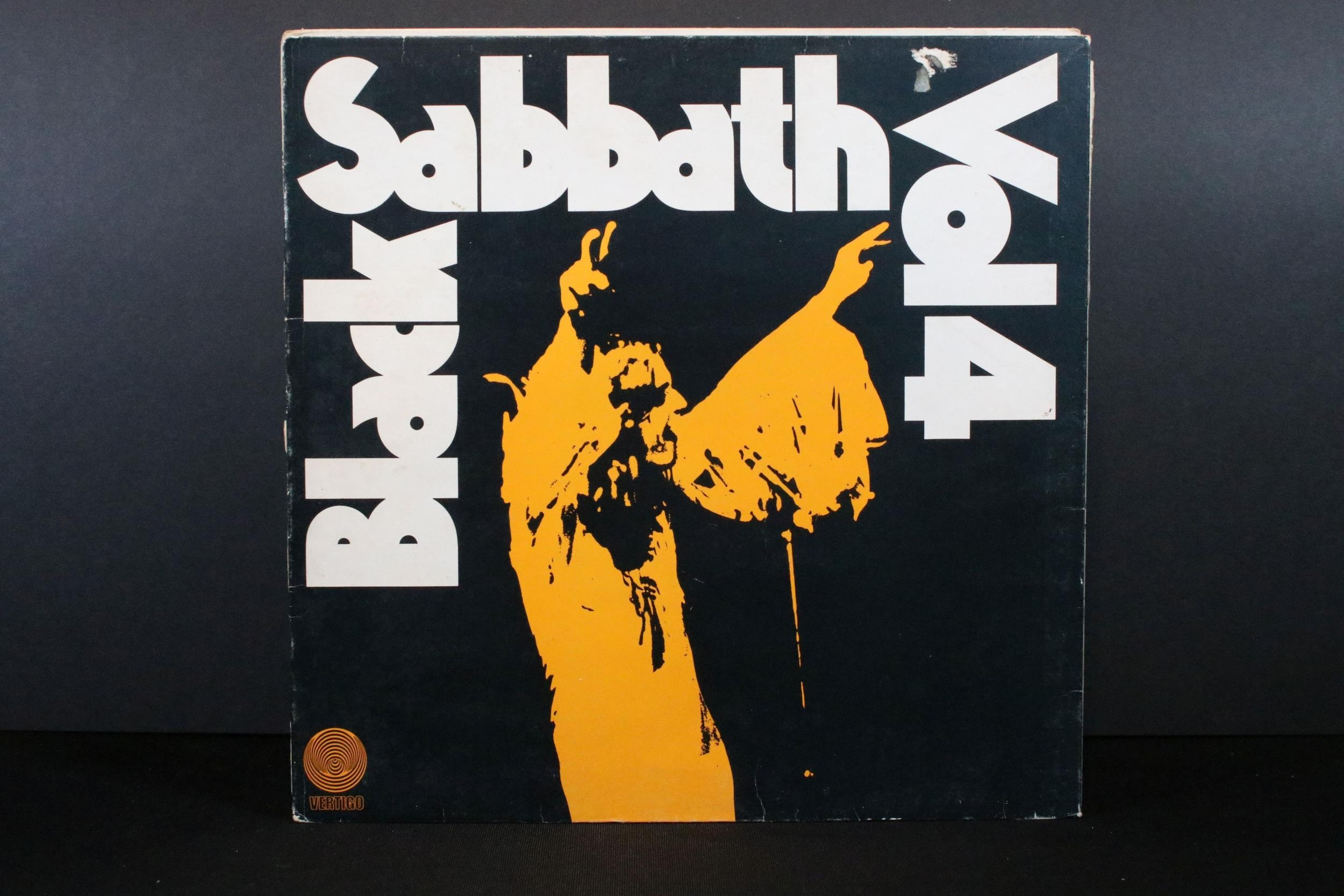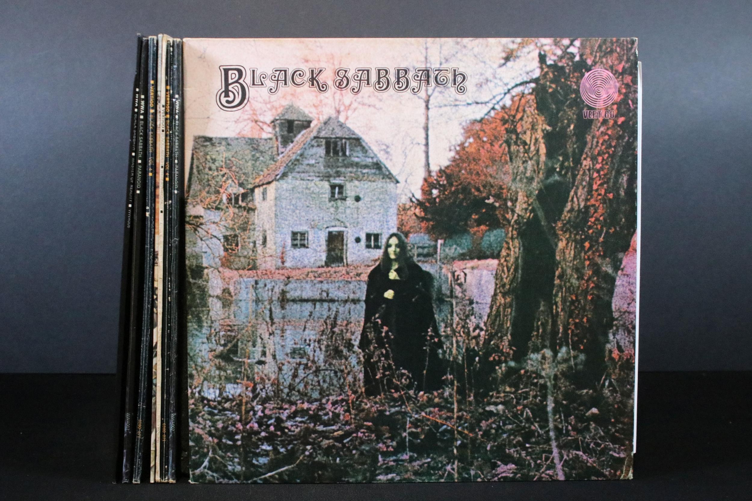 Vinyl - 8 Black Sabbath LPs to include Black Sabbath (Vertigo sleeve, NEMS vinyl), Vol 4 x 2 (Vertigo swirl), Paranoid x 2, Master Of Reality, Technical Ecstasy, Greatest Hits. Vg+ overall