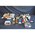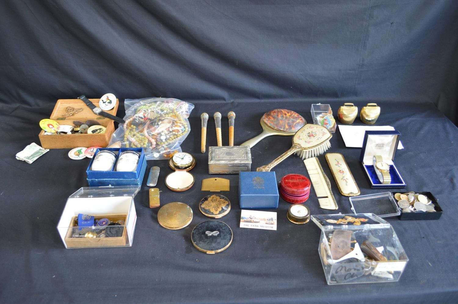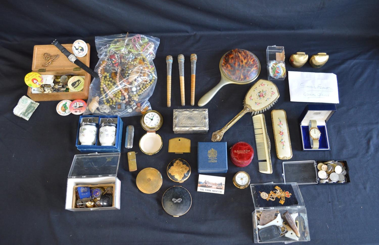Collection of sundry items to include: silver RAOB jewel, quantity of costume jewellery, quantity of world coins, pin badges and two wrist watches etc