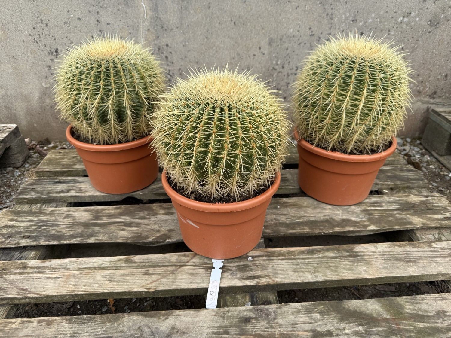 Three Golden Barrel Cacti of large proportion