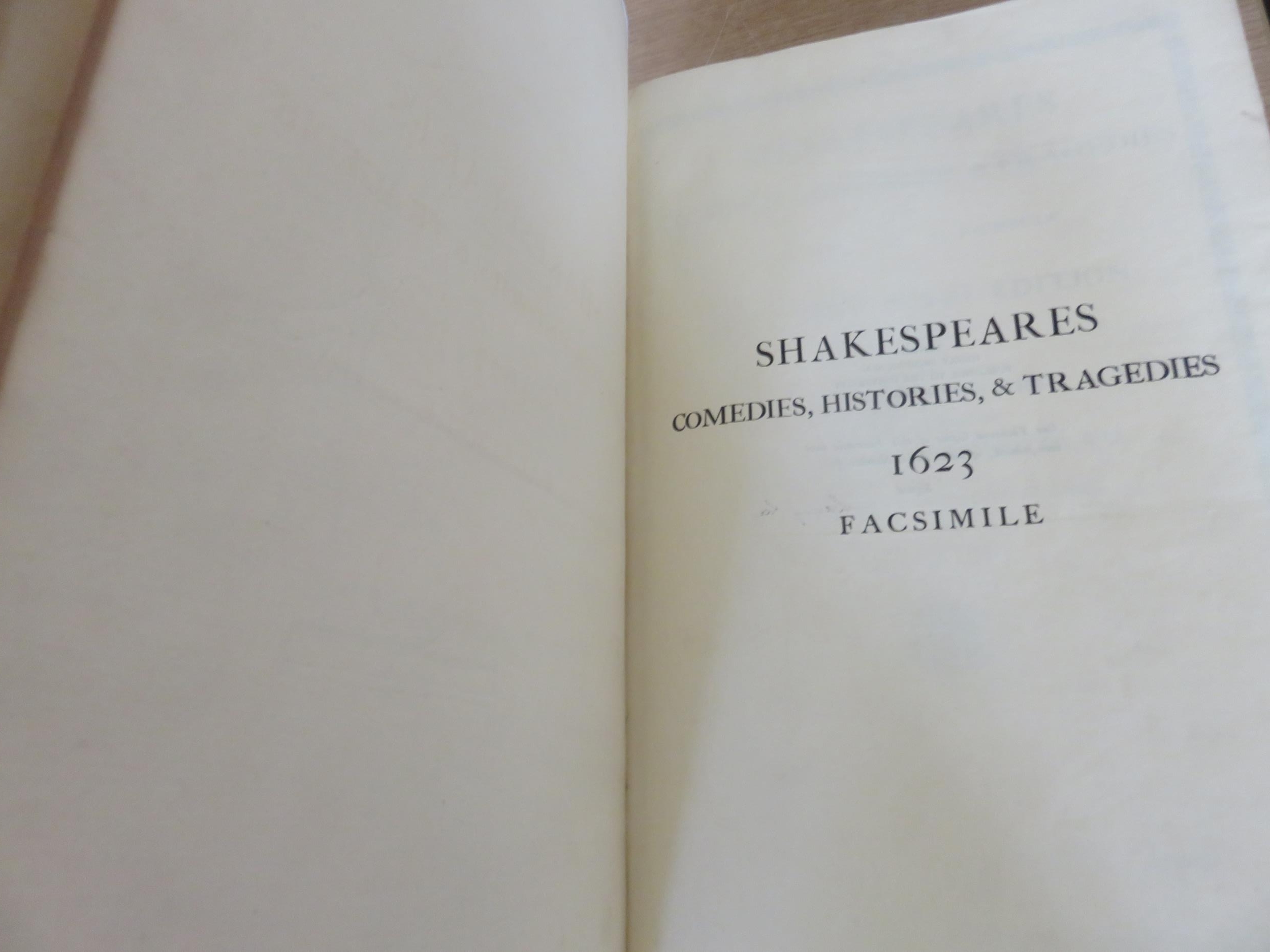 One Vol. Shakespeare 1623, Facsimilie, No. 968/1000 copies by Sidney Lee, Ex Library Edition.