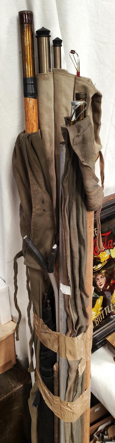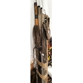 A selection of fishing tackle: 3 rods; Diamond Super 1200 spinning reel; wicker hamper; accessories