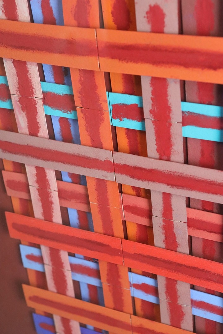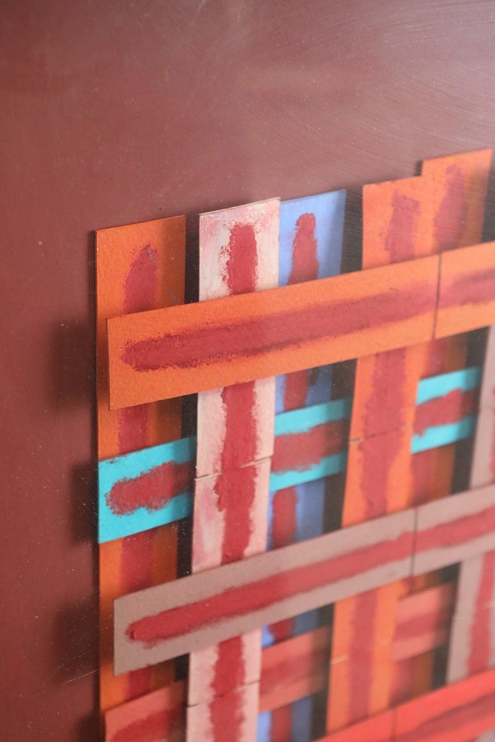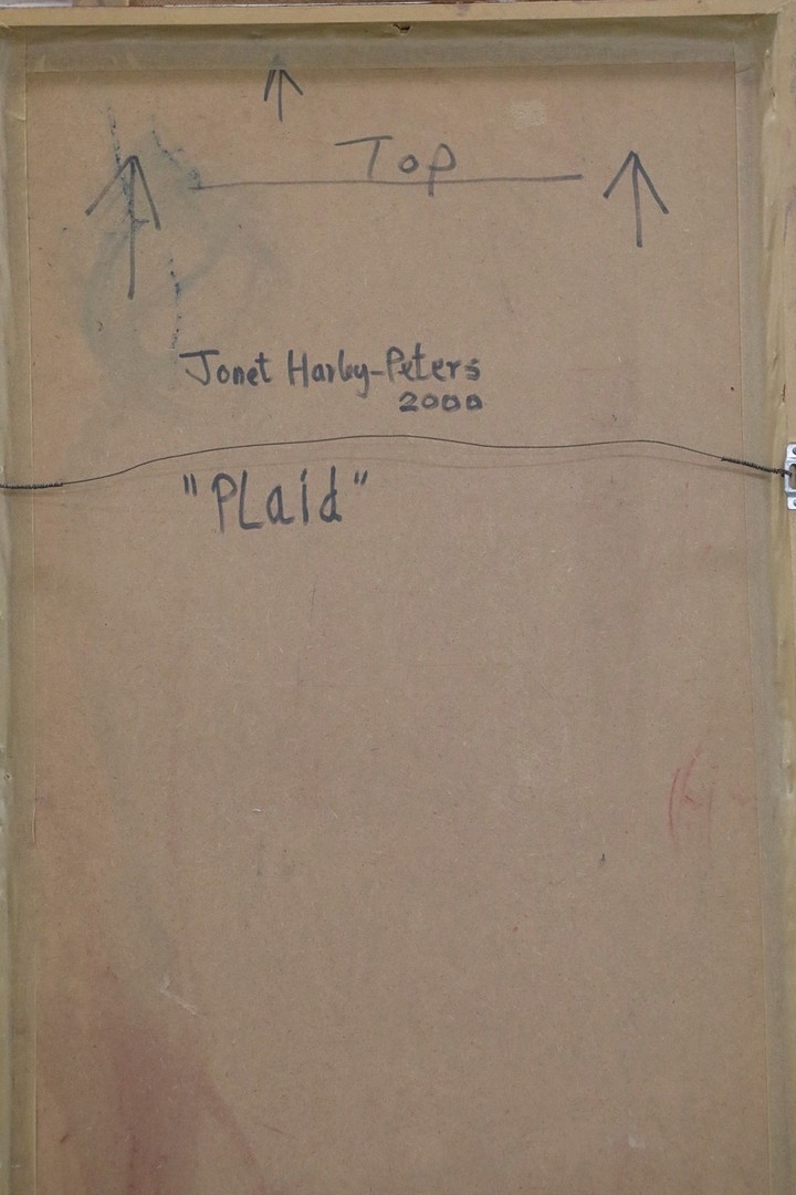 JONET HARLEY-PETERS (B. 1943). PLAID. (d) mixed media, 125cm x 64cm, framed. (Subject to ARR - see Buyers Conditions).