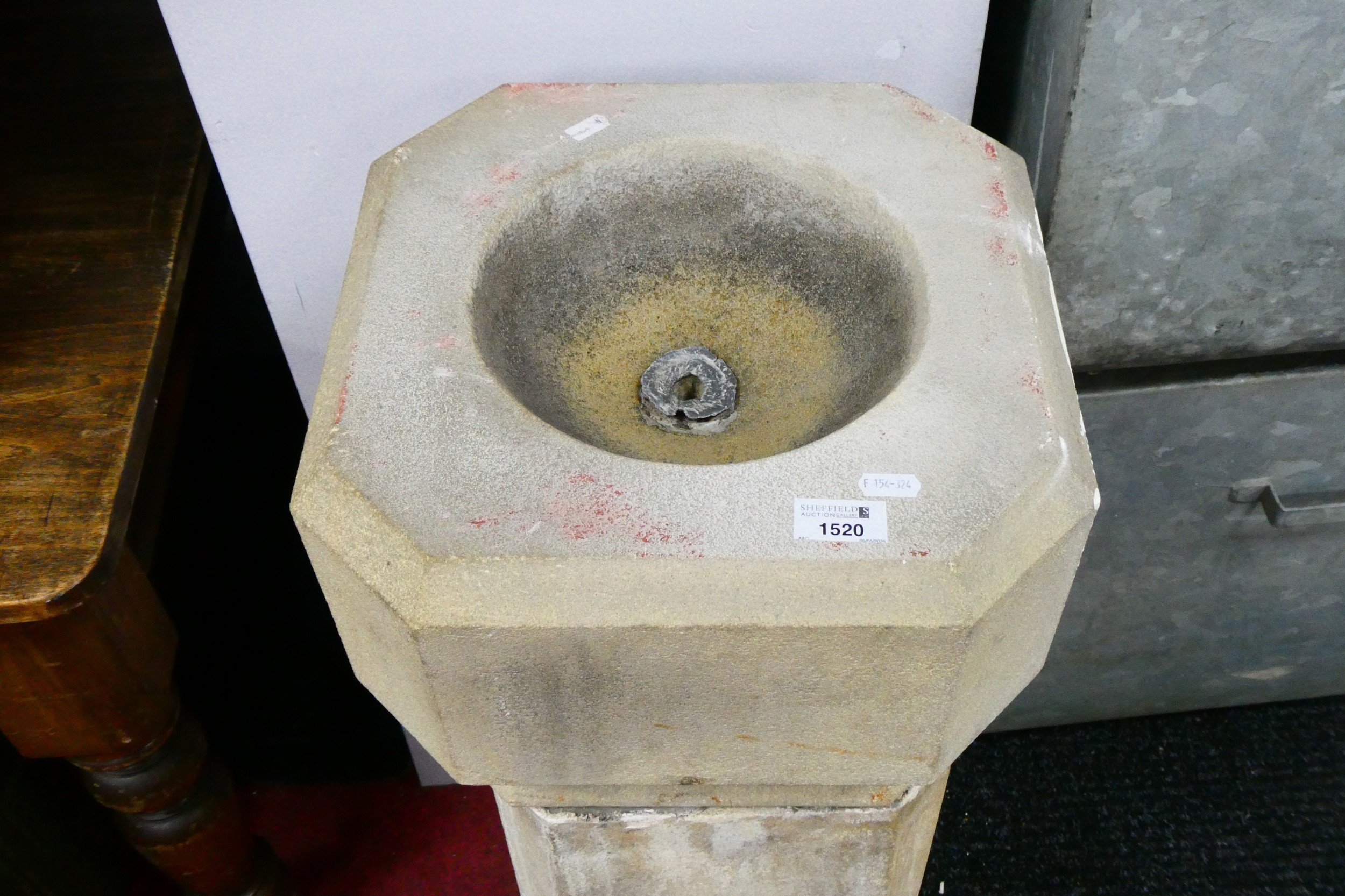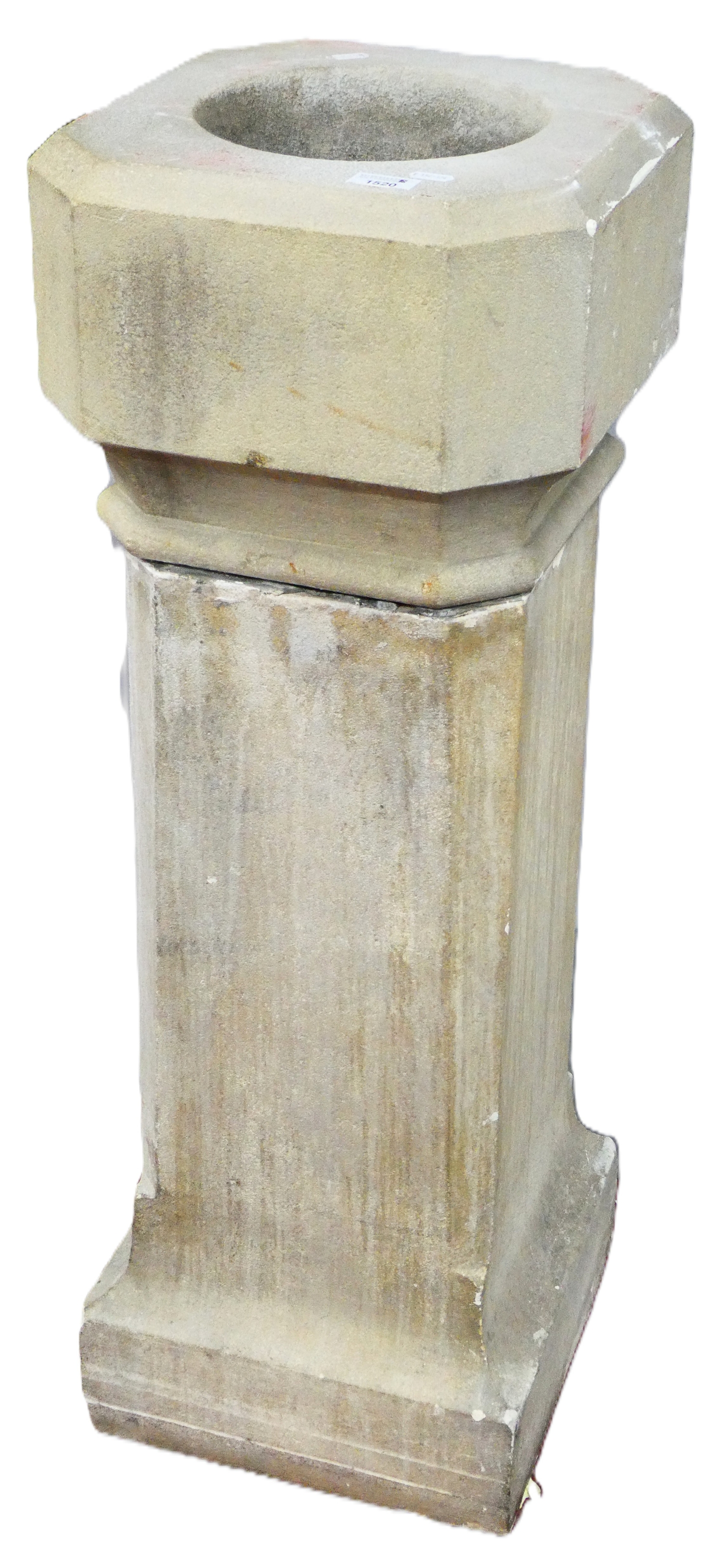 A Stone Font, with octagonal top and chamfered pedestal, 100cm high.