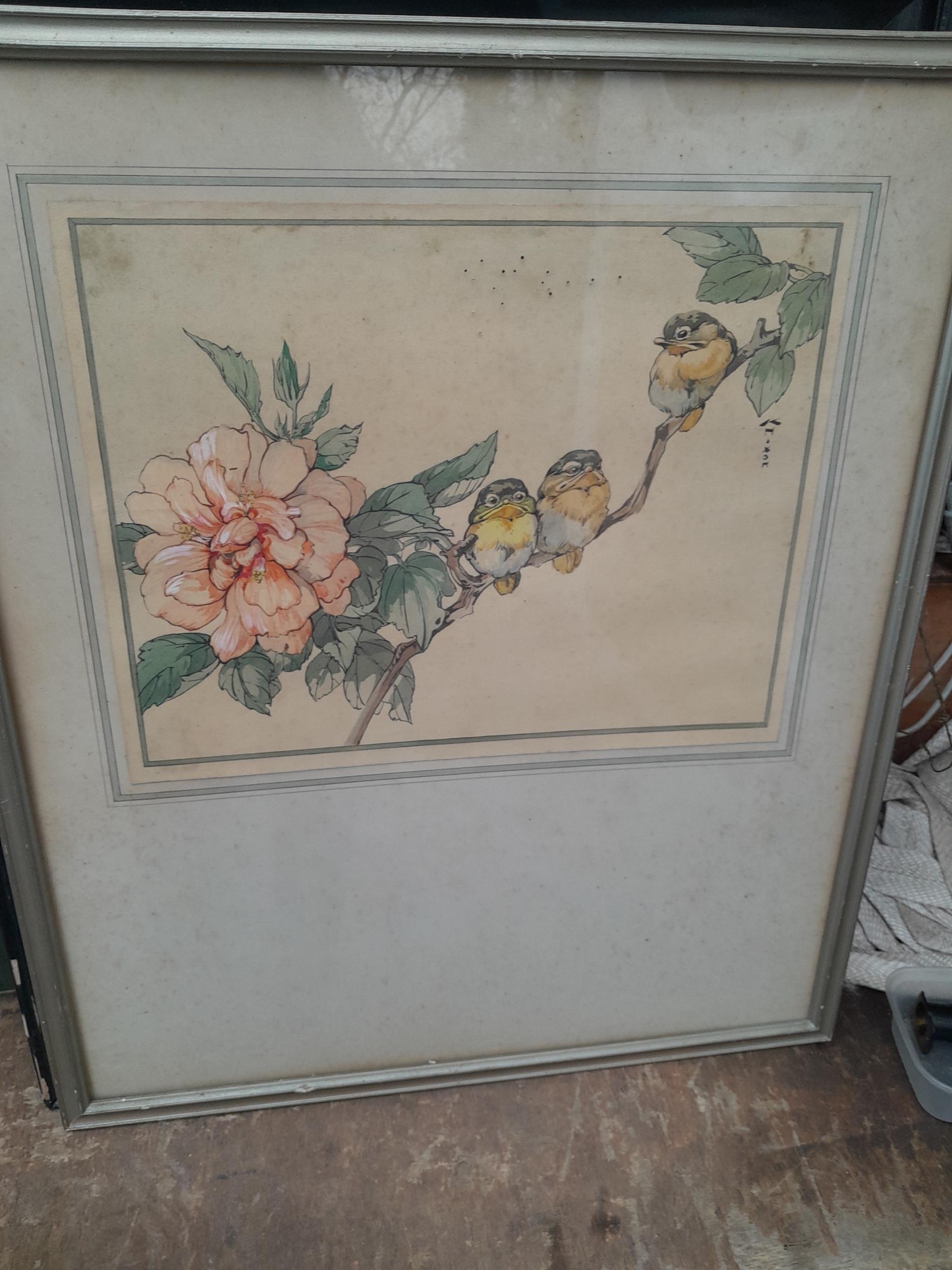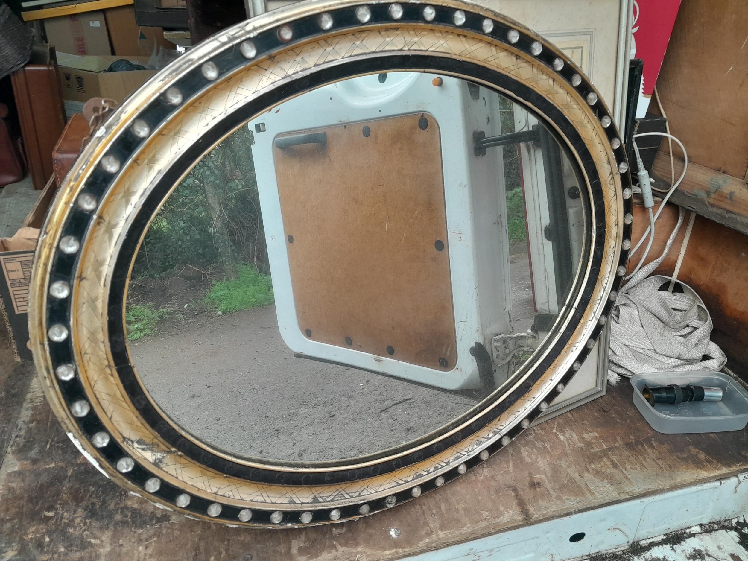 Variety of prints and pictures, watercolours, 19th century glass studded oval mirror, watercolour in the Japanese style etc.