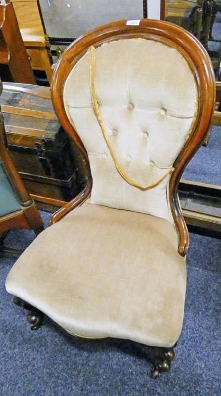 MAHOGANY FRAMED 19TH CENTURY CHAIR WITH BUTTON BACK AND CABRIOLE SUPPORTS