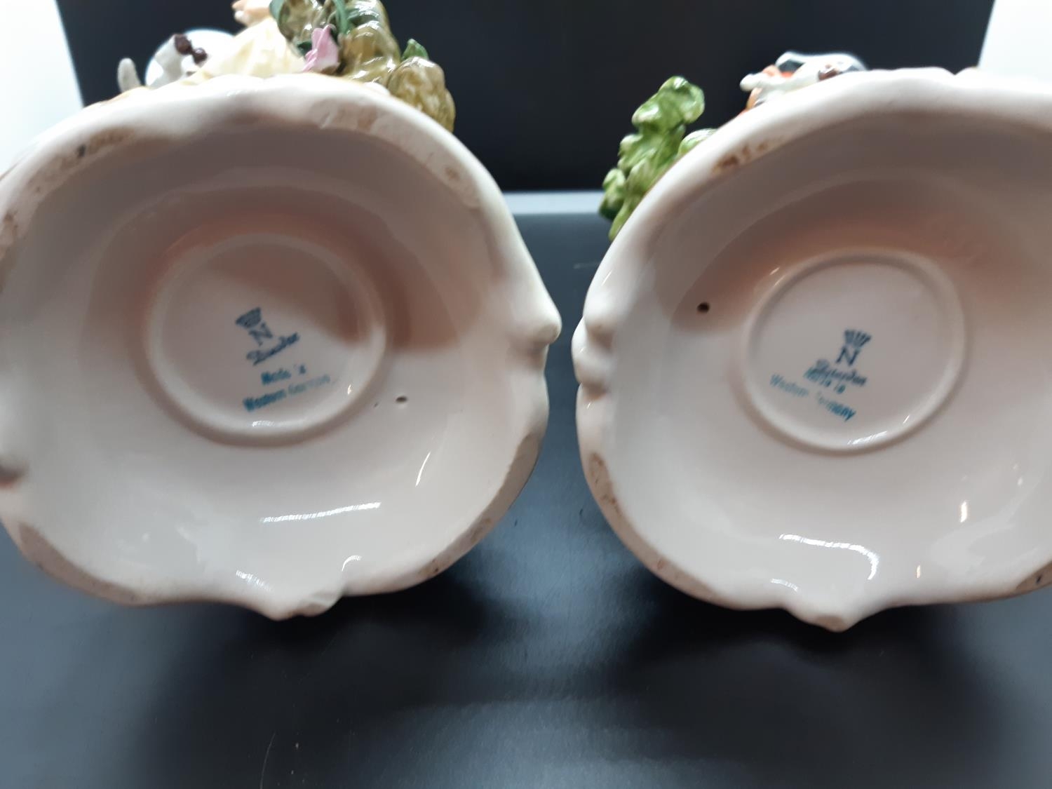 A pair of West German hand painted porcelain figurines - approx. 26cm high