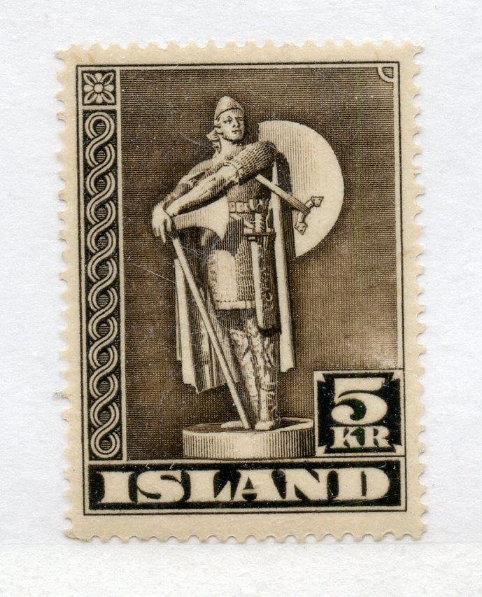 ICELAND 1939 5k brown perf 14 um. SG 255. Cat £28.