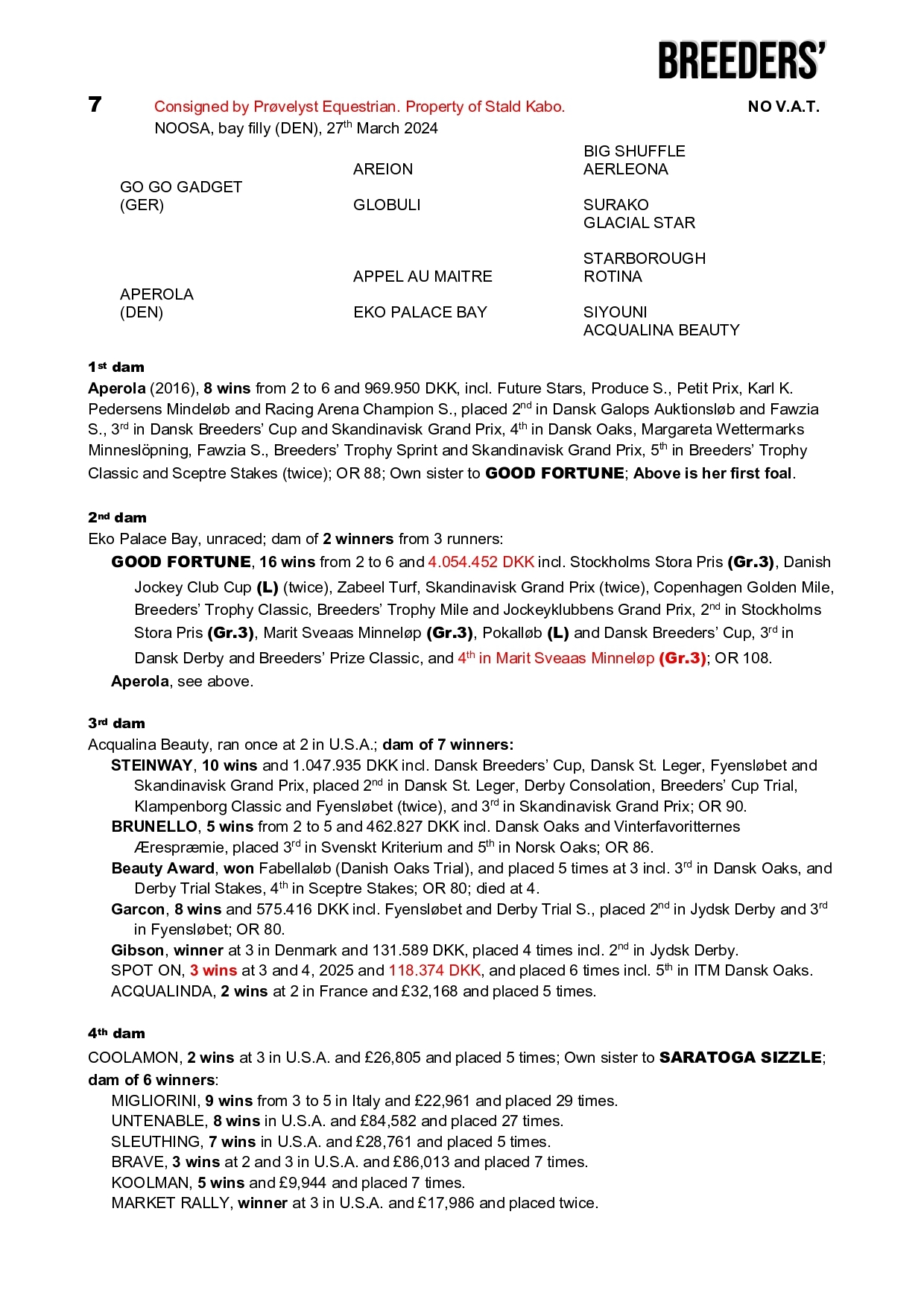 NOOSA, bay filly (DEN) Go Go Gadget - Aperola (Appel Au Maitre)