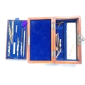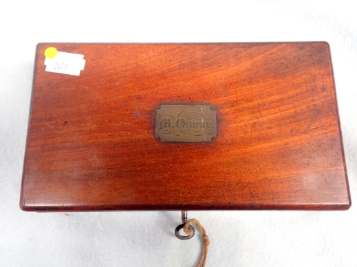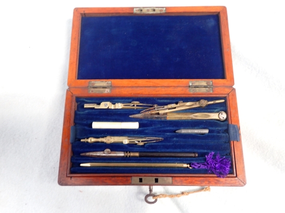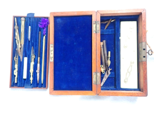A MAHOGANY BOXED DRAWING INSTRUMENTS with key