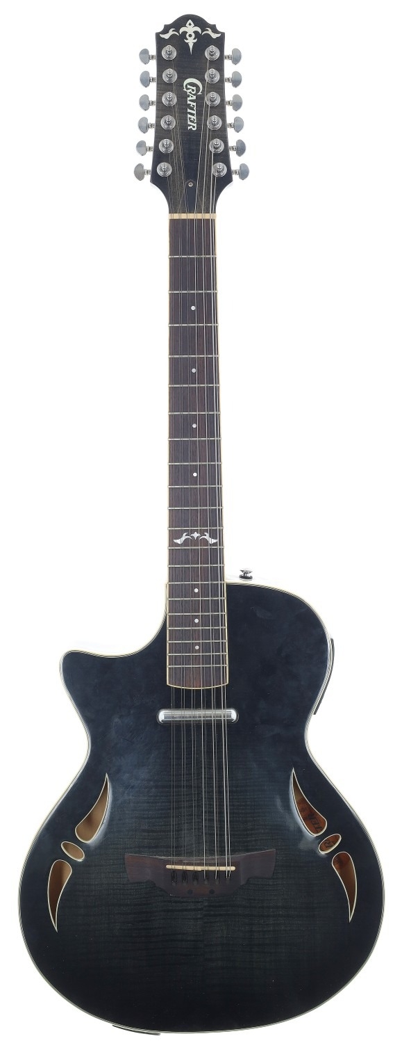 2018 Crafter SA-12L left-handed hollow body electric guitar, trans black finish, within original hard case