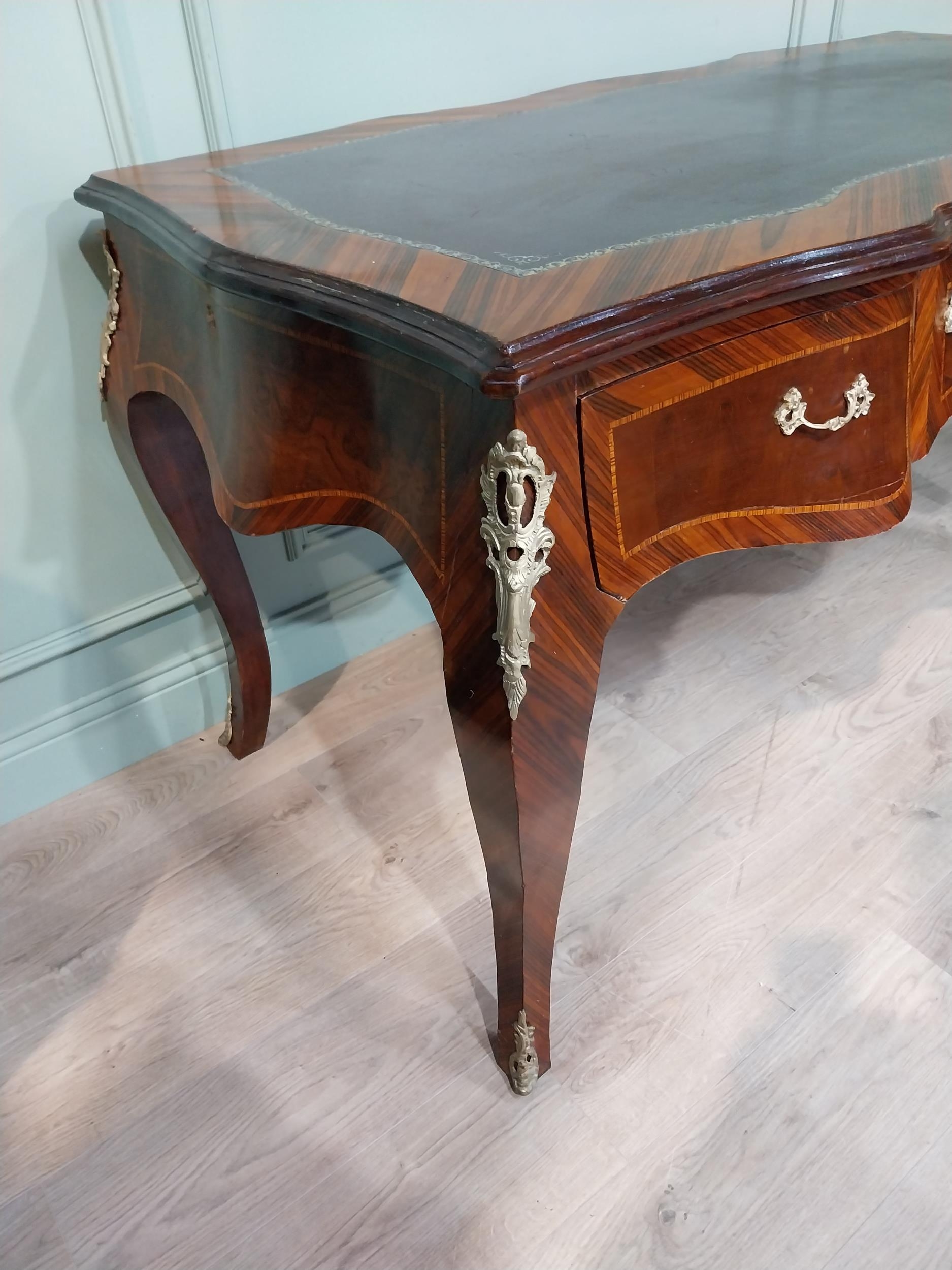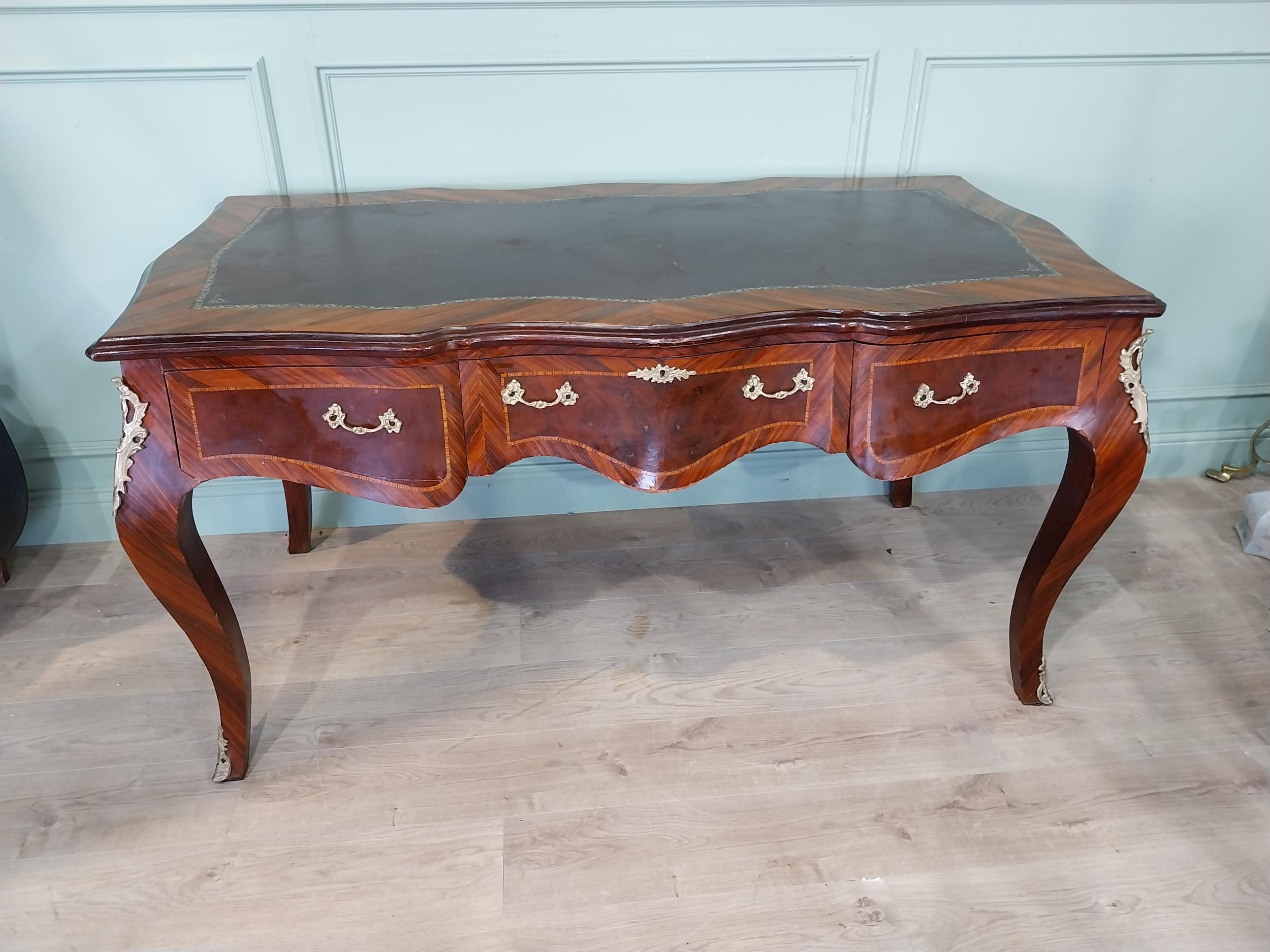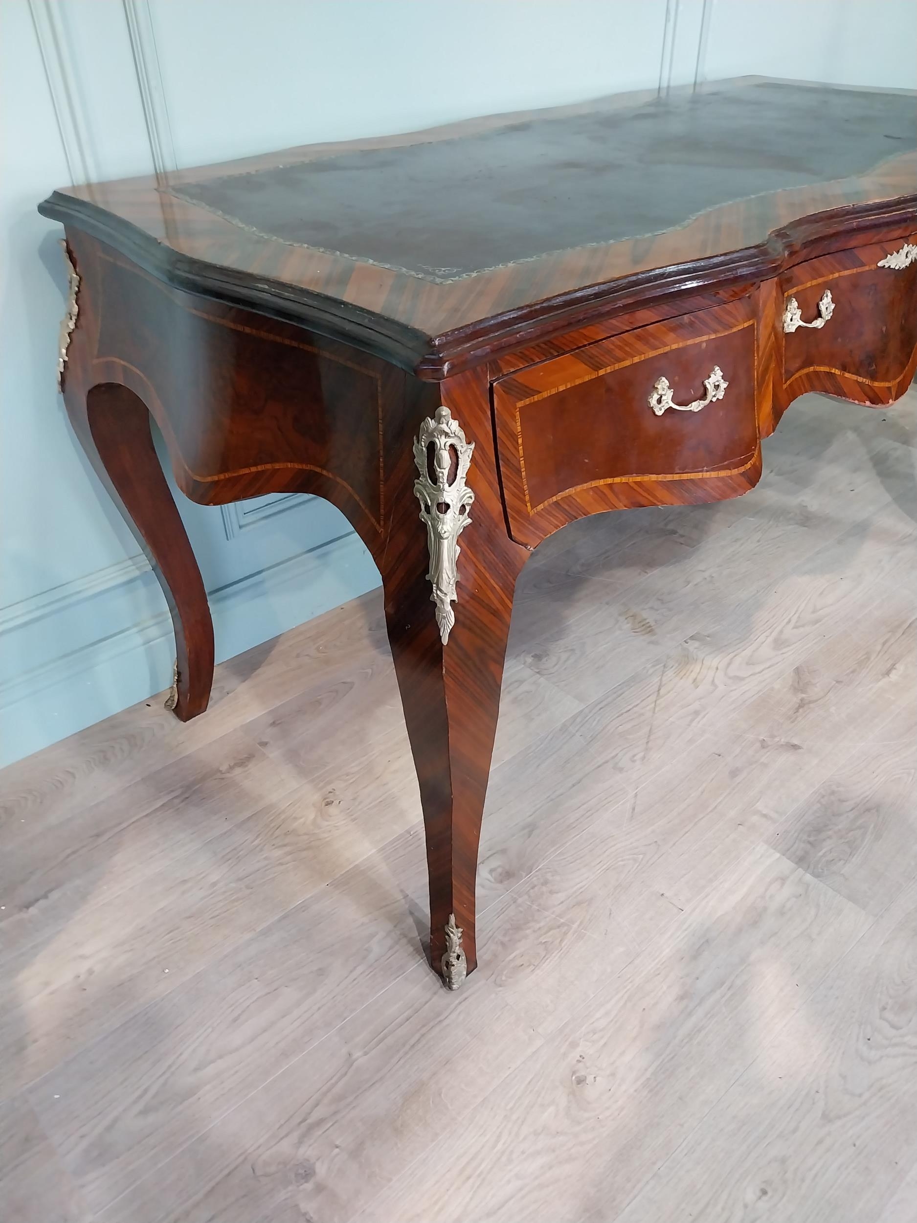 French kingwood and ormolu mounted desk with inset leather top on cabriole legs. {86 cm H x 160 cm W x 81 cm D}.