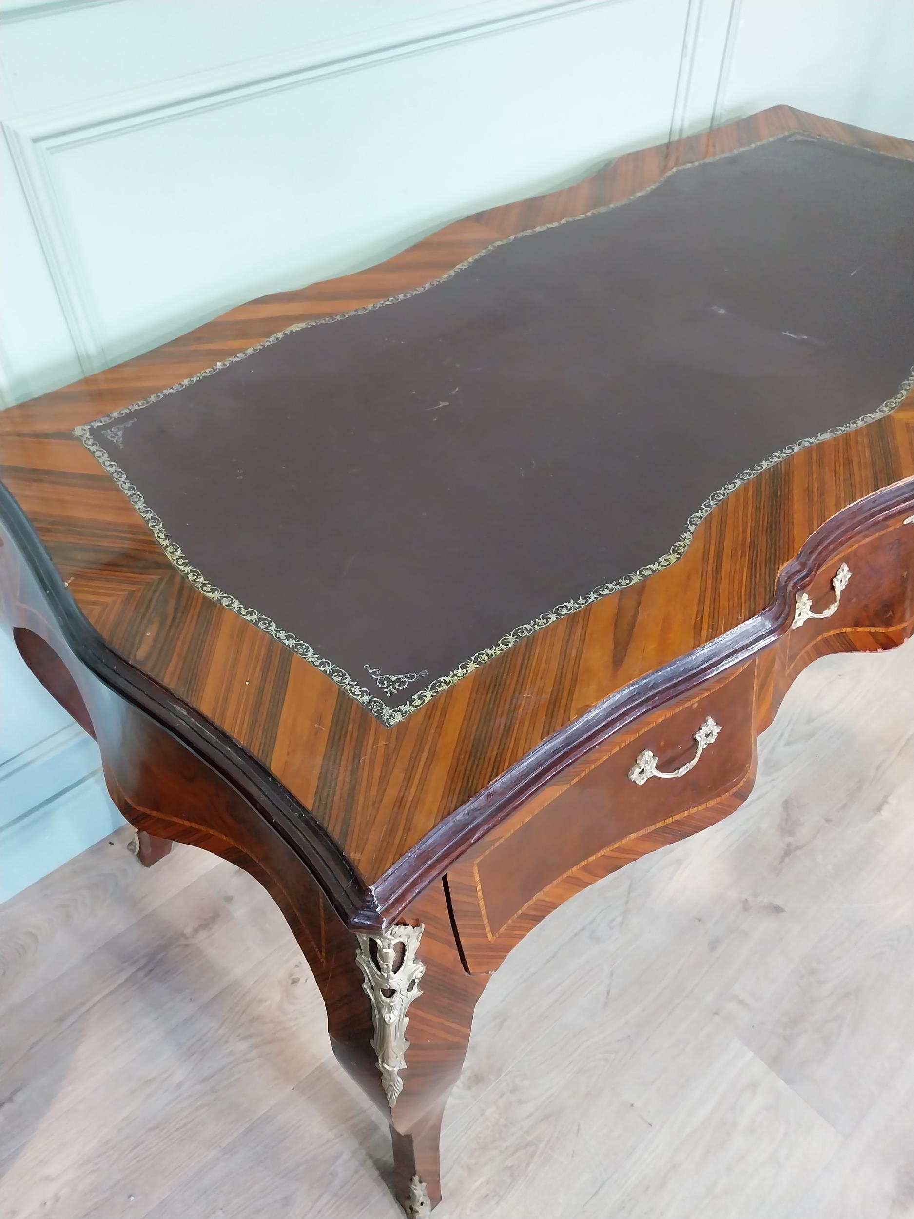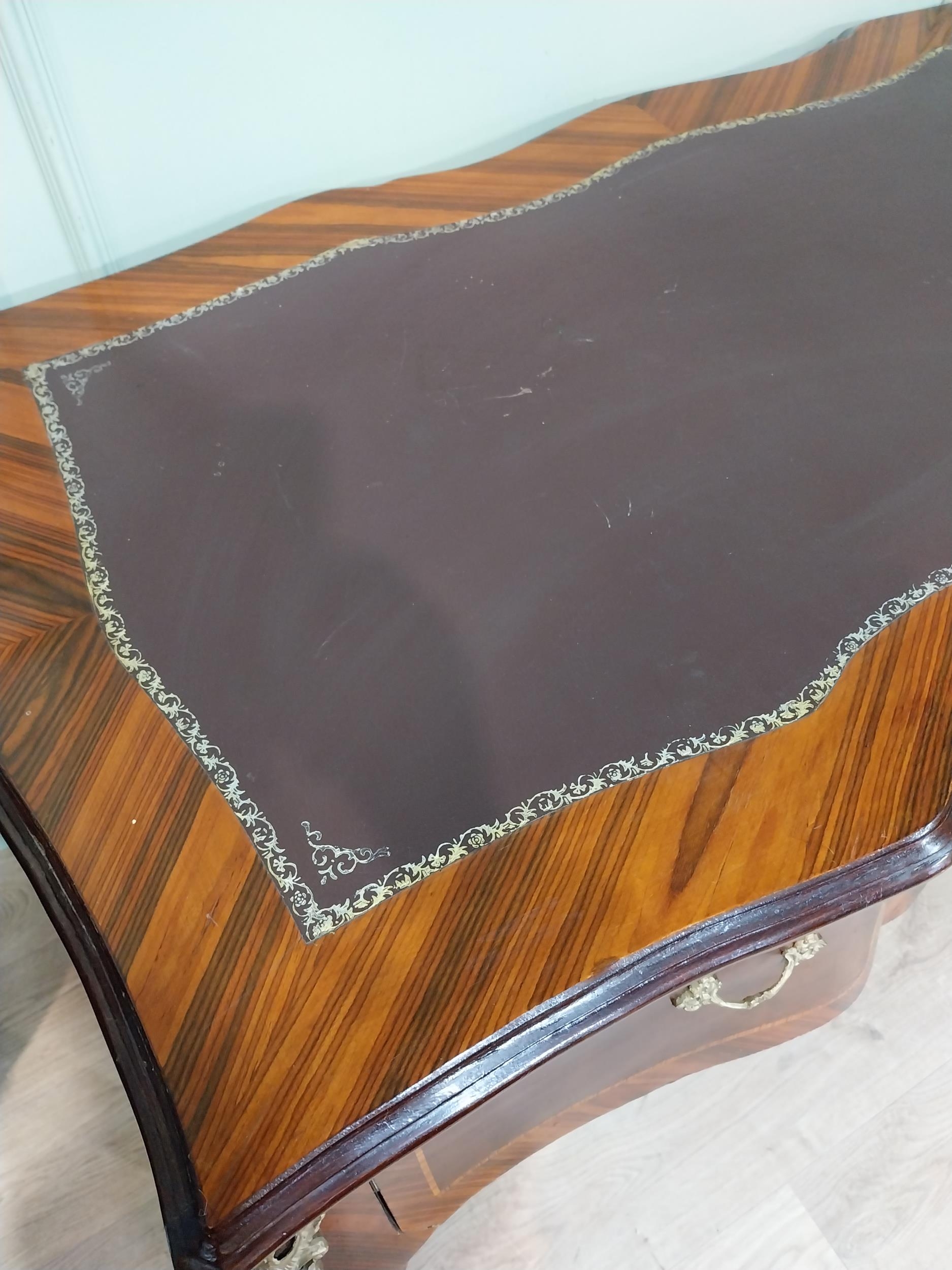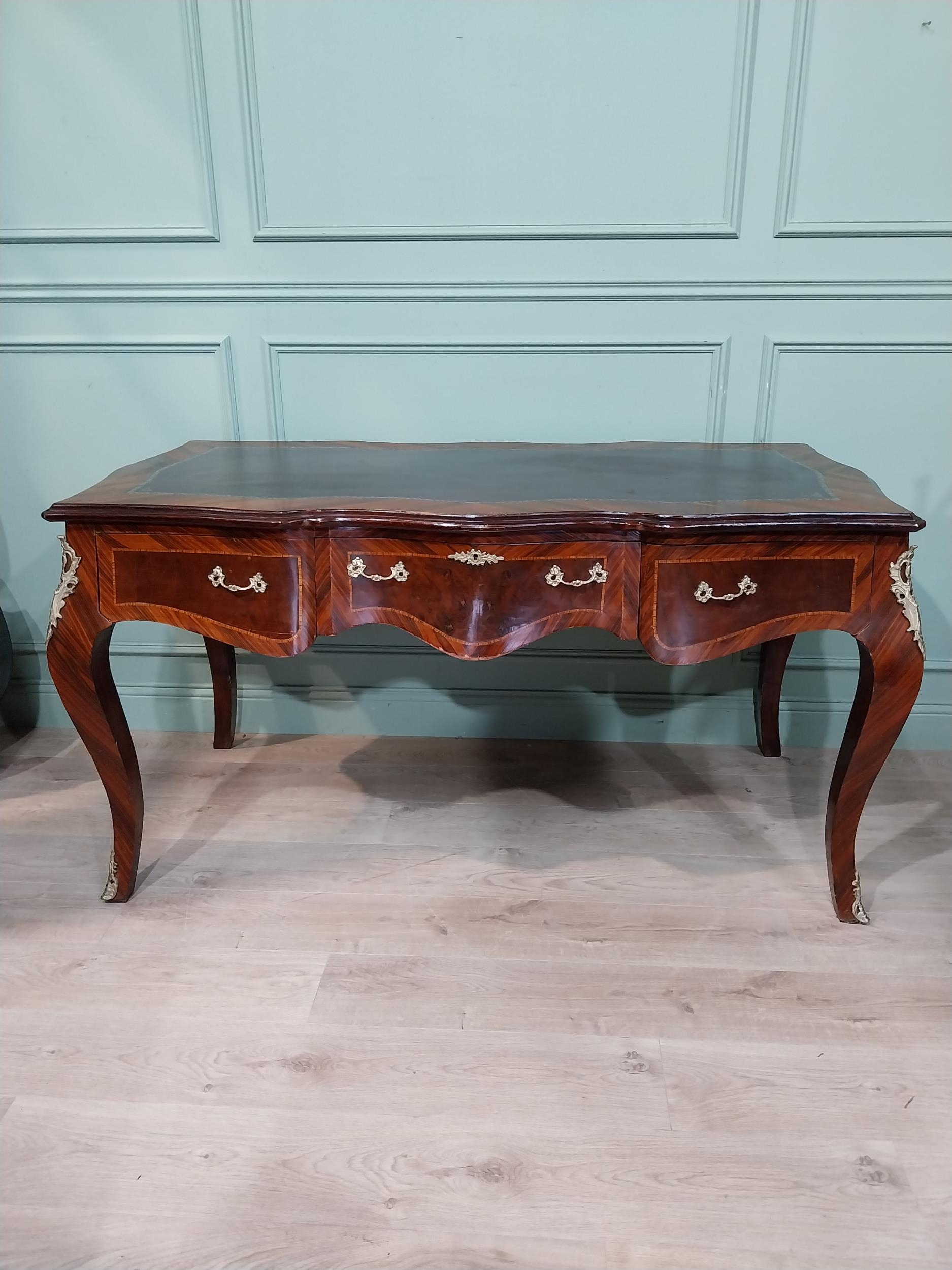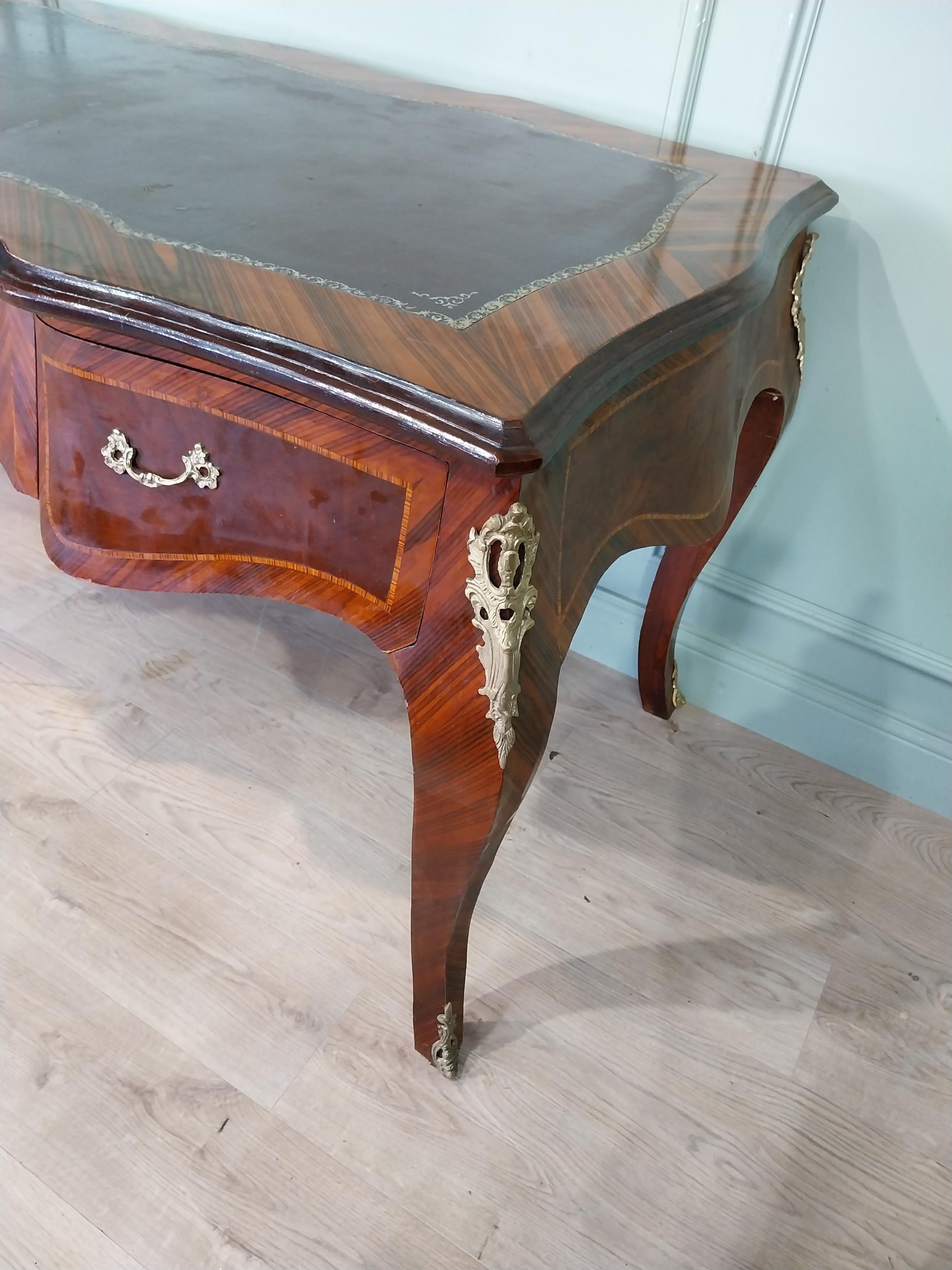 French kingwood and ormolu mounted desk with inset leather top on cabriole legs. {86 cm H x 160 cm W x 81 cm D}.