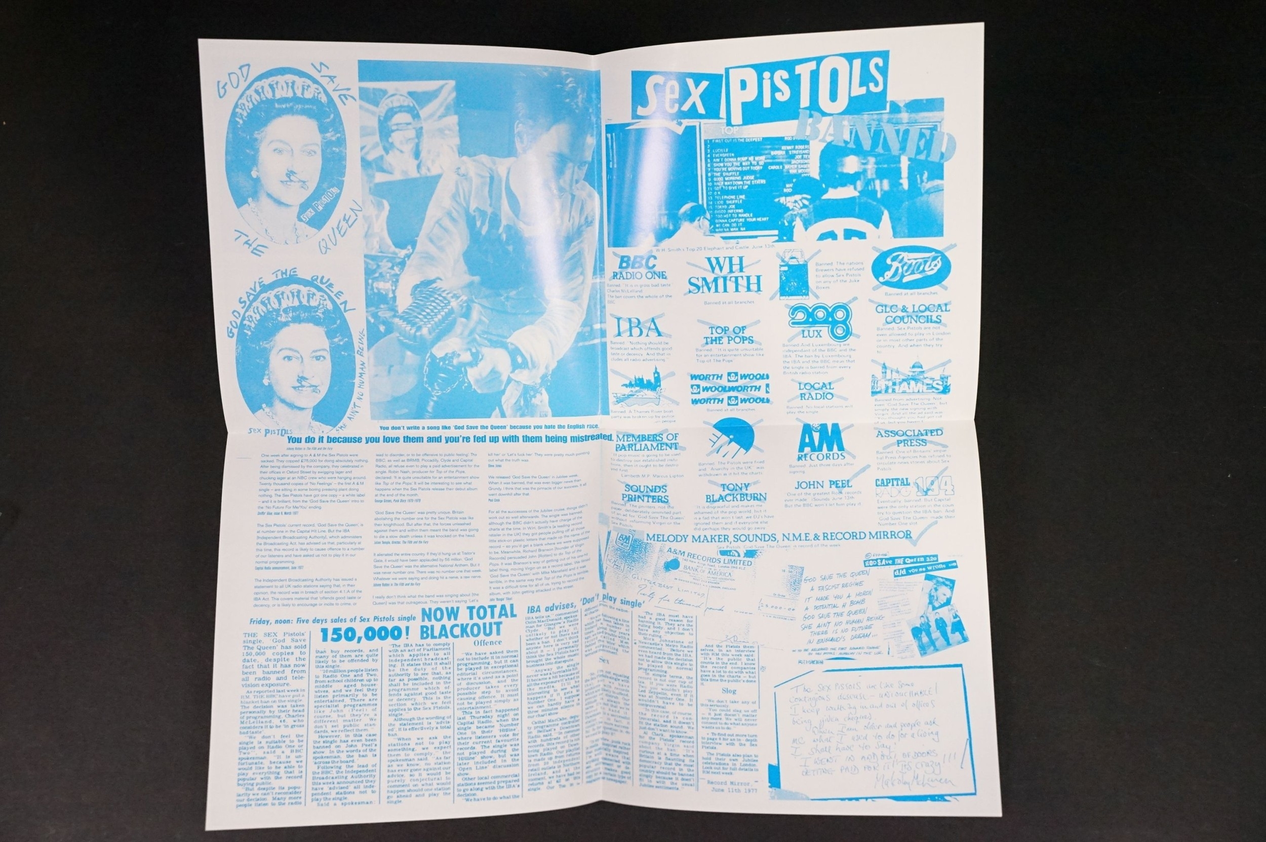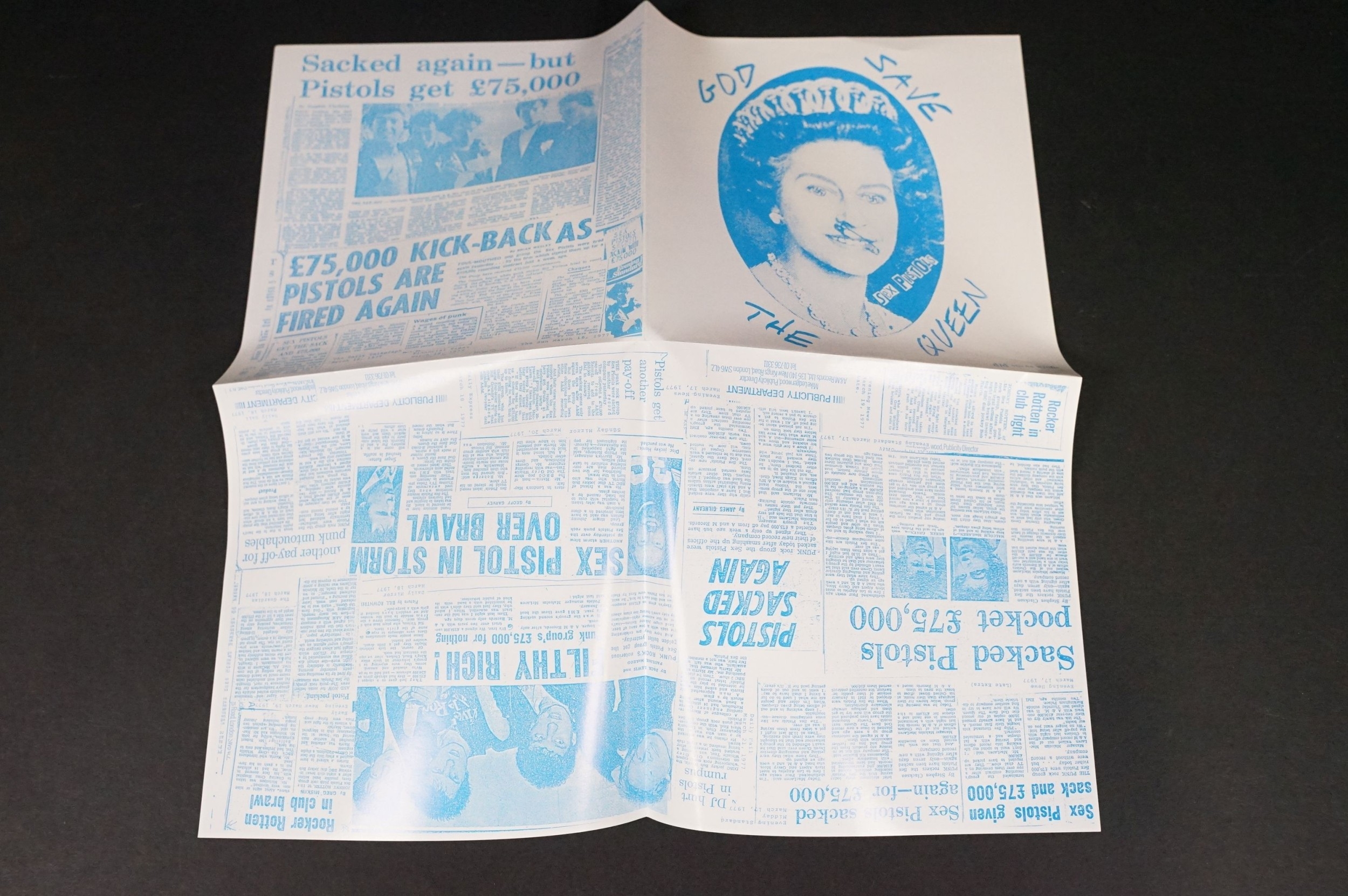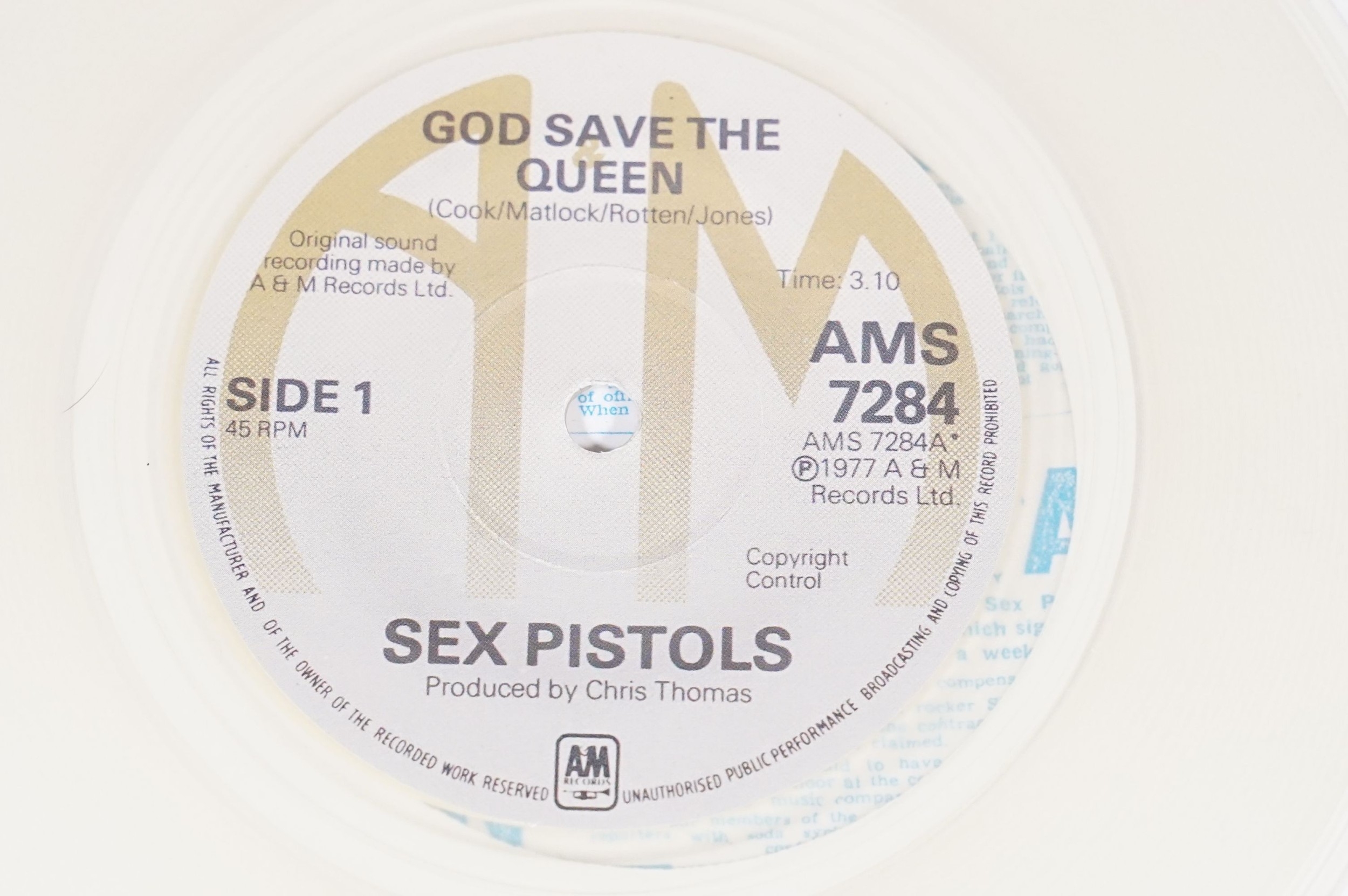 Vinyl - Punk - Sex Pistols, 4 different coloured vinyl UK 2012 re-pressing of “God Save The Queen”, clear, orange, red and green marbled vinyl. All come with swastika eyes queen fold out poster picture sleeves, also comes with one extra empty poster sleeve. EX+