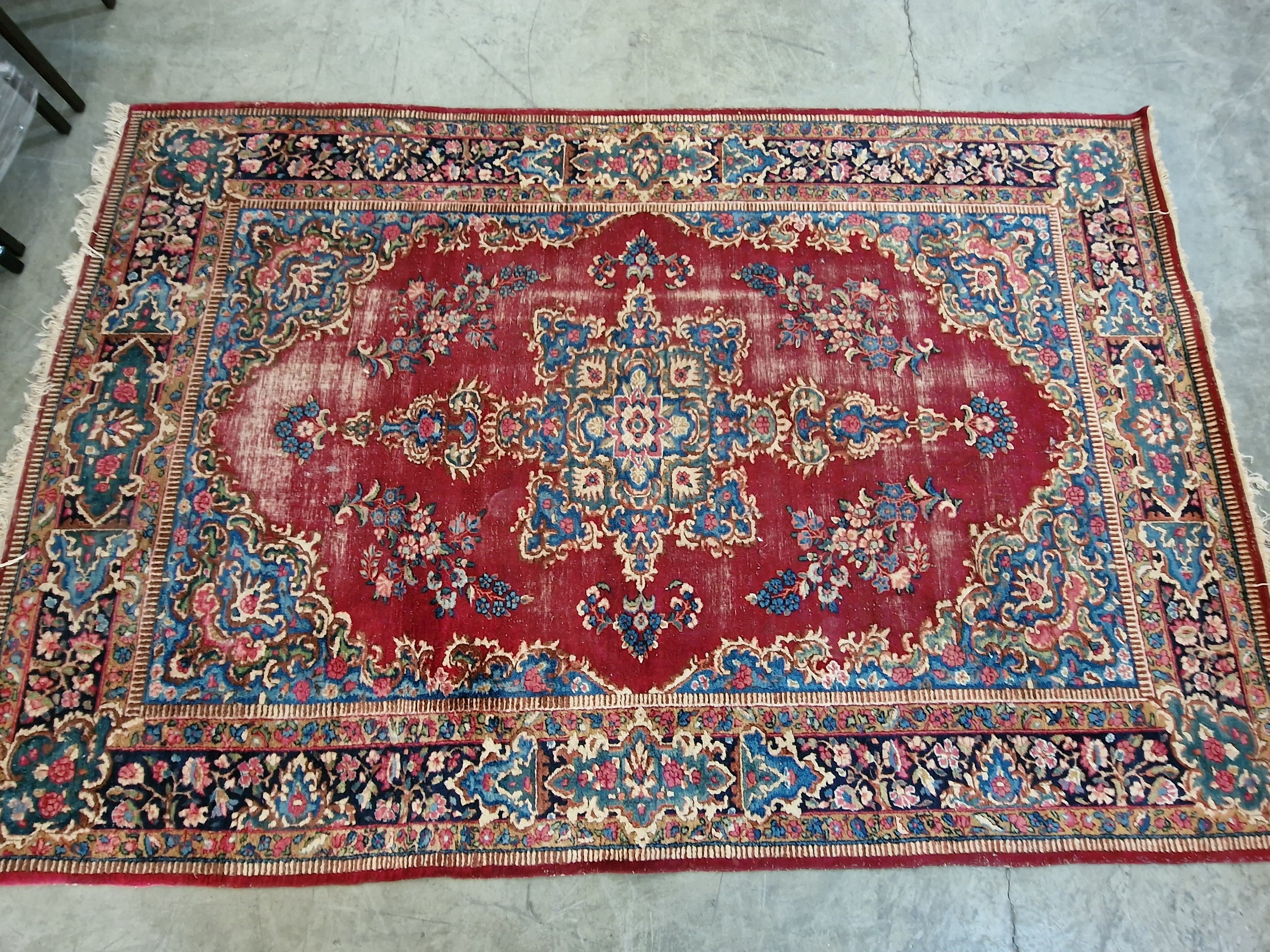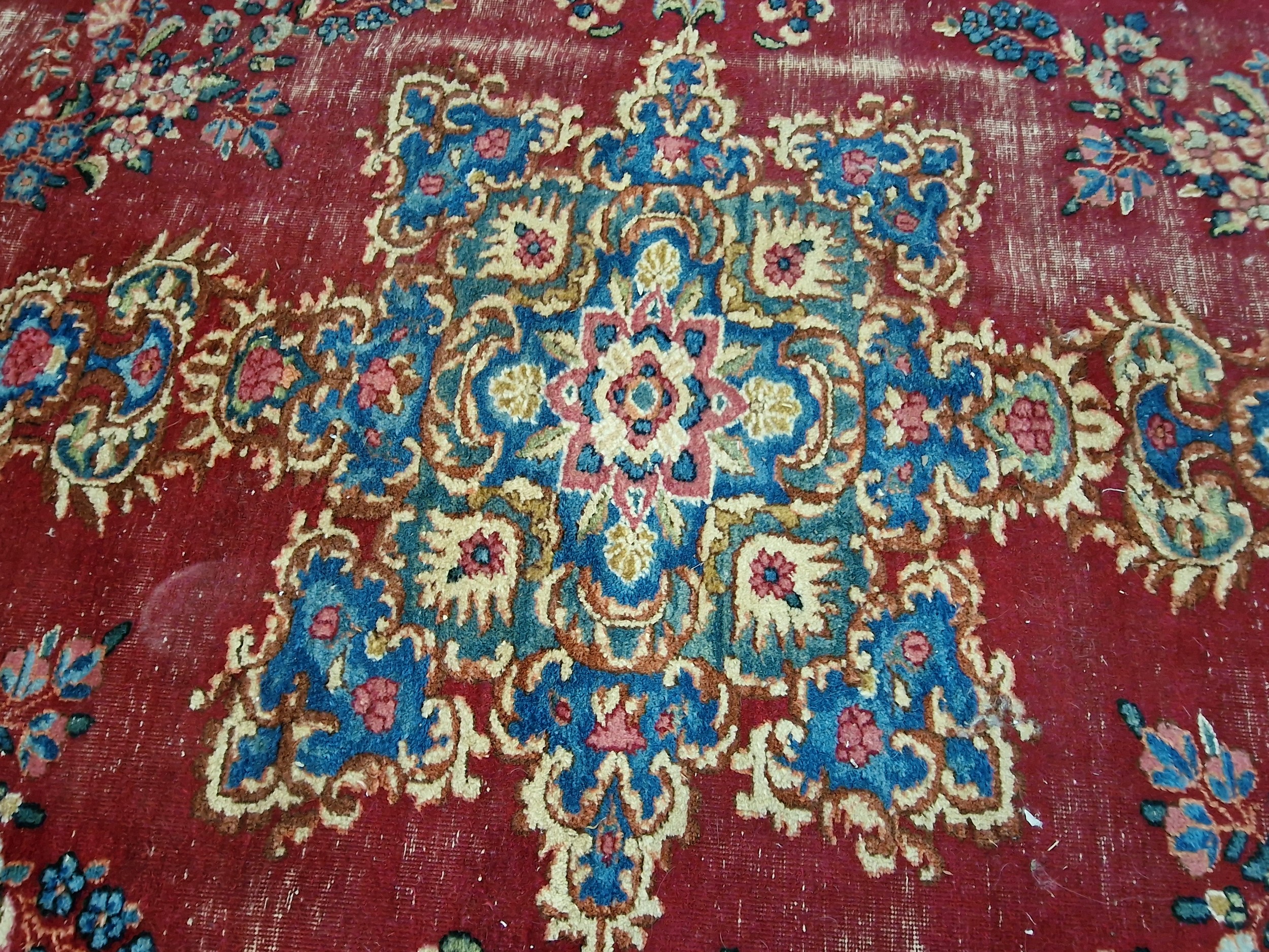 Hand Woven Kirman Persian Carpet, (Approx. 3m x 2m), with Bold Floral Designed Medallion with Decorative Borders