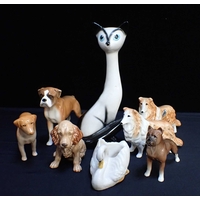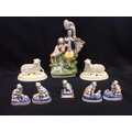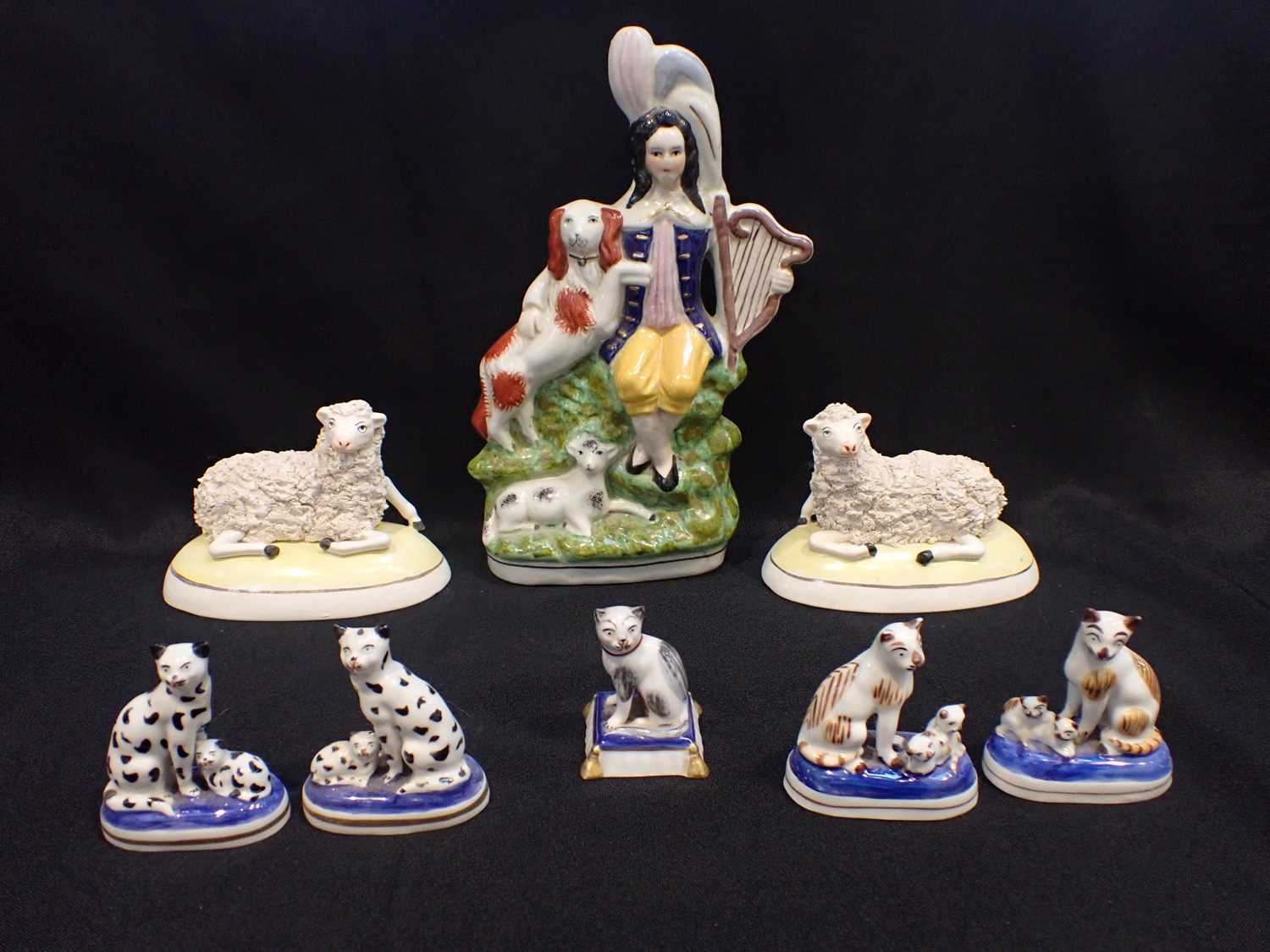 13.5cm wide (late examples), a similar figure with dog and harp, and five small cat figures with gold anchor marks