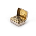 by Thomas Wilkes Barker, London 1800, plain rectangular form, with a gilded interior, the pierced grille decorated with scrolling foliage and musical instruments. 3.5cm wide