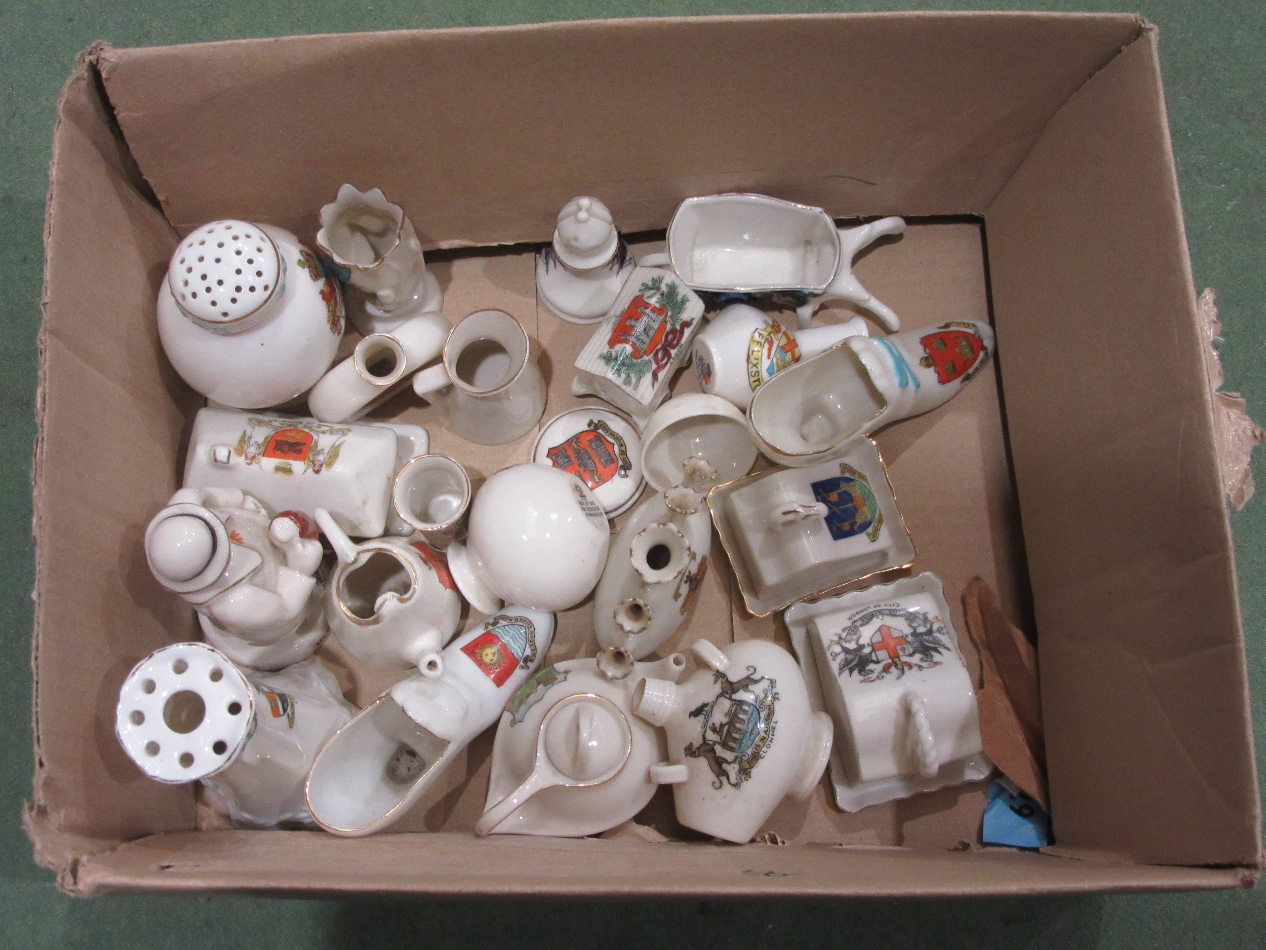 A quantity of crested chinaware to include a Bemma cheese dome, a Goss model of vase from Silchester Reading Museum and a Florentine tulip vase "Peebles"