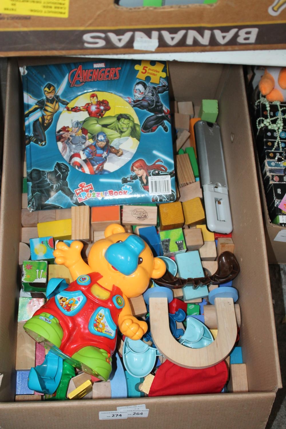 CHILDRENS BUILDING BLOCKS AND AN AVENGERS PUZZLE BOOK