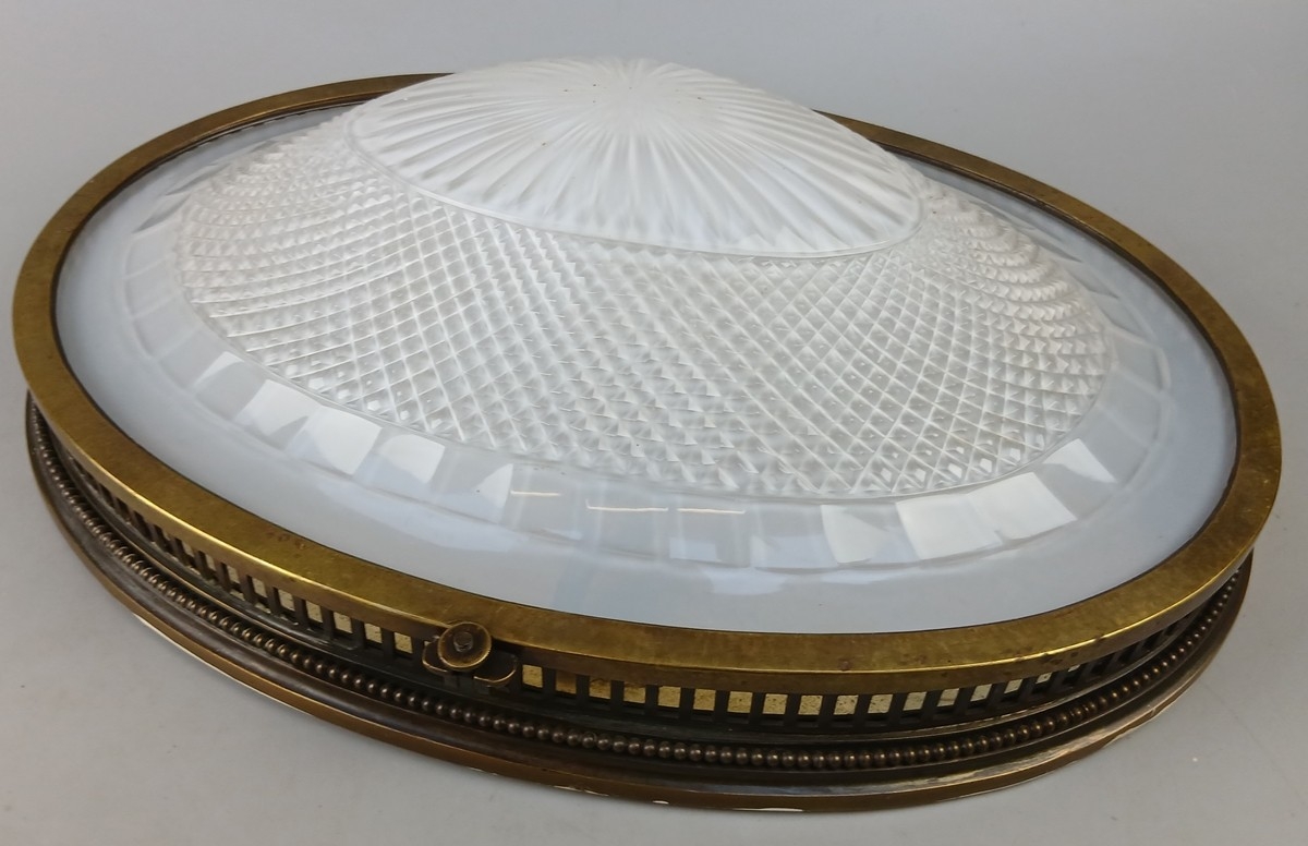 Early 20th-century brass gallery / bulkhead light, possibly marine or commercial in origin - Approx 49cm x 34cm