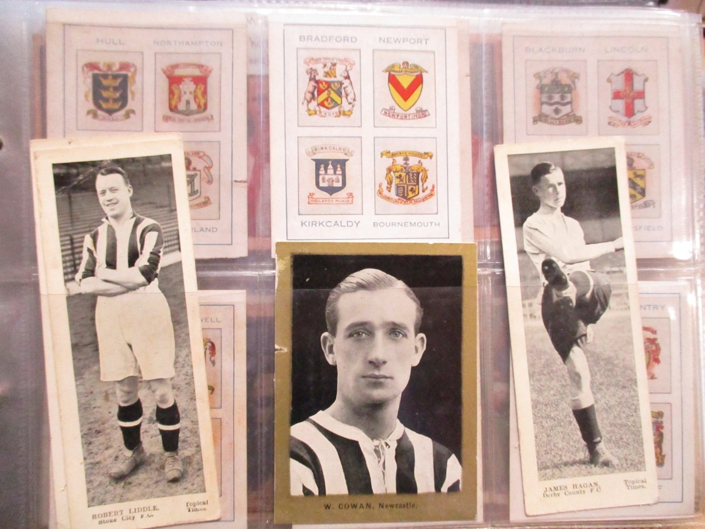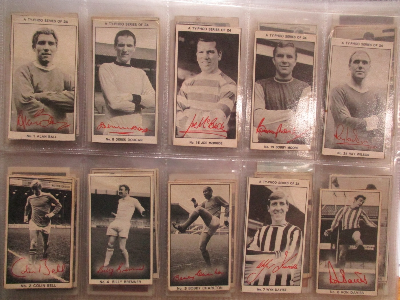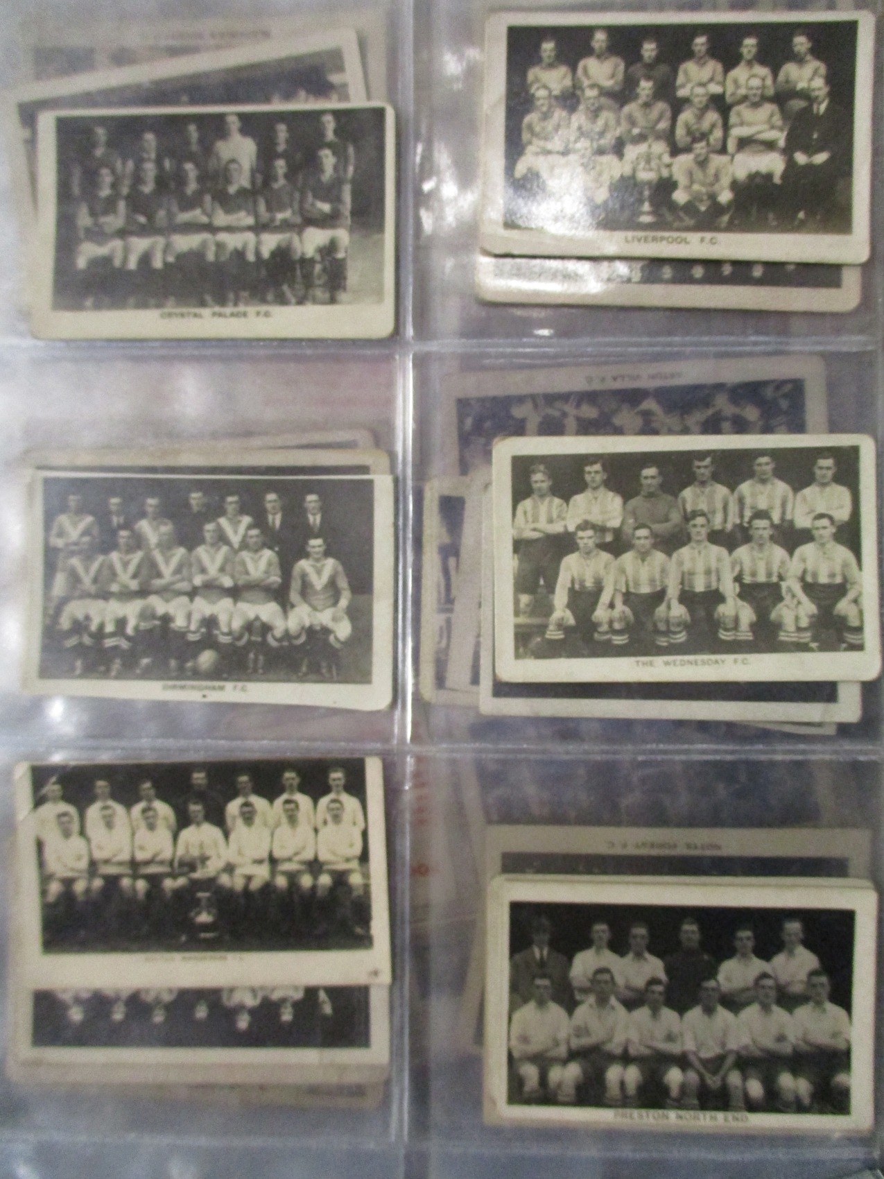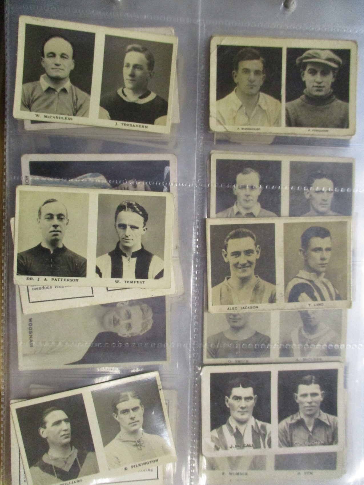 Collection with mostly trade cards with some cigarette card ranges, including Barratt Famous Footballers mixed (40), Test Cricketers (24), Topps Famous Footballers (8), Football Stars (19), Footballers (9), Thompson World Cup Footballers (10), Football Stars (11), etc, plus ranges from Amalgamated Press, Boys Friend, Boys Magazine, Topical Times, Typhoo, etc, varying condition. Qty 3,000 approx