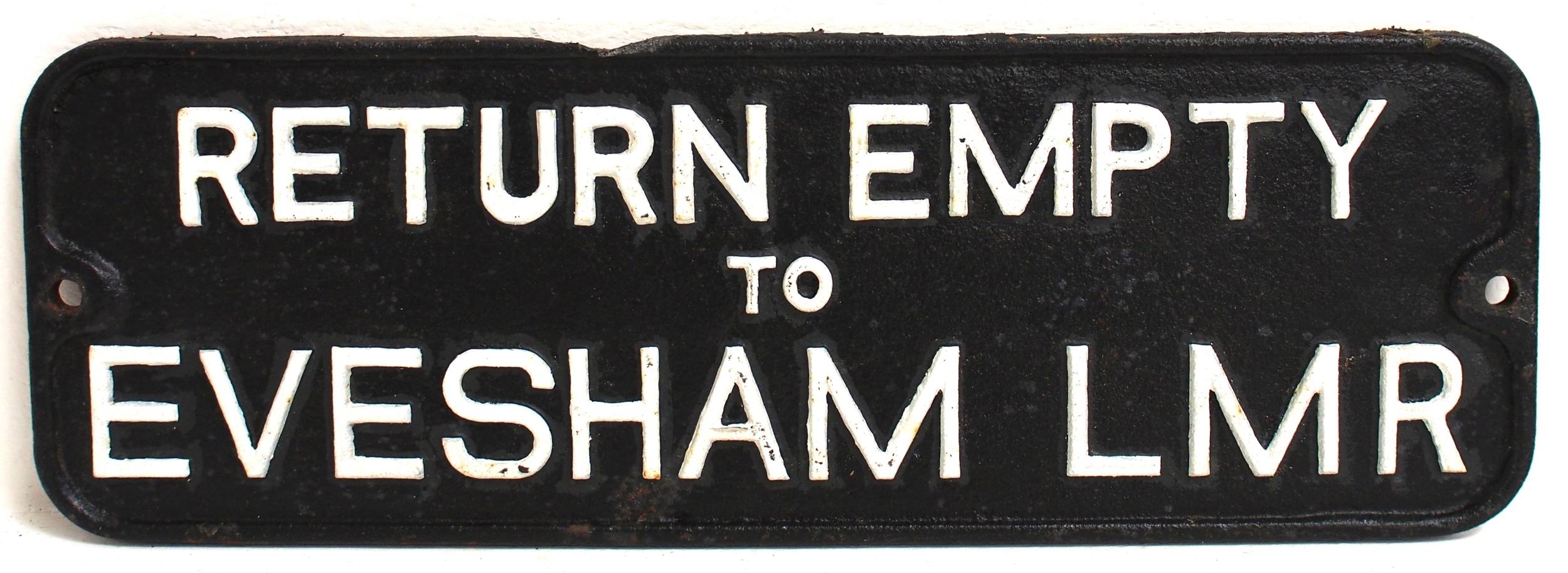 LMR C/I wagonplate "RETURN EMPTY TO EVESHAM LMR" 20"x 7", repainted. (C2) (Dispatch by Mailboxes/Collect from Banbury Depot)