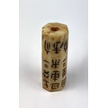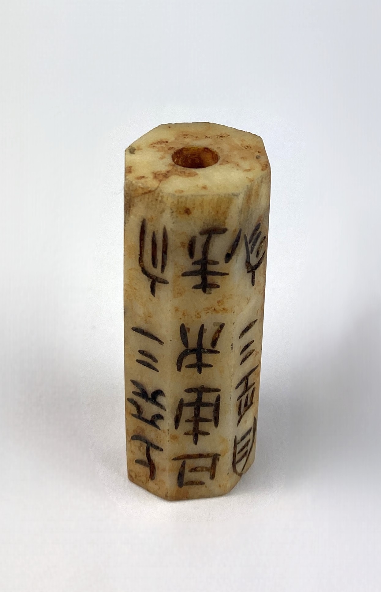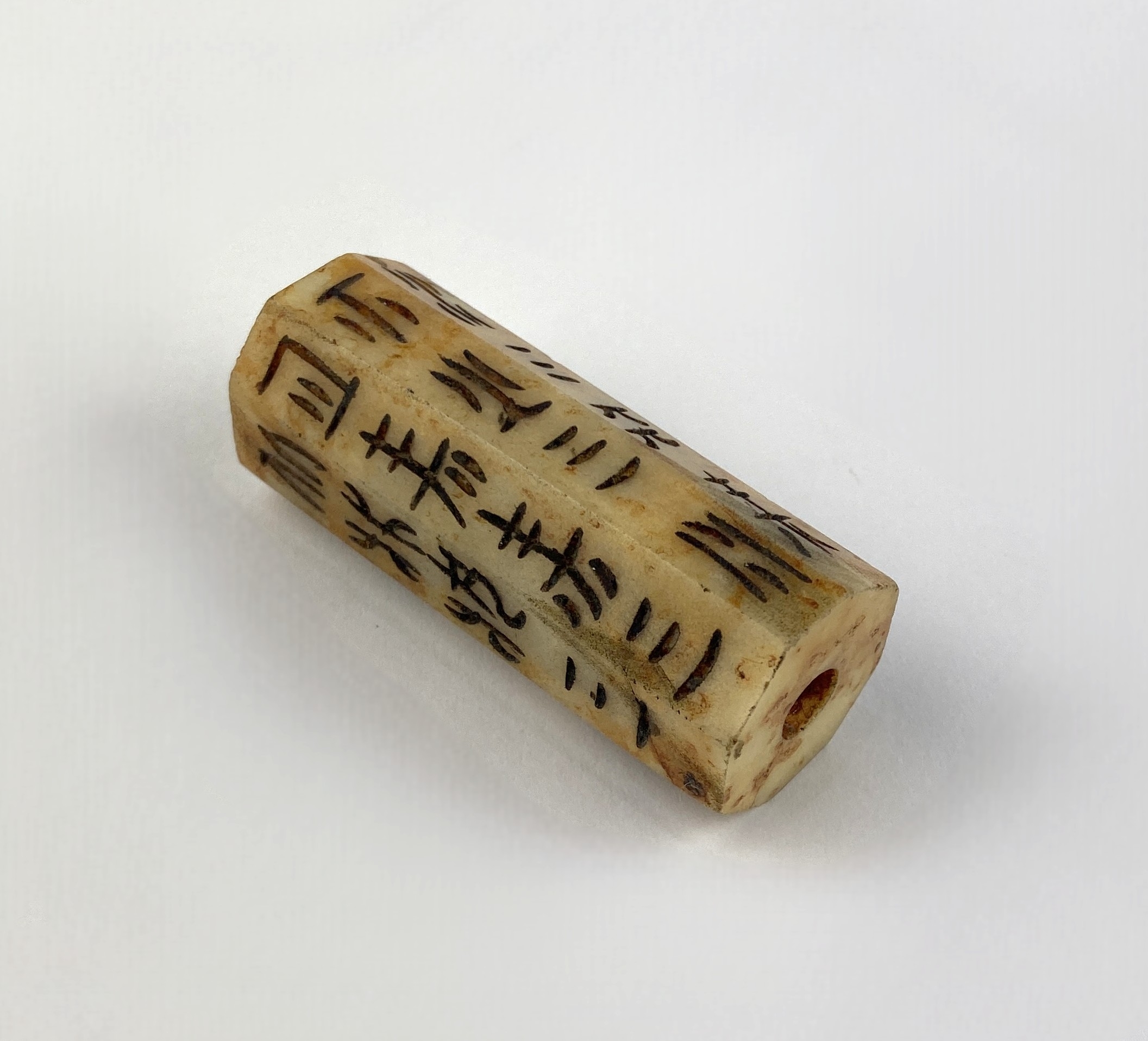 A Chinese carved jade feng shui text cong pendant, in the Hongshan Culture style, 5.5cm long.