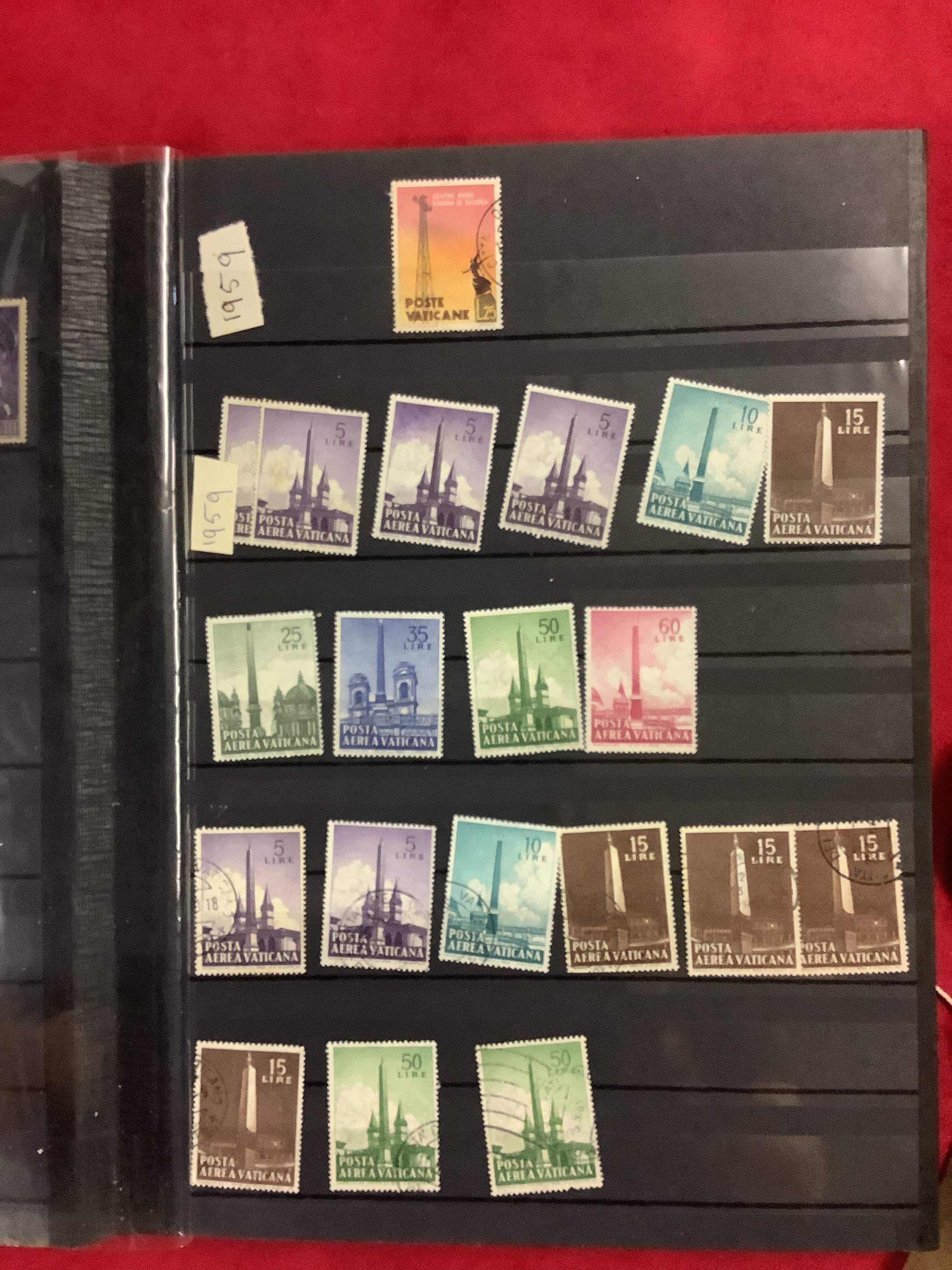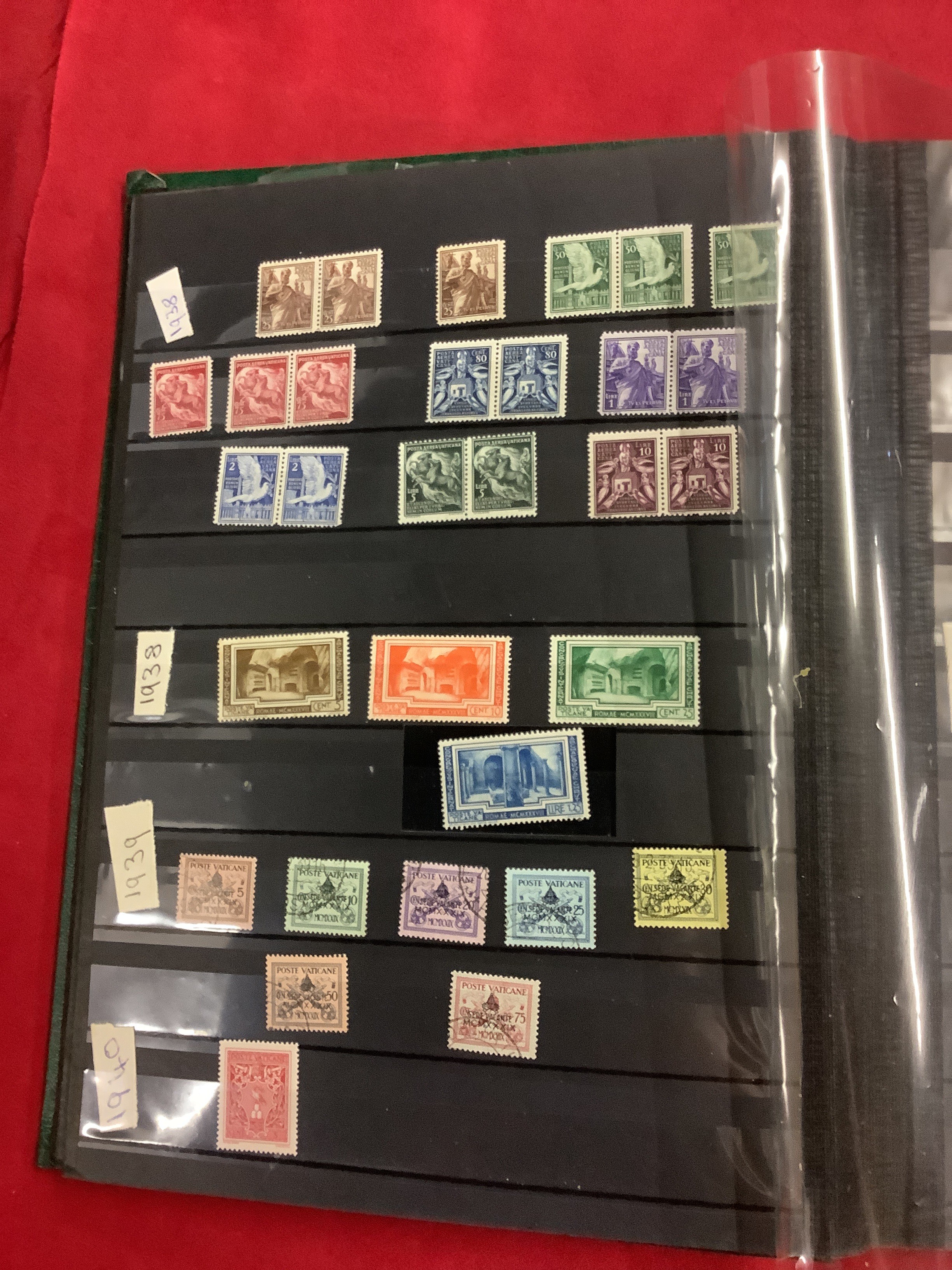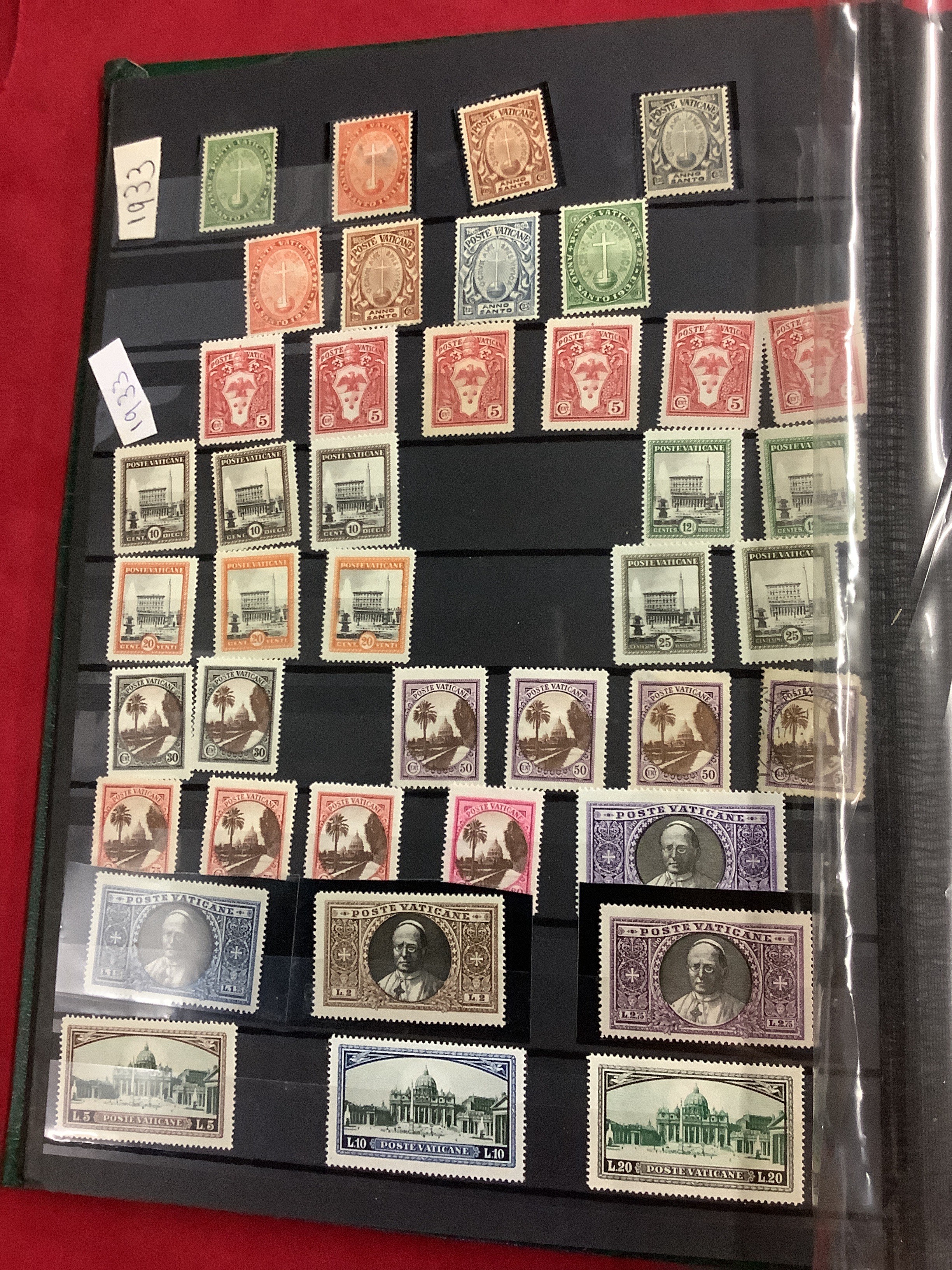 An album housing a selection of mint and used stamps from the Vatican dated from 1933