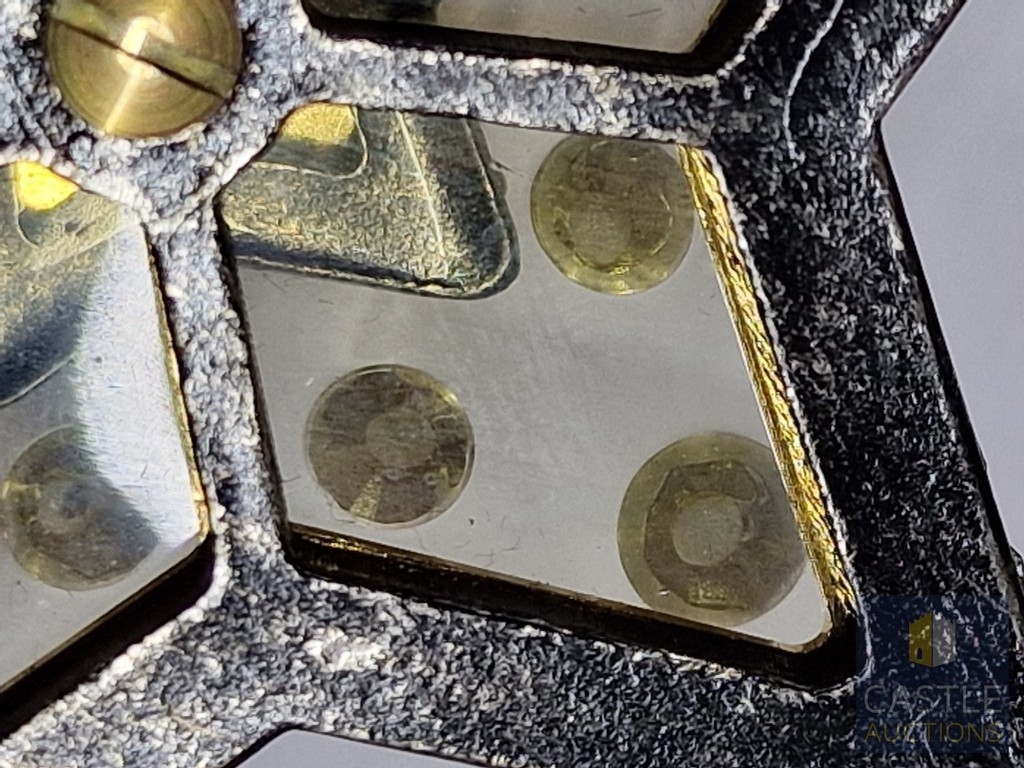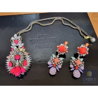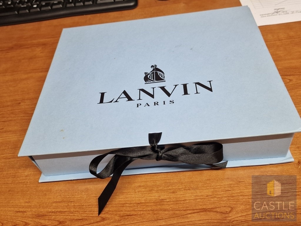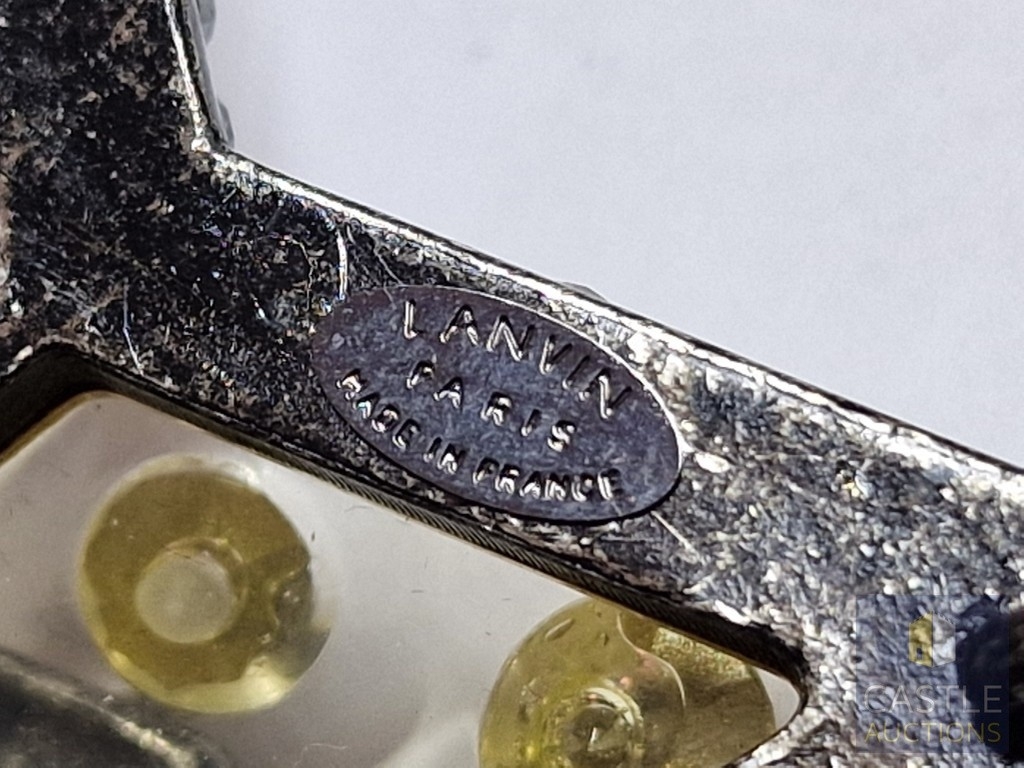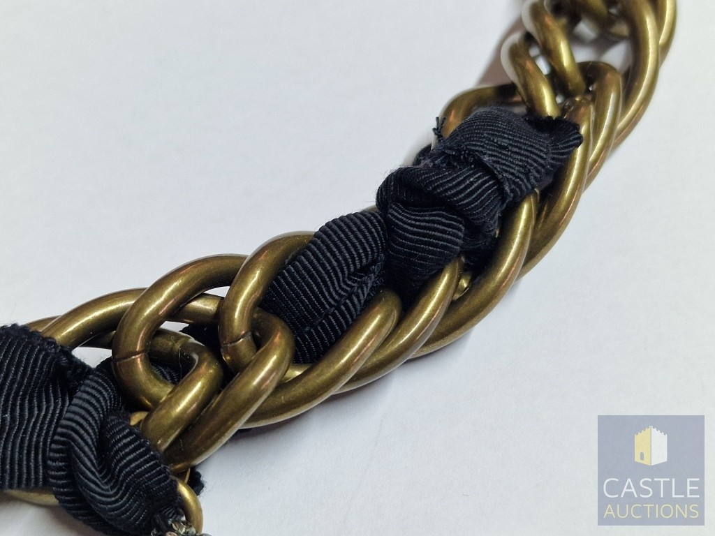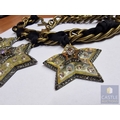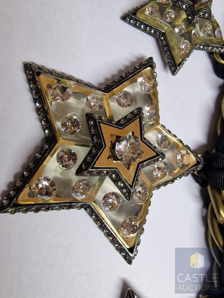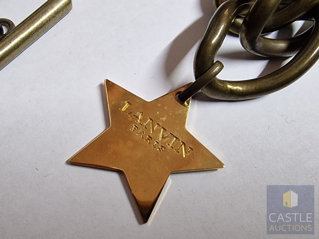LANVIN Paris, 'Altair Star Necklace', a Striking Piece with 3 x Large Crystal Set Star Shaped Pendants on Gold Tone Double Link Chain Woven with Black Ribbon, Made in France, Together with Pale Blue LAVIN Box,