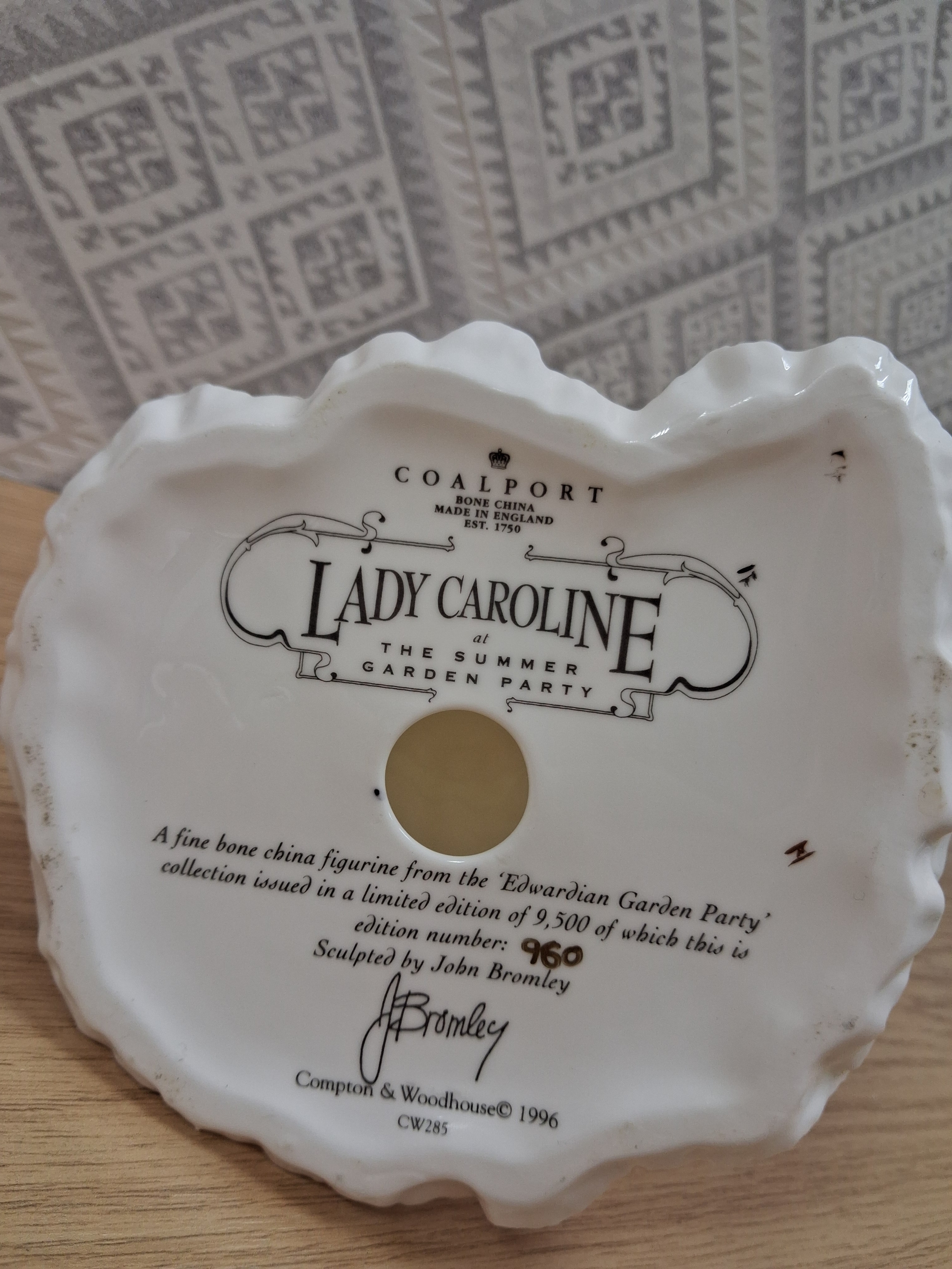 Coalport Lady Caroline At The Summer Garden Party, Rare Vintage, Limited Edition, Bone China Figurine, 1996, Made in England, John Bromley