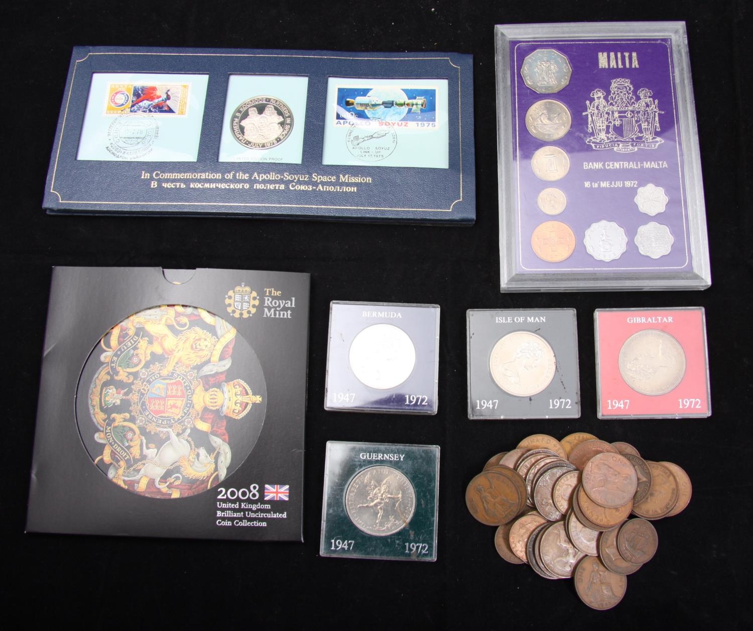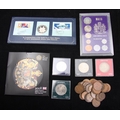 Coins, Great Britain, and World, including Double Florin 1889; Crowns 1895 Fine, 1937 (3), 53 (6), 60 (2), later (26); £2 (3); £5 (8); pre 47 *£4.25 face; pre 20 *40p face; Royal Mint proof Sets 1971, 77; Ordinary Sets 1984, 2008; Silver Britannia 2008; others in silver and base metal including cast copy of Domitian Sestertius; Banknotes £1 (3)