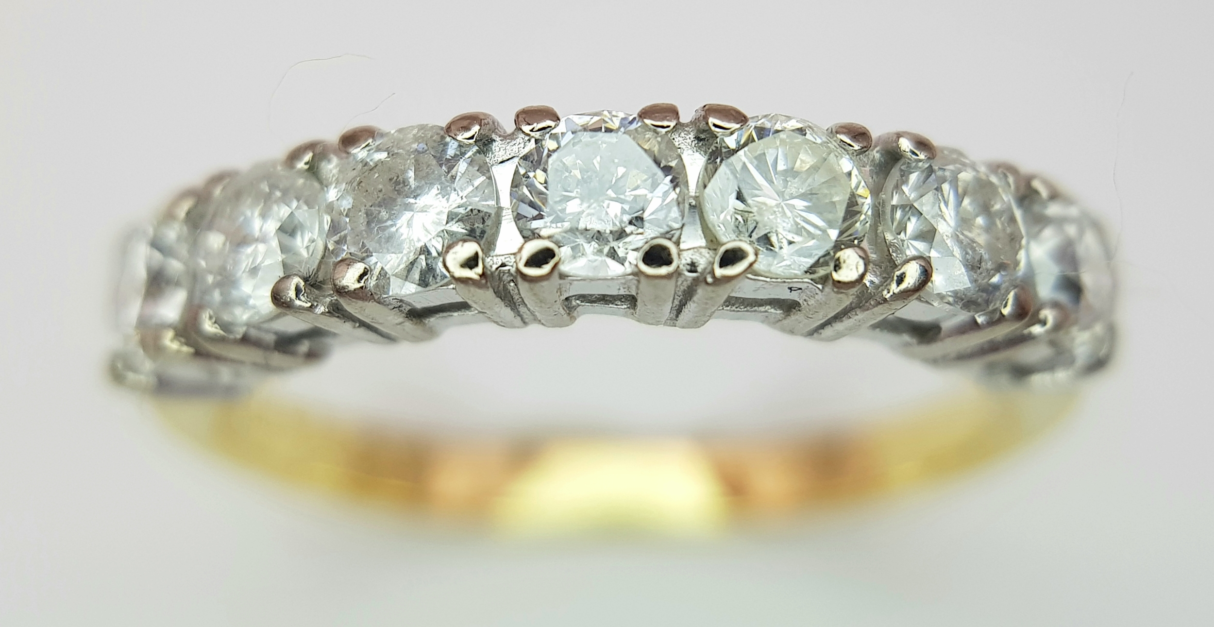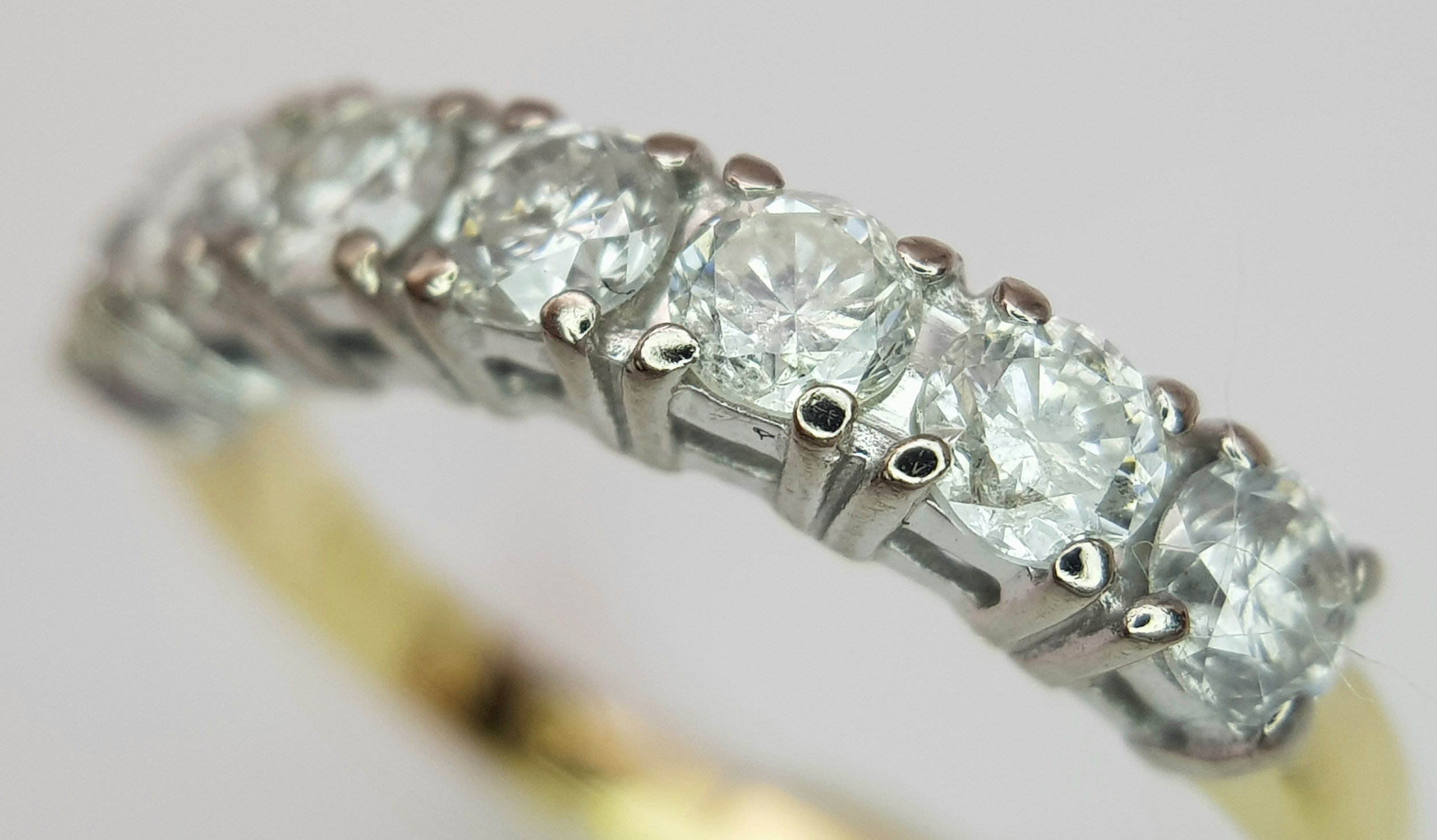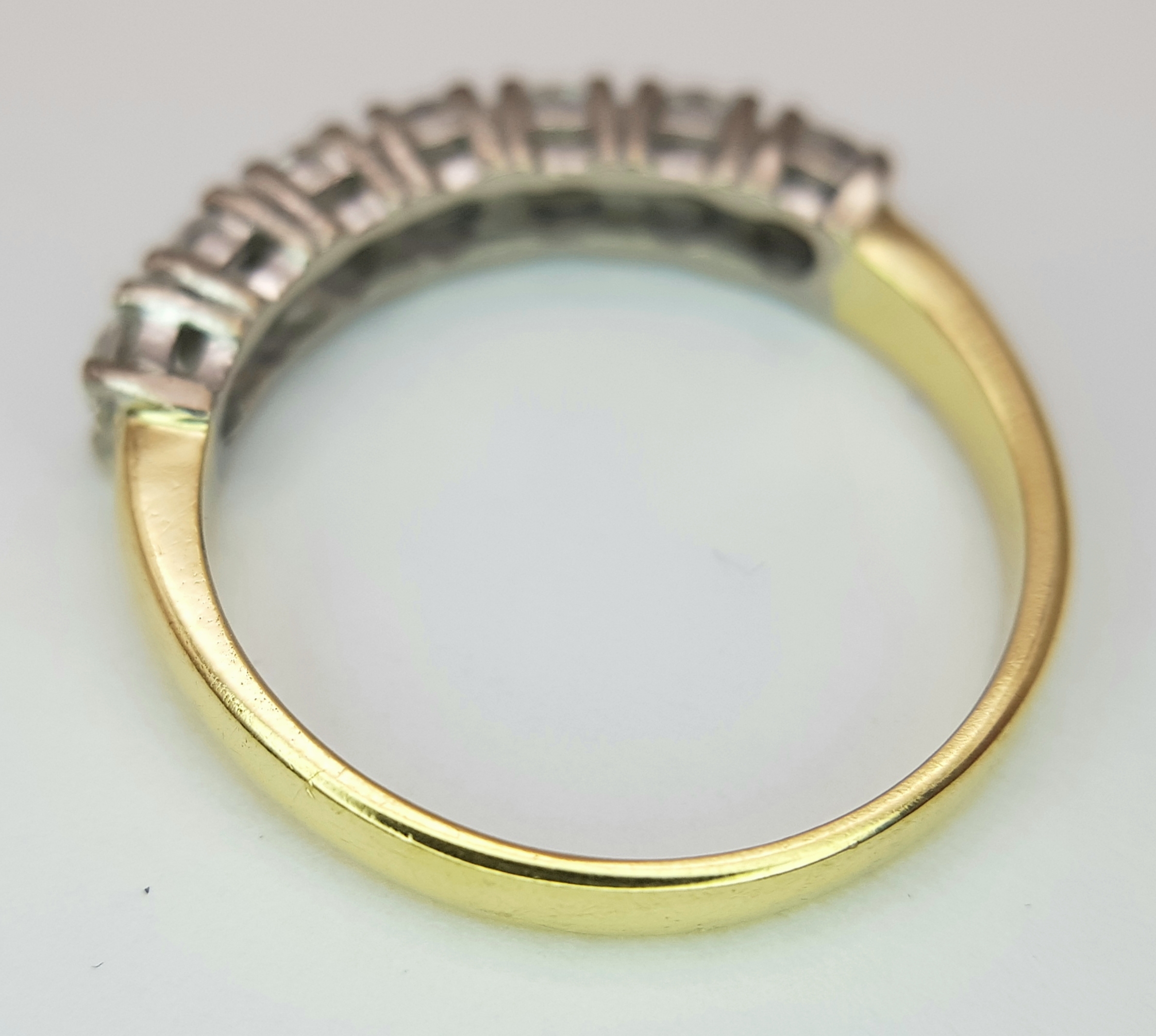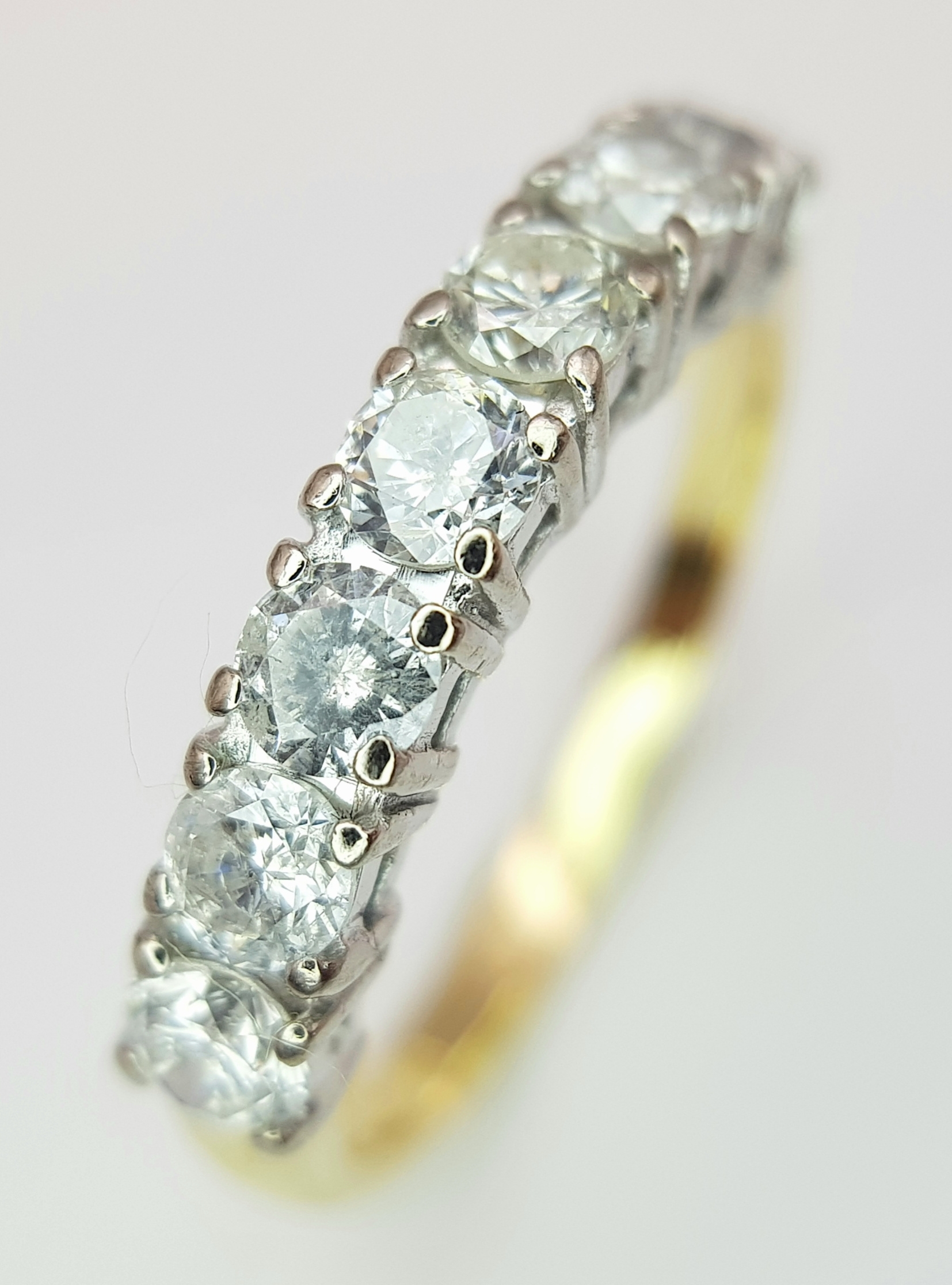 AN 18K YELLOW GOLD DIAMOND HALF ETERNITY RING. 1CTW. 3G. SIZE O. SPSA -3027.
