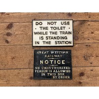 Two Vintage Railway Cast Iron Signs to include "Southern Railway / Quiet Please / Avoid Annoyance to Residents Keep Your Engine Quiet and Take Care to Avoid Smoke & Steam" & "The Great Western Railway Company" Plaque with Coat of Arms.