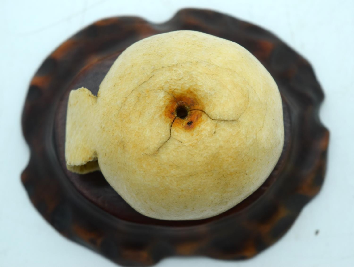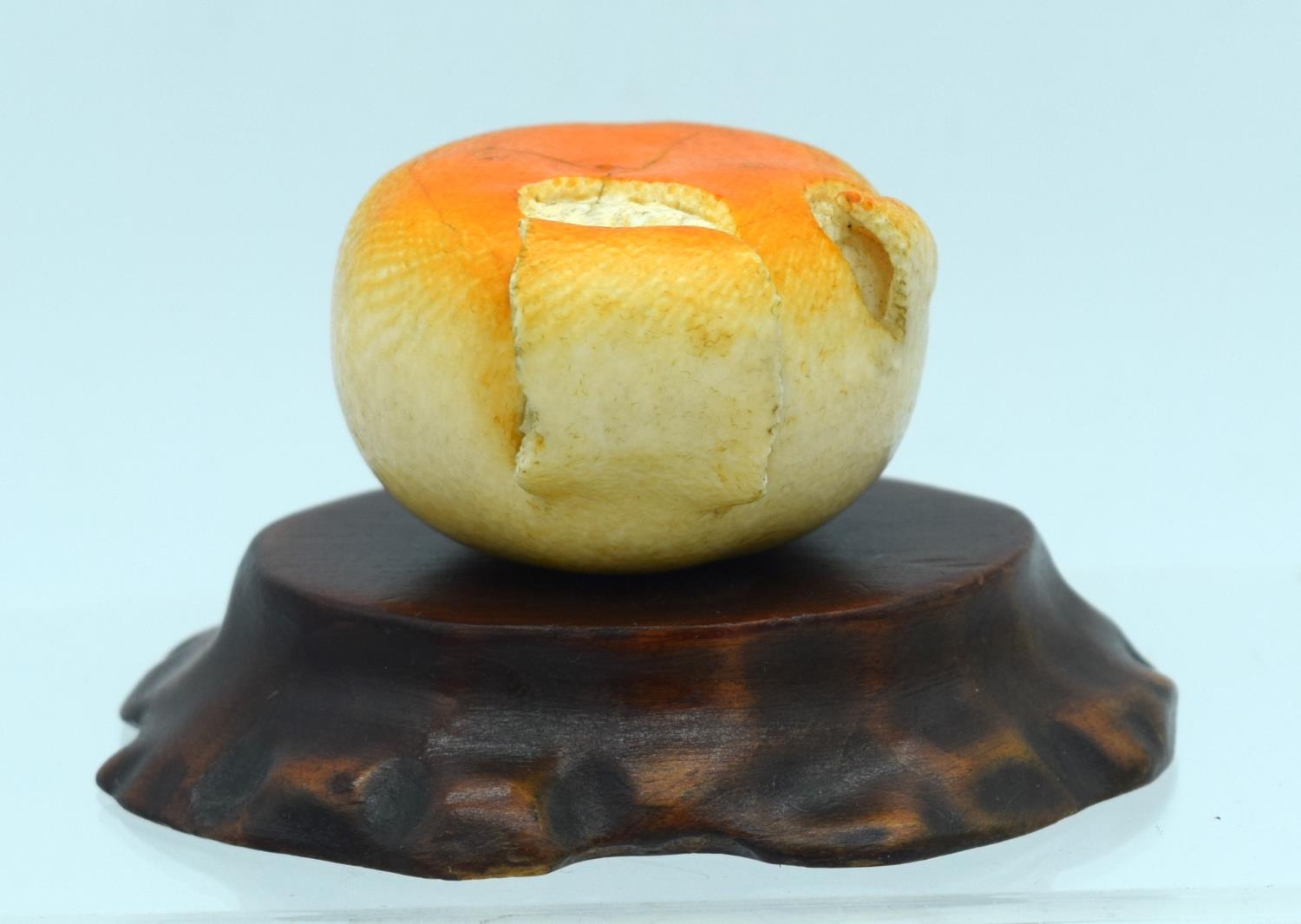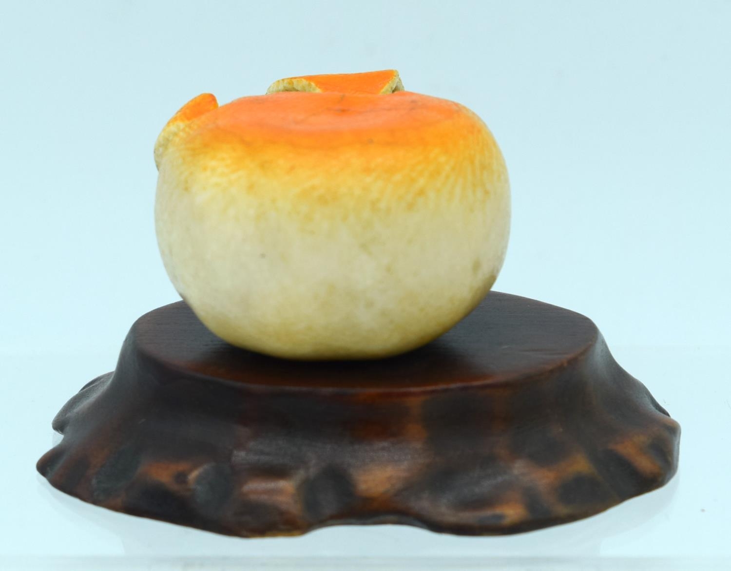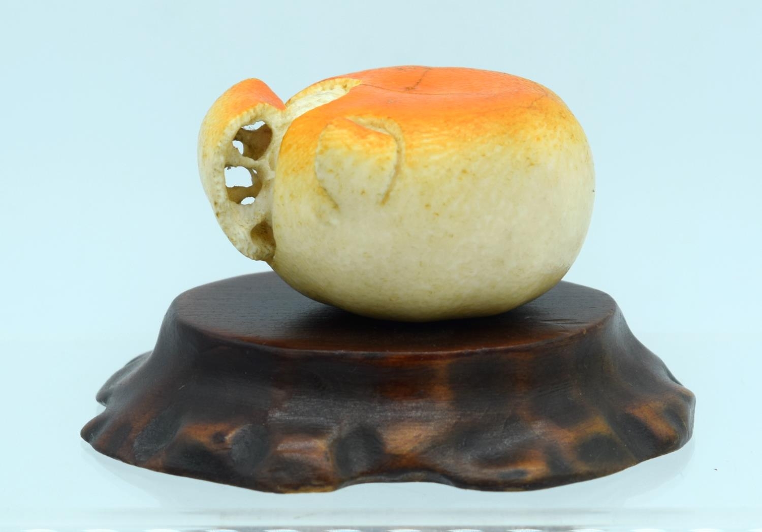 A 19TH CENTURY JAPANESE MEIJI PERIOD CARVED IVORY OKIMONO modelled as peeled tangerine. Okimono 5 cm x 4 cm.