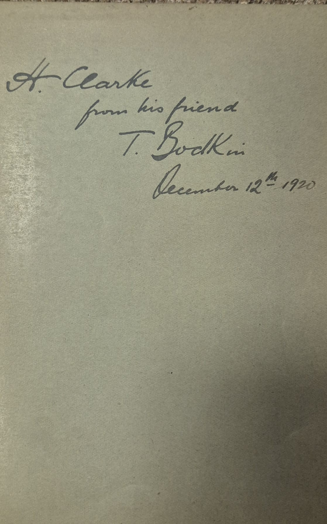 This copy inscribed by the author Thomas Bodkin to Harry Clarke and dated December 12th, 1920